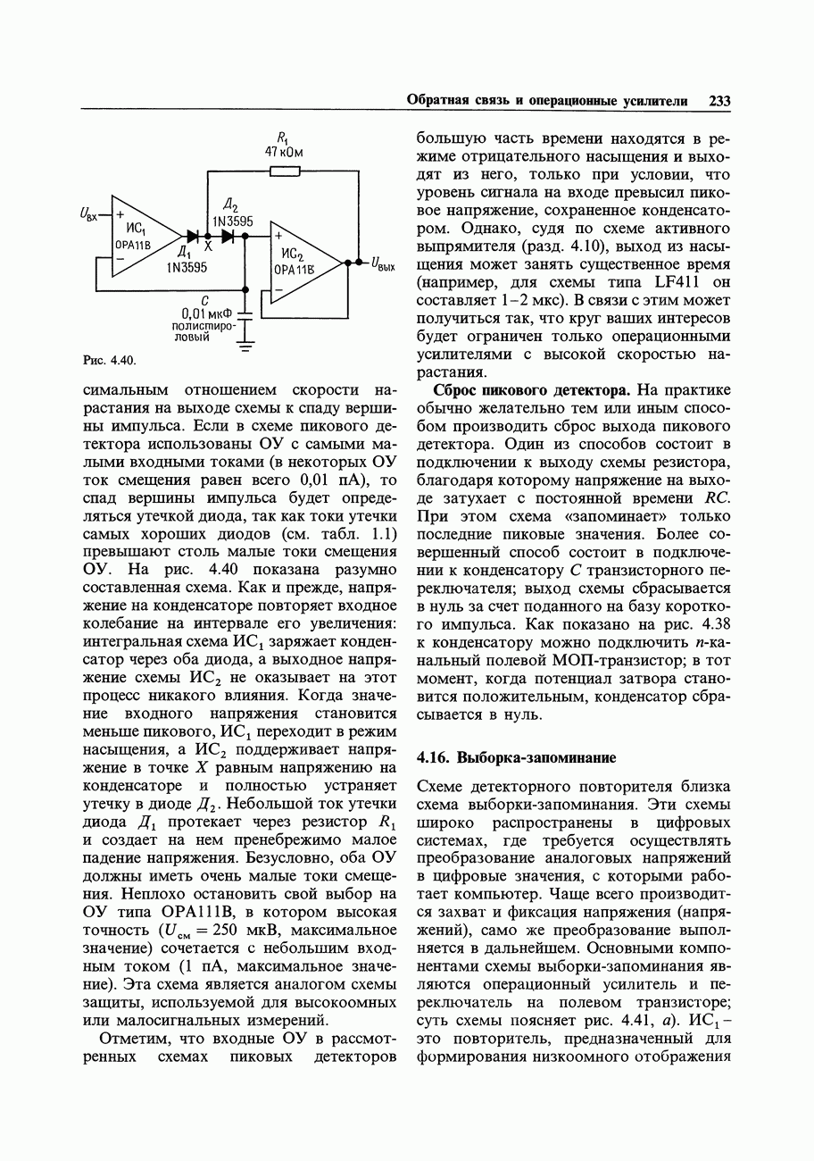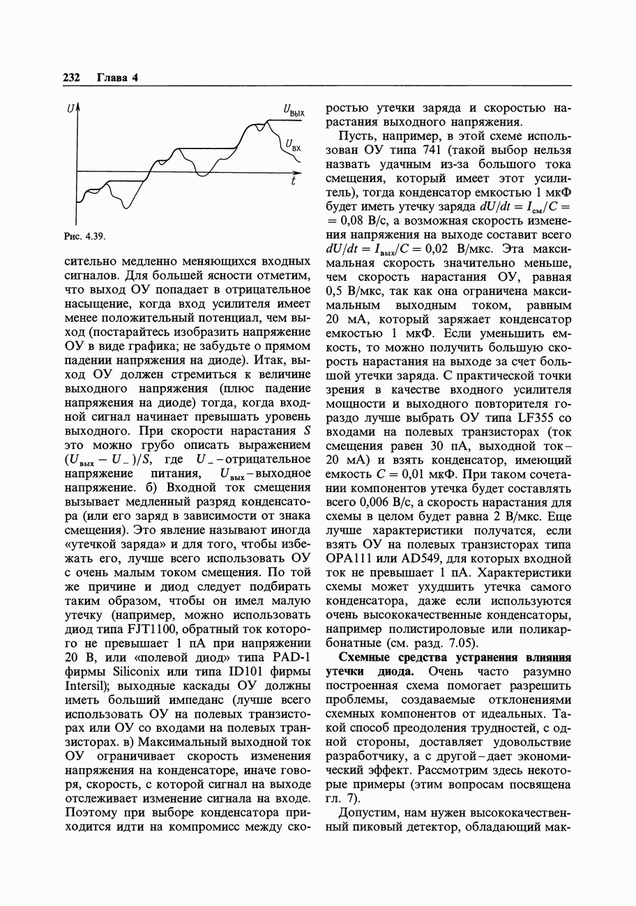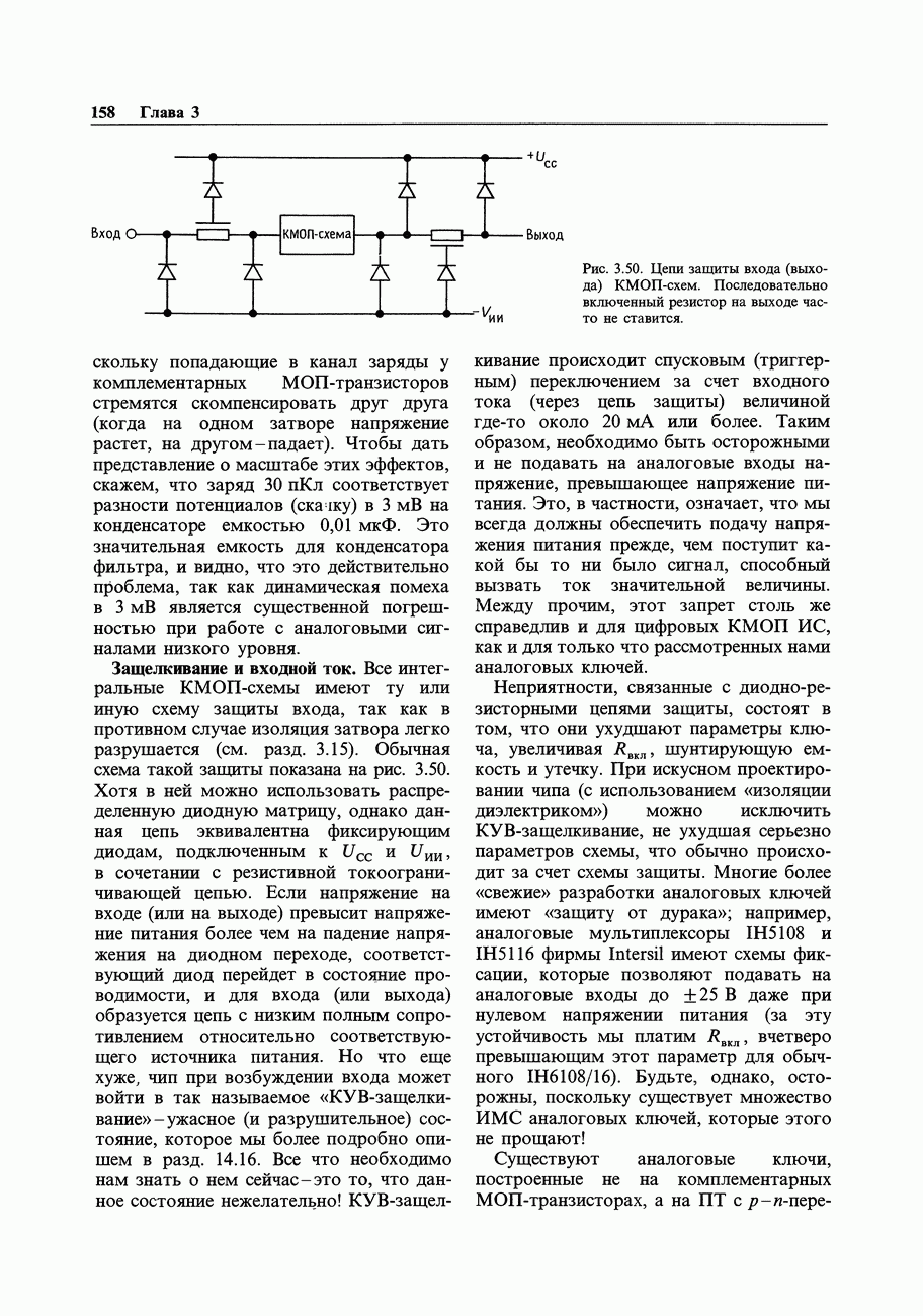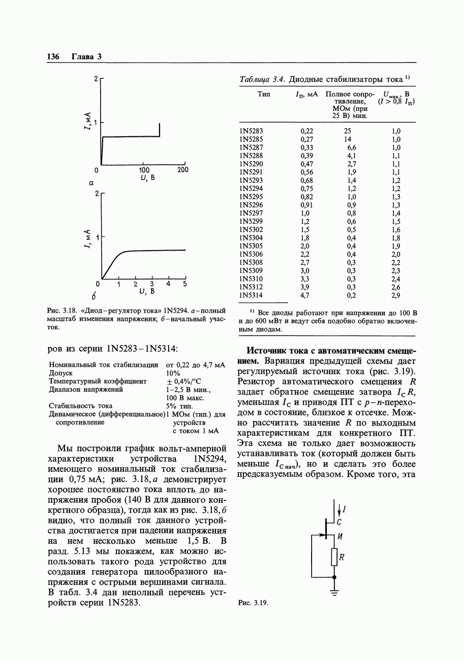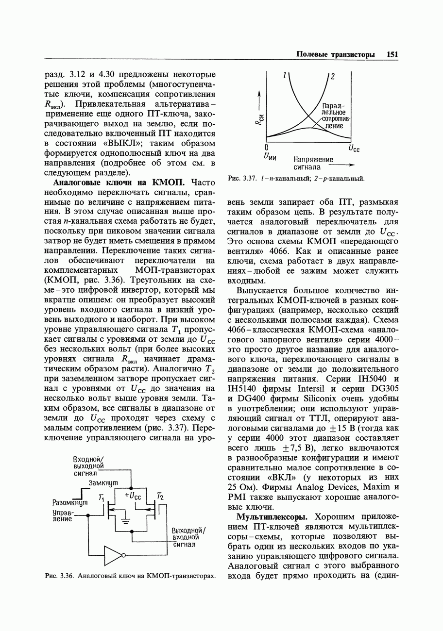 3.09. Ток затвора ПТМы уже говорили вначале, что ПТ вообще и МОП-транзисторы в особенности имеют практически нулевой ток затвора. Это, возможно, наиболее важное свойство ПТ и оно использовалось в описанных в предыдущем разделе высокоомных усилителях и повторителях. Существенным оно будет и в тех применениях, о которых речь впереди - самые существенные из них аналоговые ключи и цифровые логические схемы. Разумеется, при пристальном рассмотрении мы увидим, что какой-то ток через затвор все же течет. Это важно знать, поскольку наивная модель с нулевым током гарантирует, что раньше или позже, но вы ошибетесь. Фактически к возникновению конечного (ненулевого) тока затвора приводит ряд механизмов. Даже у МОП-транзисторов изоляция затвора (двуокись кремния), несовершенна, что приводит к токам утечки, находящимся в пикоамперном диапазоне. У ПТ с В большинстве случаев входной ток затвора пренебрежимо мал в сравнении с током базы биполярного транзистора. Есть, однако, ситуации, когда ПТ может фактически иметь более высокий входной ток! Рассмотрим ряд из них. Утечка затвора. Полное входное напряжение усилителя (или повторителя) на ПТ на низких частотах ограничено утечкой затвора. В паспорте ПТ обычно указывается напряжение пробоя