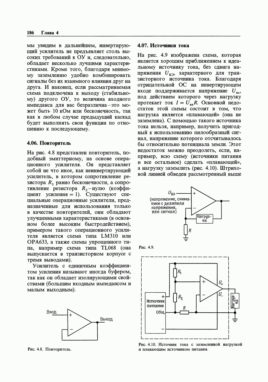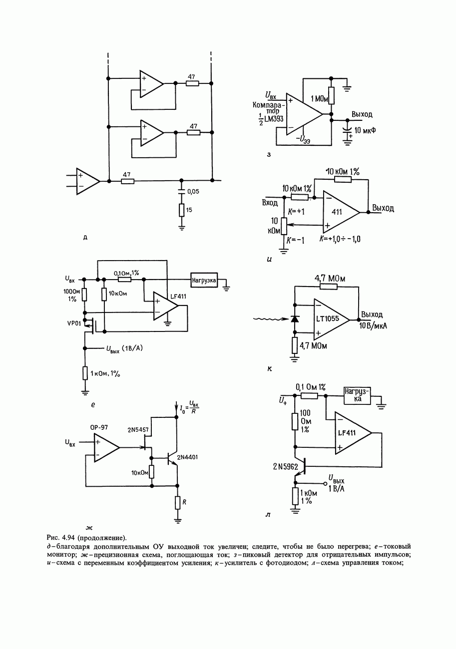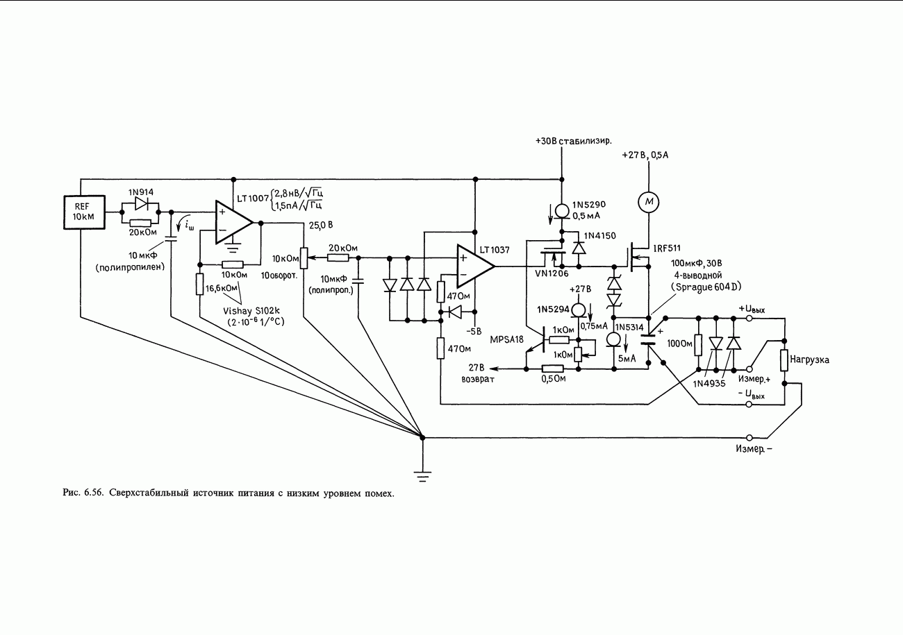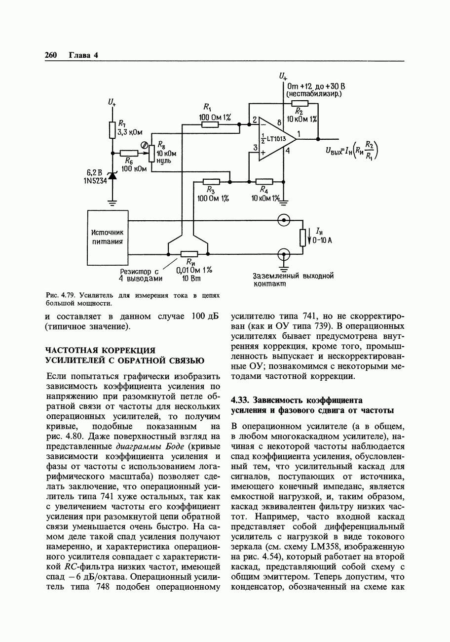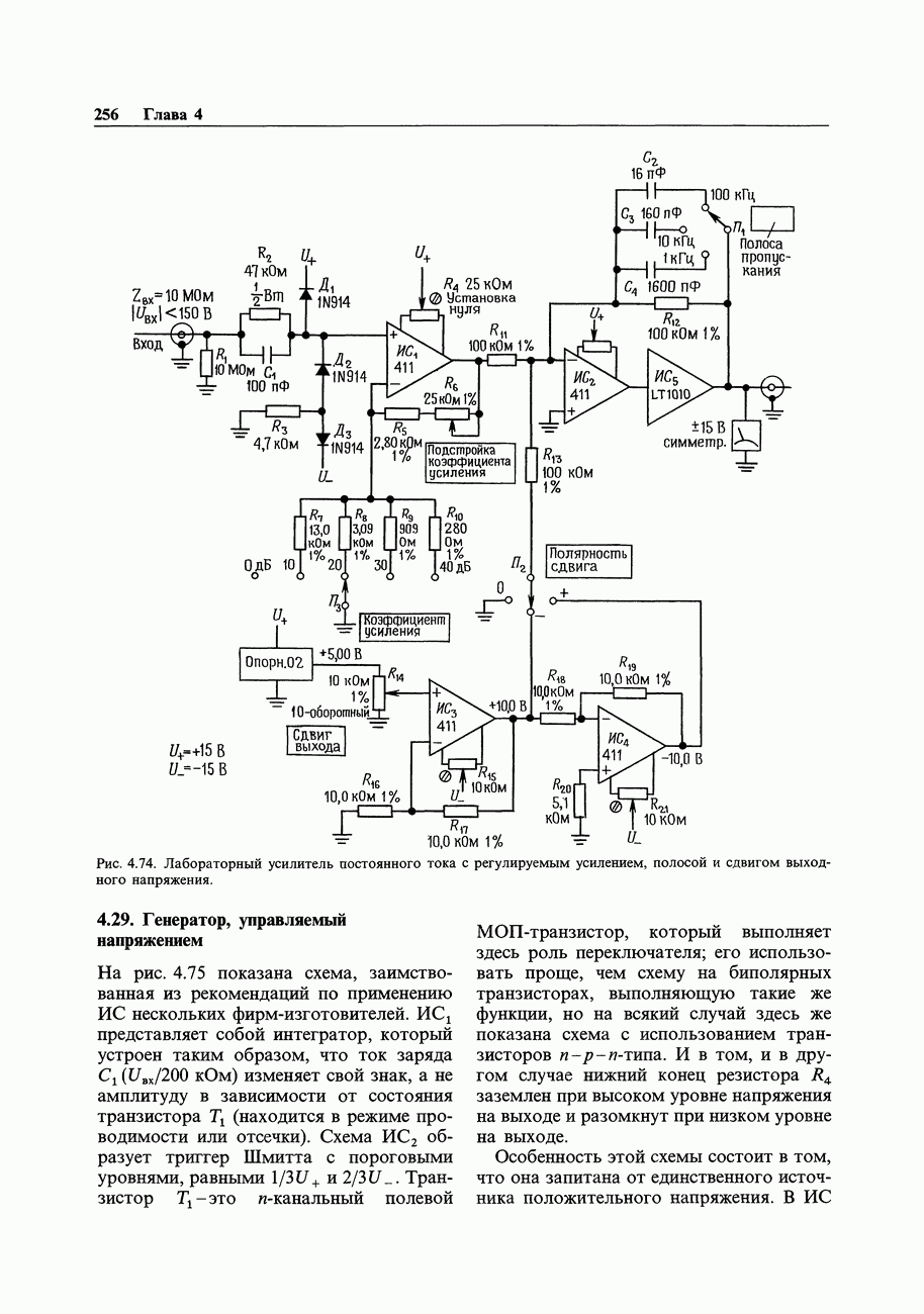 3.09. Ток затвора ПТМы уже говорили вначале, что ПТ вообще и МОП-транзисторы в особенности имеют практически нулевой ток затвора. Это, возможно, наиболее важное свойство ПТ и оно использовалось в описанных в предыдущем разделе высокоомных усилителях и повторителях. Существенным оно будет и в тех применениях, о которых речь впереди - самые существенные из них аналоговые ключи и цифровые логические схемы. Разумеется, при пристальном рассмотрении мы увидим, что какой-то ток через затвор все же течет. Это важно знать, поскольку наивная модель с нулевым током гарантирует, что раньше или позже, но вы ошибетесь. Фактически к возникновению конечного (ненулевого) тока затвора приводит ряд механизмов. Даже у МОП-транзисторов изоляция затвора (двуокись кремния), несовершенна, что приводит к токам утечки, находящимся в пикоамперном диапазоне. У ПТ с В большинстве случаев входной ток затвора пренебрежимо мал в сравнении с током базы биполярного транзистора. Есть, однако, ситуации, когда ПТ может фактически иметь более высокий входной ток! Рассмотрим ряд из них. Утечка затвора. Полное входное напряжение усилителя (или повторителя) на ПТ на низких частотах ограничено утечкой затвора. В паспорте ПТ обычно указывается напряжение пробоя