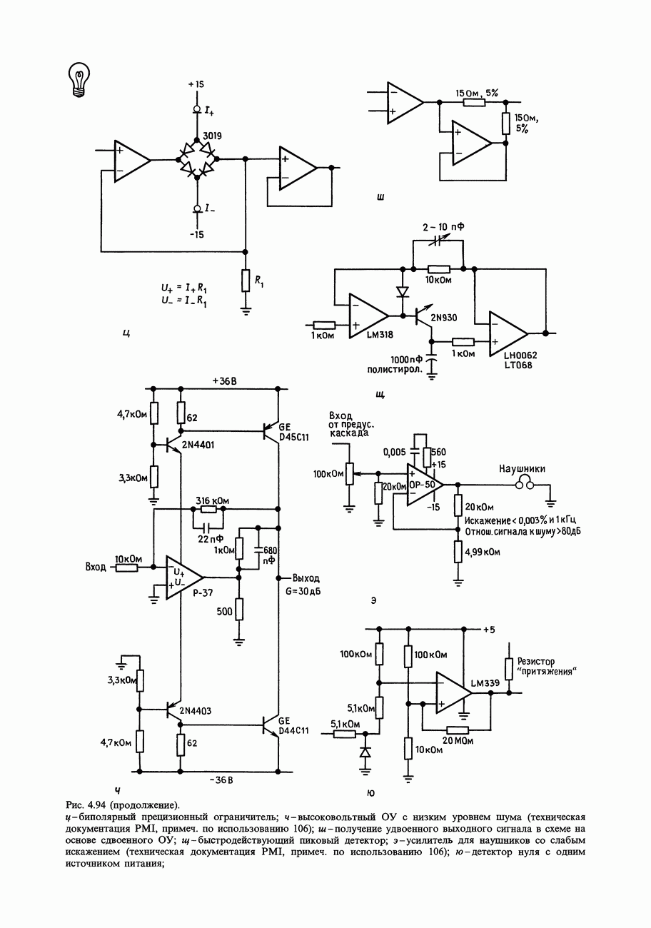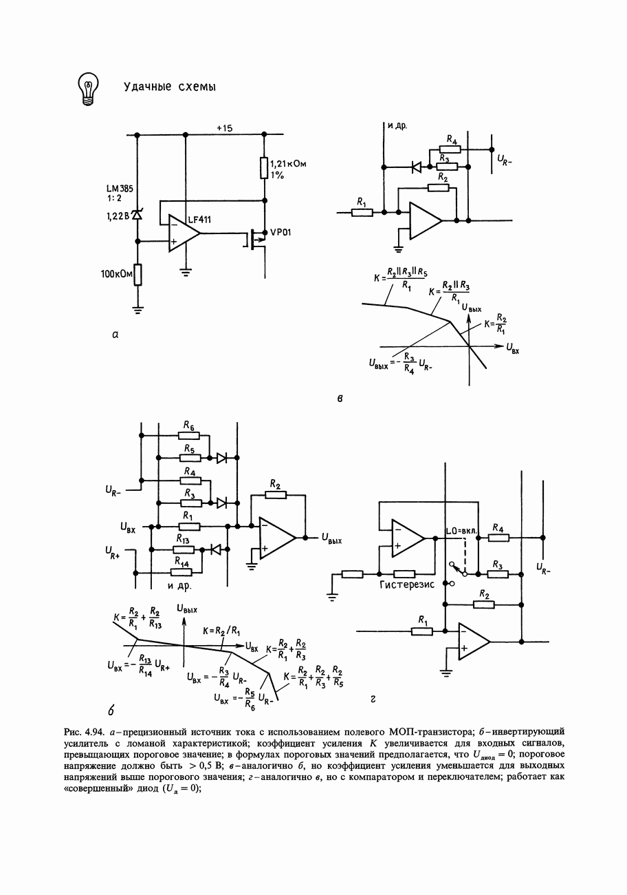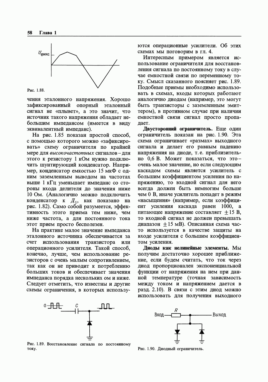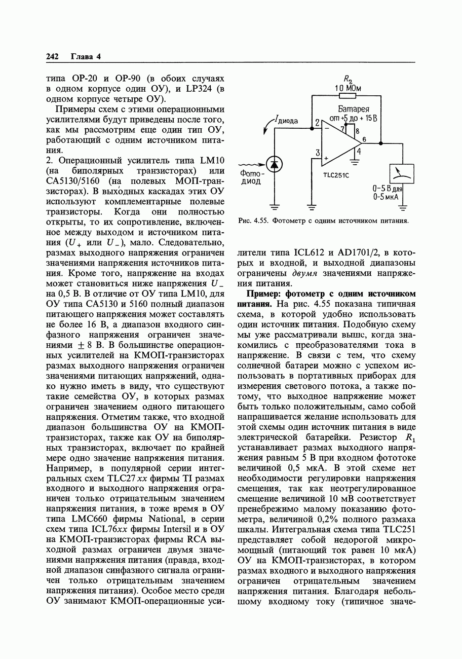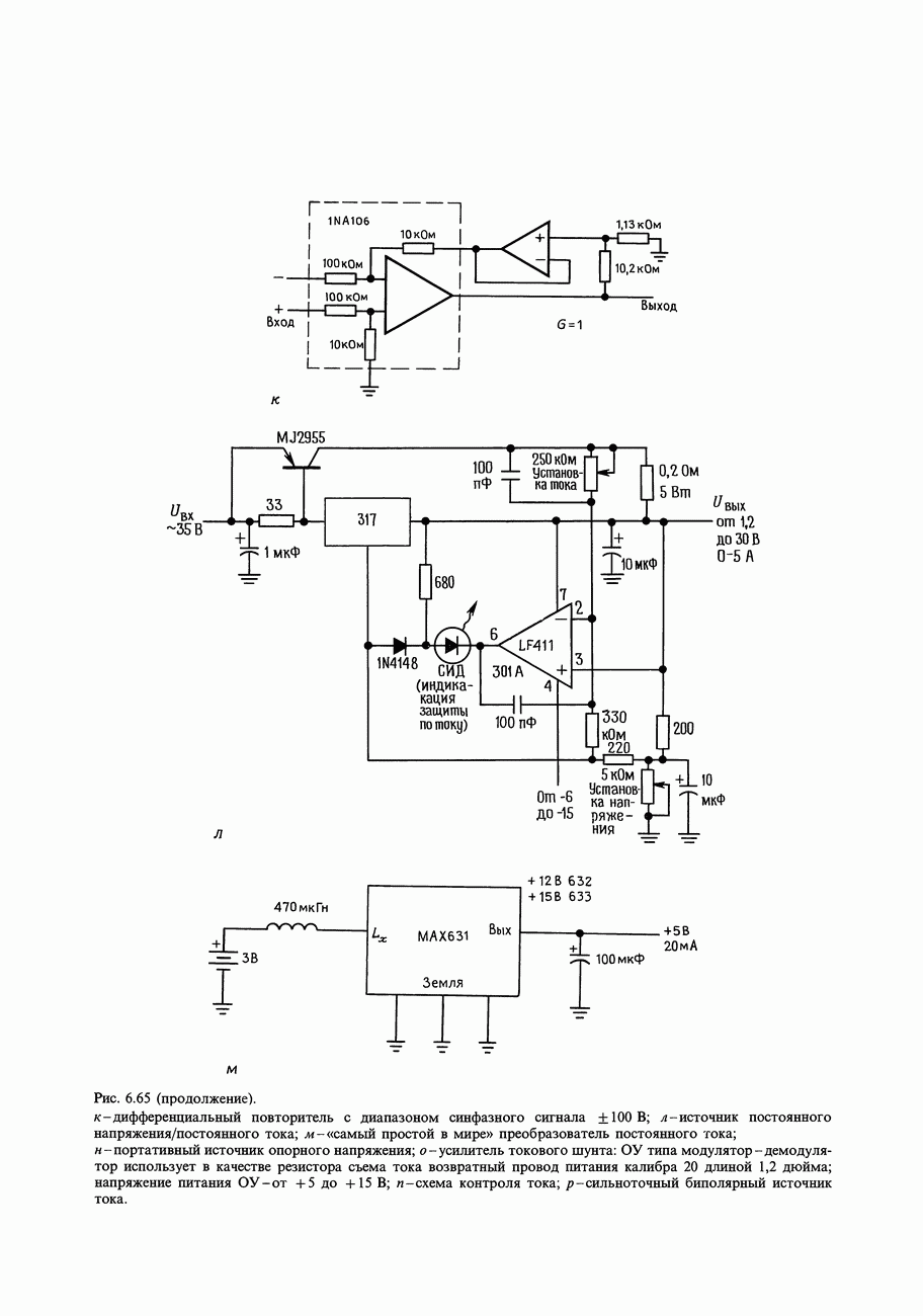 3.09. Ток затвора ПТМы уже говорили вначале, что ПТ вообще и МОП-транзисторы в особенности имеют практически нулевой ток затвора. Это, возможно, наиболее важное свойство ПТ и оно использовалось в описанных в предыдущем разделе высокоомных усилителях и повторителях. Существенным оно будет и в тех применениях, о которых речь впереди - самые существенные из них аналоговые ключи и цифровые логические схемы. Разумеется, при пристальном рассмотрении мы увидим, что какой-то ток через затвор все же течет. Это важно знать, поскольку наивная модель с нулевым током гарантирует, что раньше или позже, но вы ошибетесь. Фактически к возникновению конечного (ненулевого) тока затвора приводит ряд механизмов. Даже у МОП-транзисторов изоляция затвора (двуокись кремния), несовершенна, что приводит к токам утечки, находящимся в пикоамперном диапазоне. У ПТ с В большинстве случаев входной ток затвора пренебрежимо мал в сравнении с током базы биполярного транзистора. Есть, однако, ситуации, когда ПТ может фактически иметь более высокий входной ток! Рассмотрим ряд из них. Утечка затвора. Полное входное напряжение усилителя (или повторителя) на ПТ на низких частотах ограничено утечкой затвора. В паспорте ПТ обычно указывается напряжение пробоя