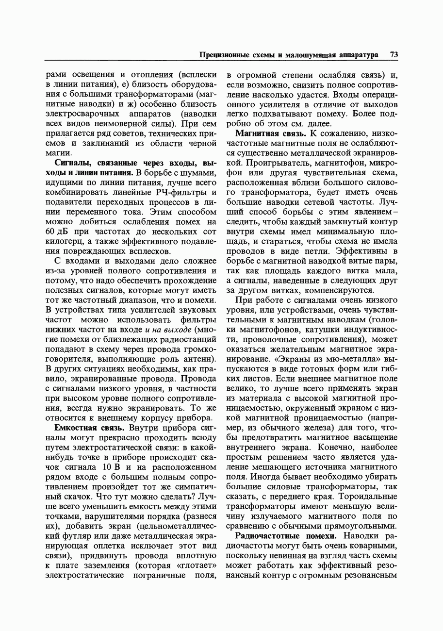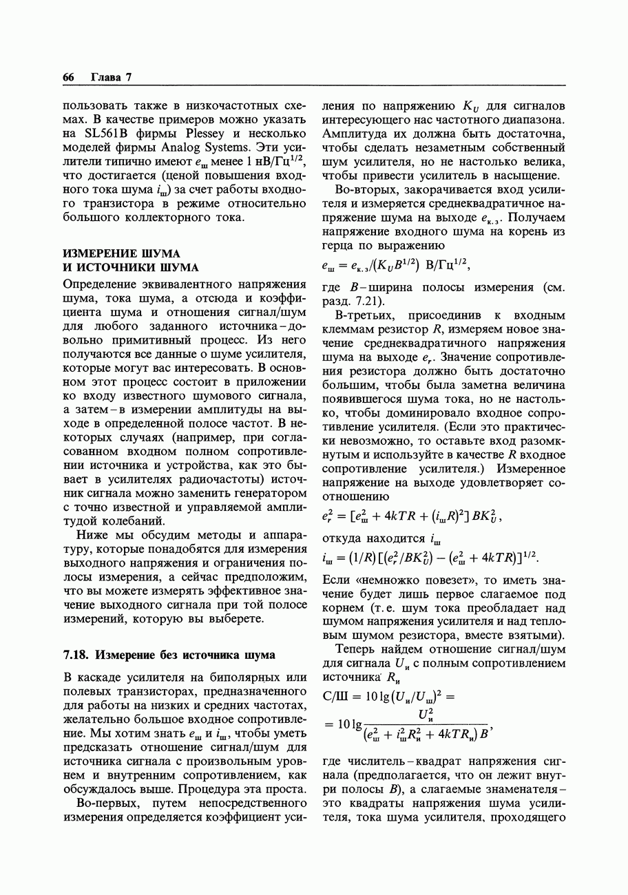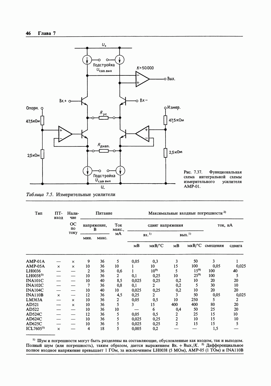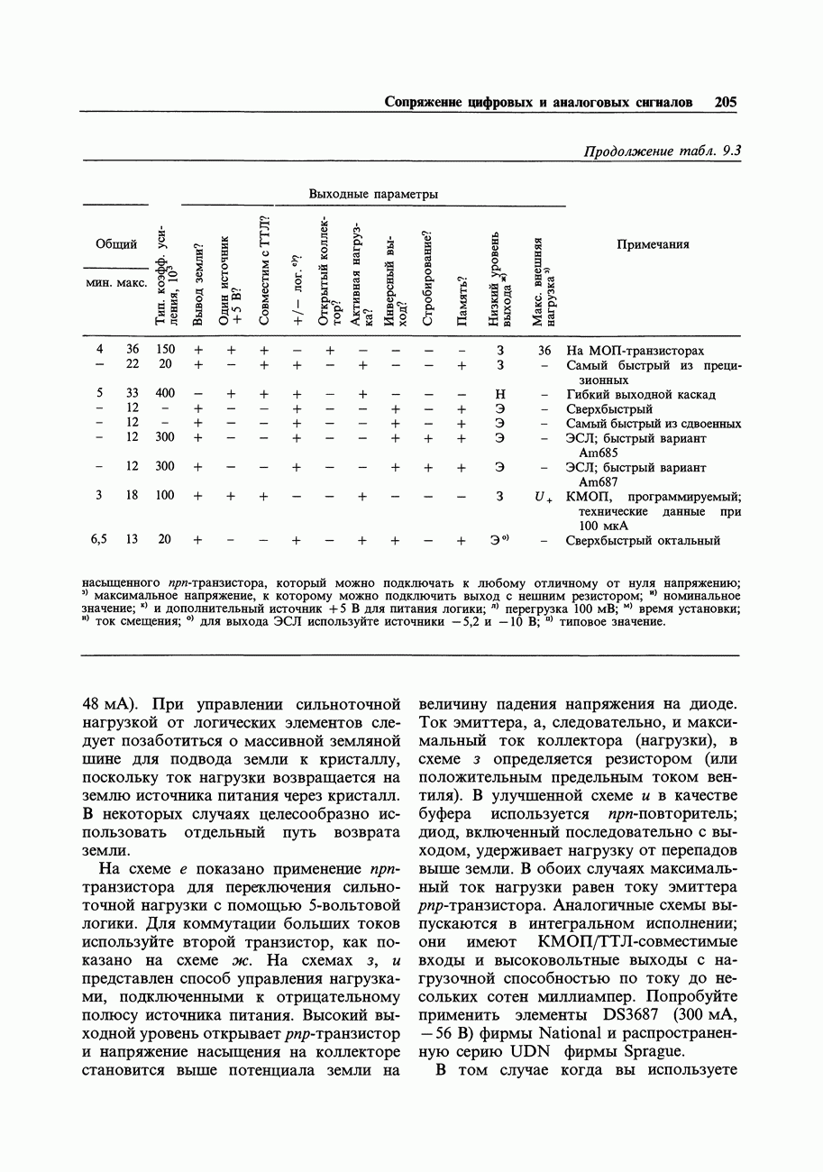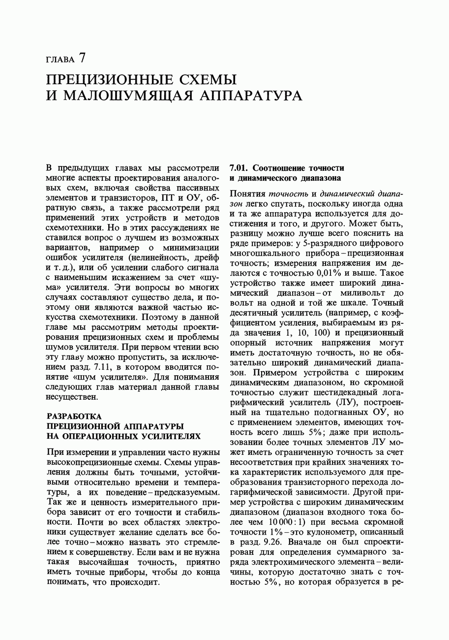 Переходные искажения могут быть существенны, в частности, в области высоких частот, где петлевое усиление падает. Оно сильно уменьшается в тех ОУ, где выходная пушпульная схема смещена в состояние слабой проводимости (класс АВ). Примером последнего типа является популярная схема 741, в то время как у ее предшественника ОУ 709 используется простое смещение выходного каскада класса В. Продолжение табл. 7.3.