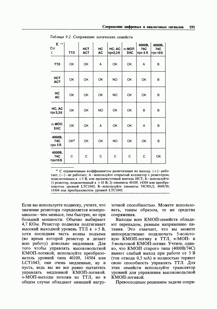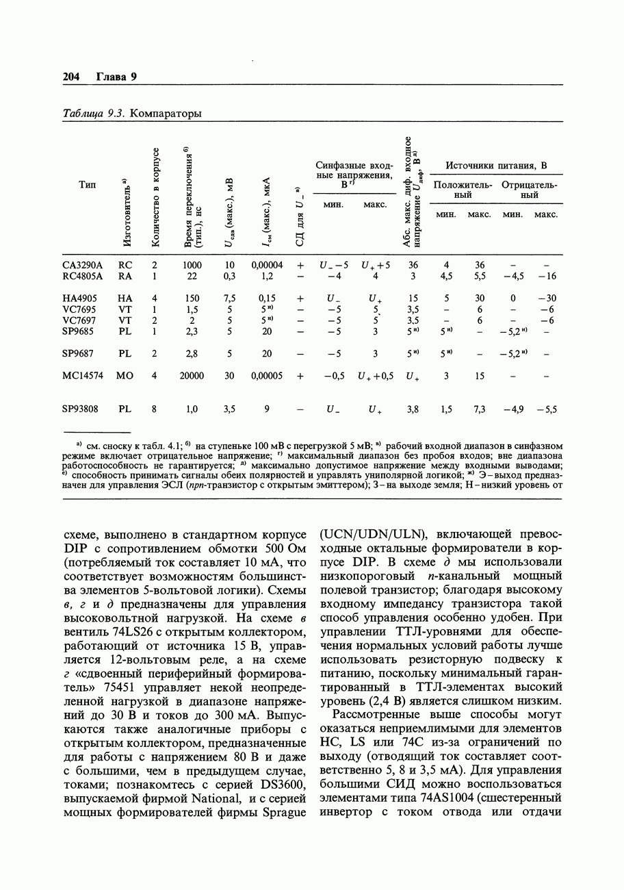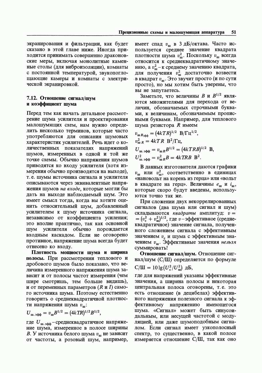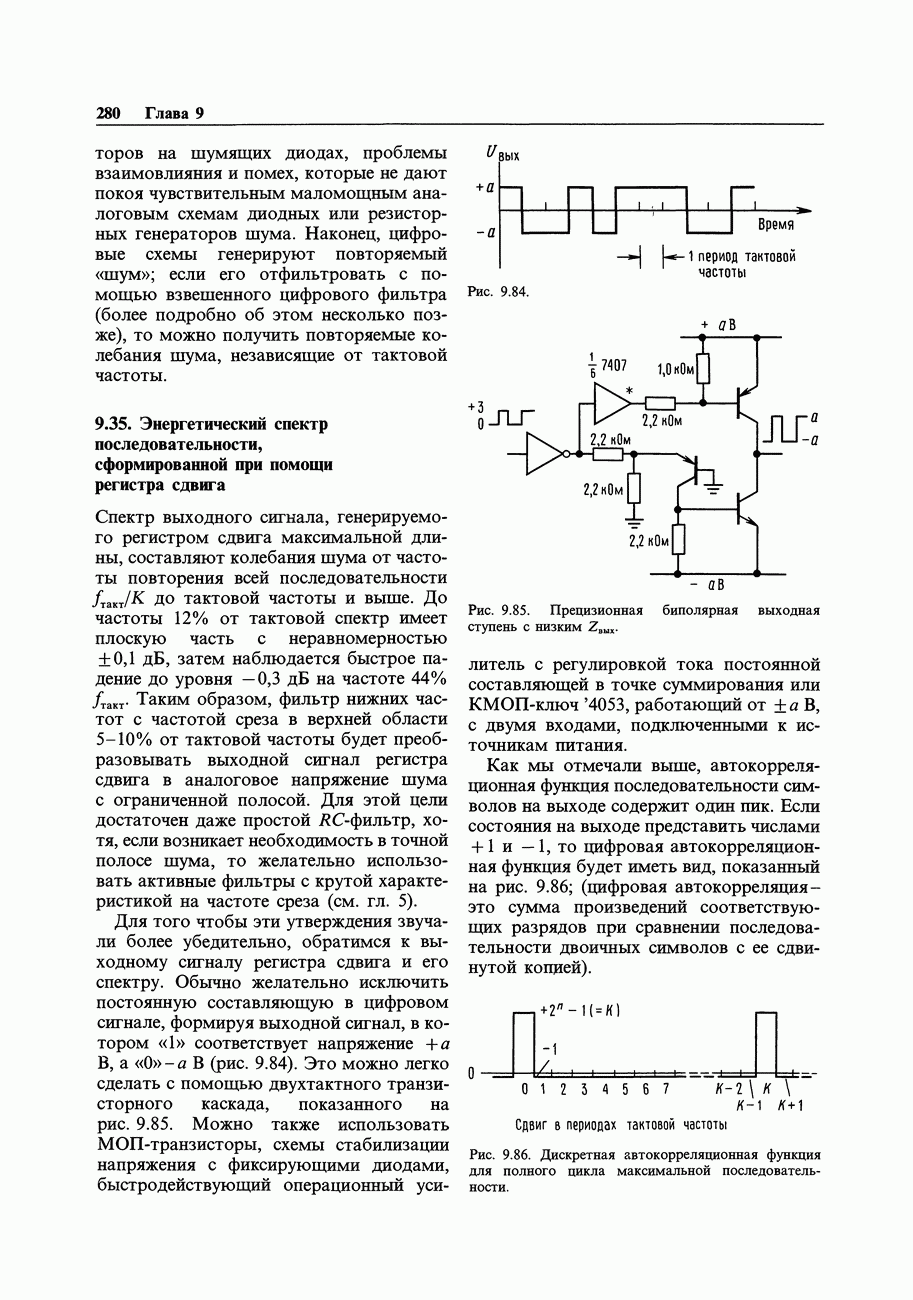 Переходные искажения могут быть существенны, в частности, в области высоких частот, где петлевое усиление падает. Оно сильно уменьшается в тех ОУ, где выходная пушпульная схема смещена в состояние слабой проводимости (класс АВ). Примером последнего типа является популярная схема 741, в то время как у ее предшественника ОУ 709 используется простое смещение выходного каскада класса В. Продолжение табл. 7.3.
