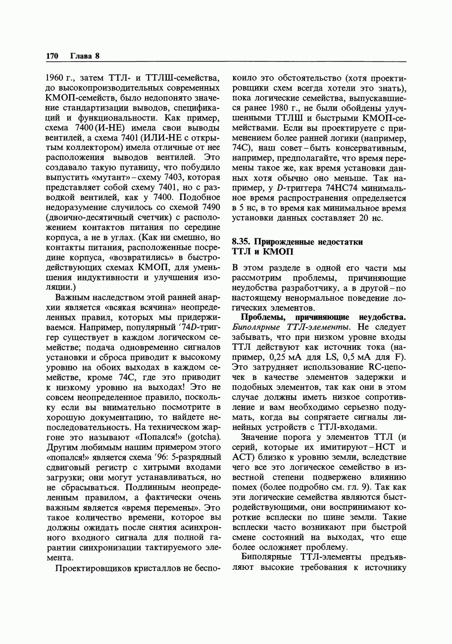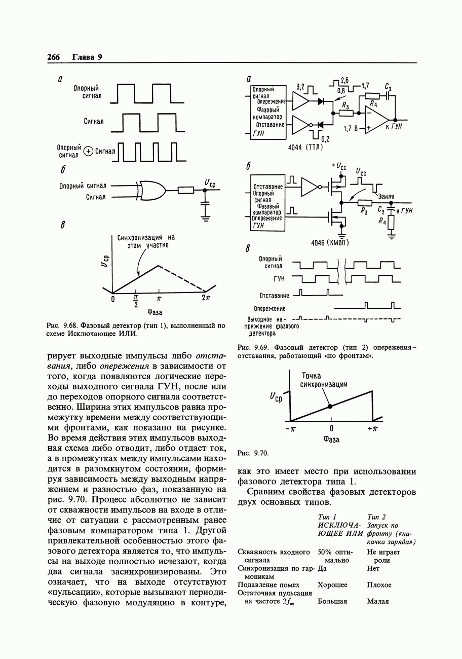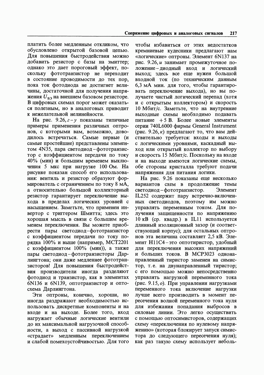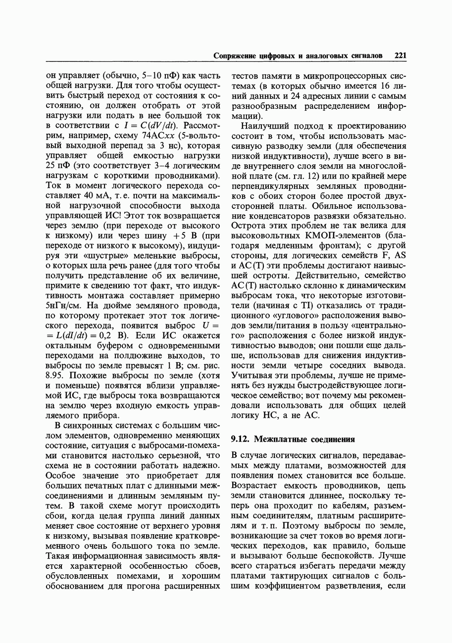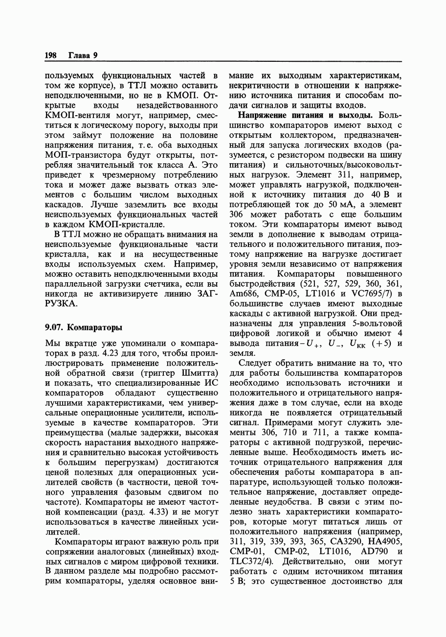 Переходные искажения могут быть существенны, в частности, в области высоких частот, где петлевое усиление падает. Оно сильно уменьшается в тех ОУ, где выходная пушпульная схема смещена в состояние слабой проводимости (класс АВ). Примером последнего типа является популярная схема 741, в то время как у ее предшественника ОУ 709 используется простое смещение выходного каскада класса В. Продолжение табл. 7.3.