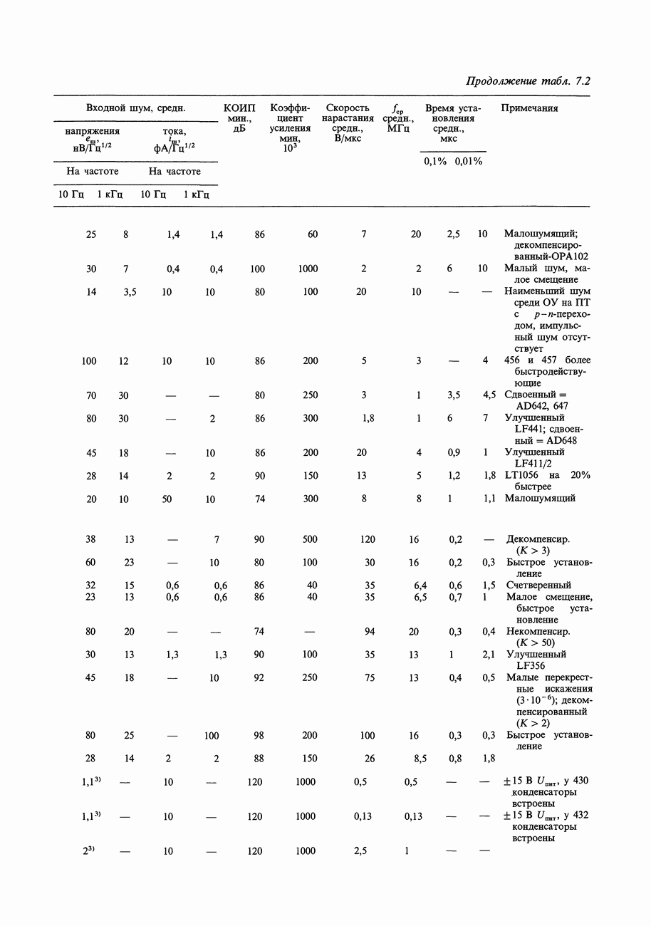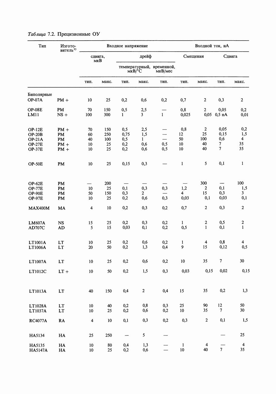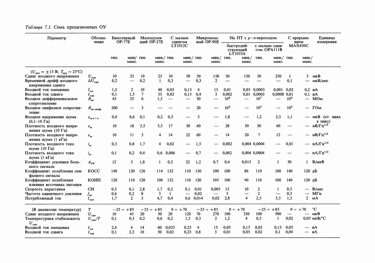 Таблица 7.3. Быстродействующие прецизионные ОУ