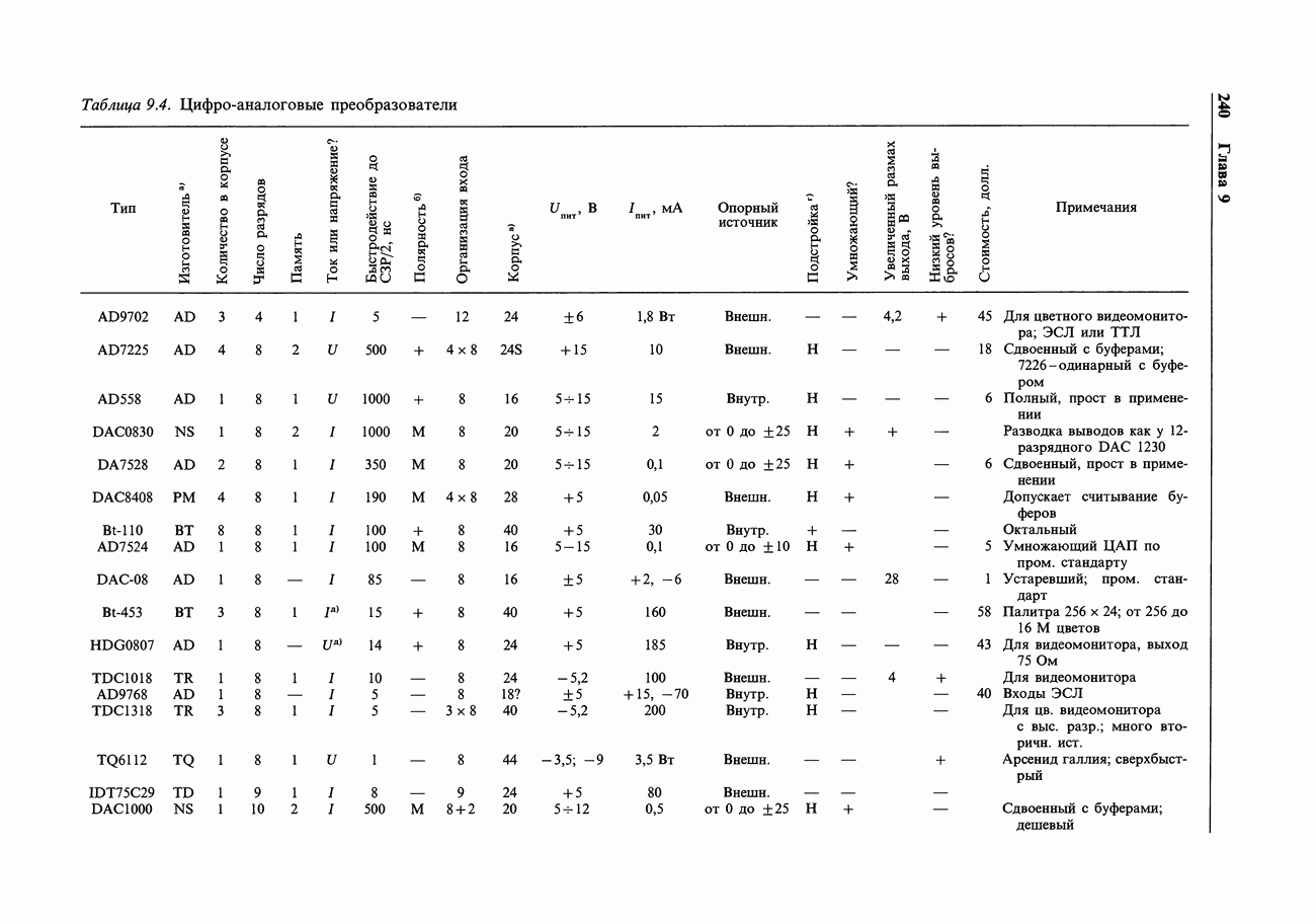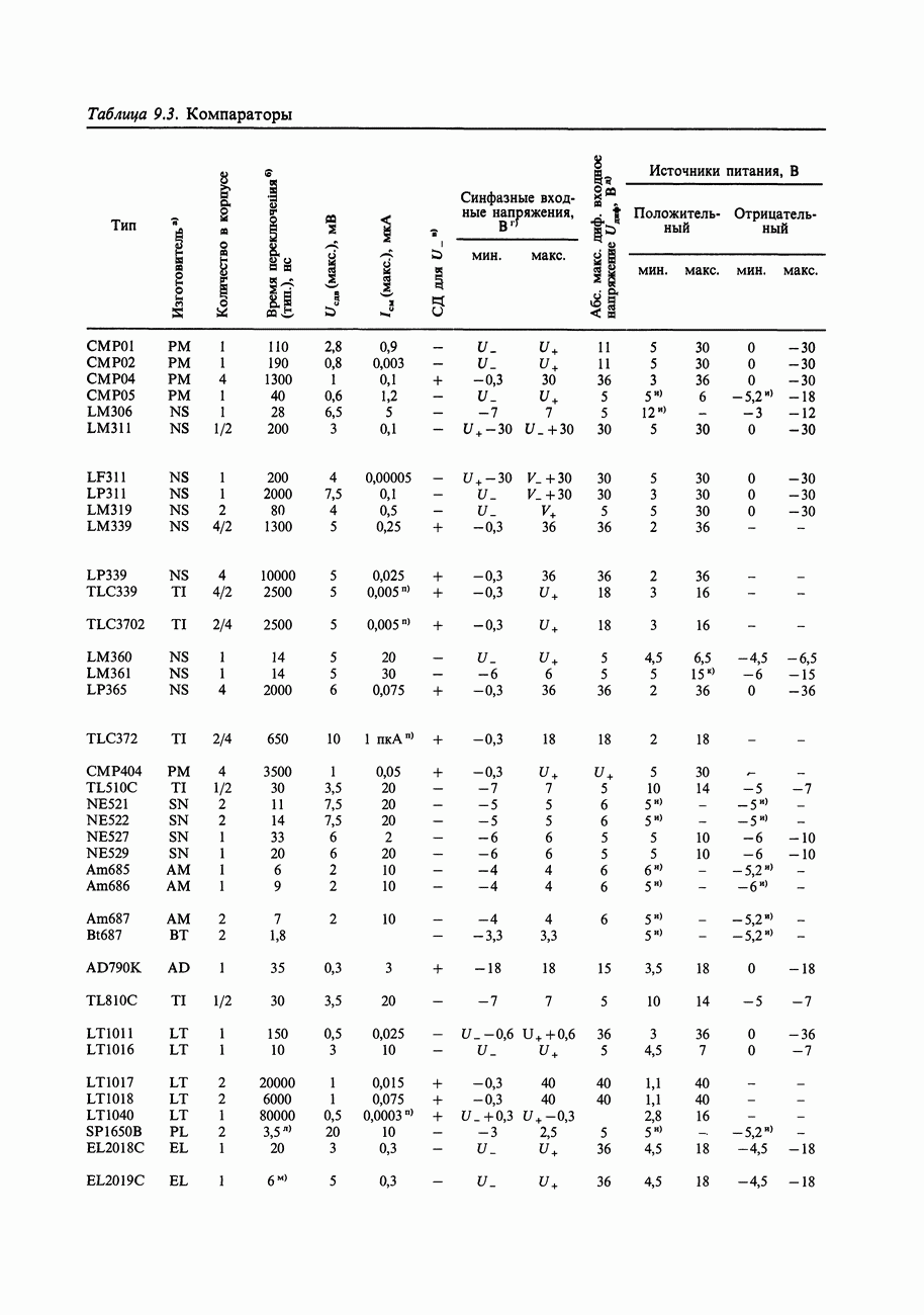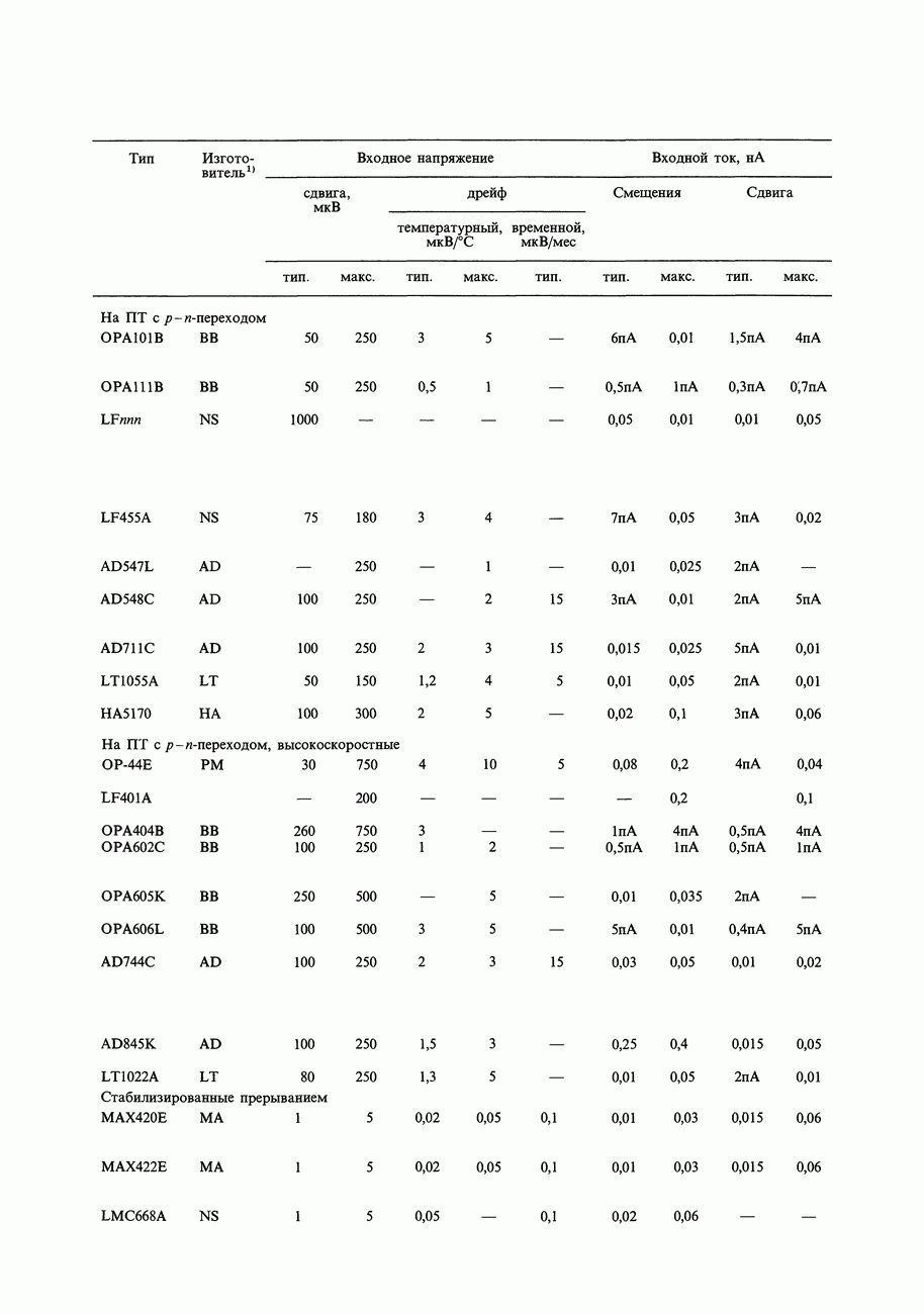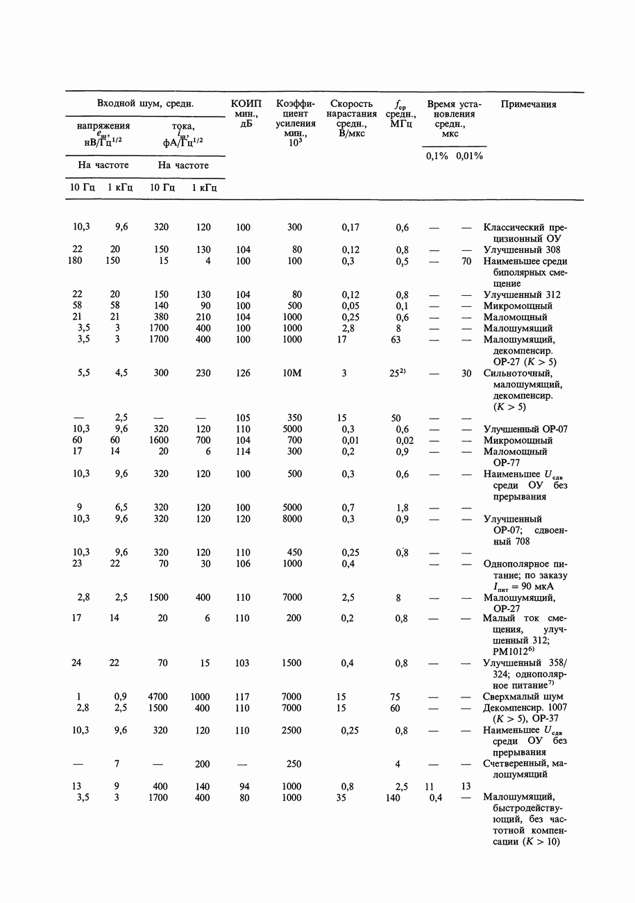 Таблица 7.3. Быстродействующие прецизионные ОУ
