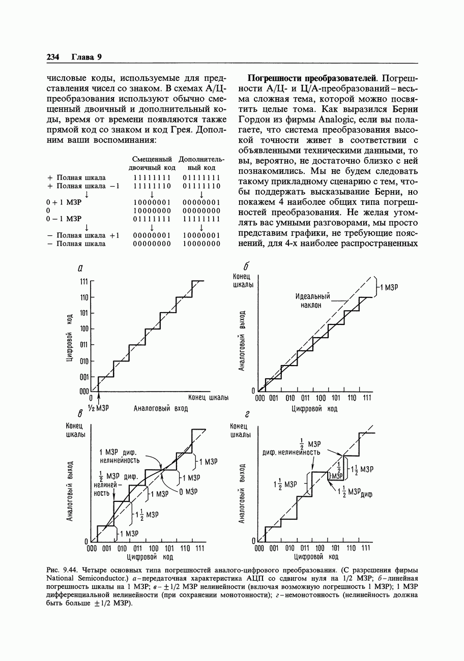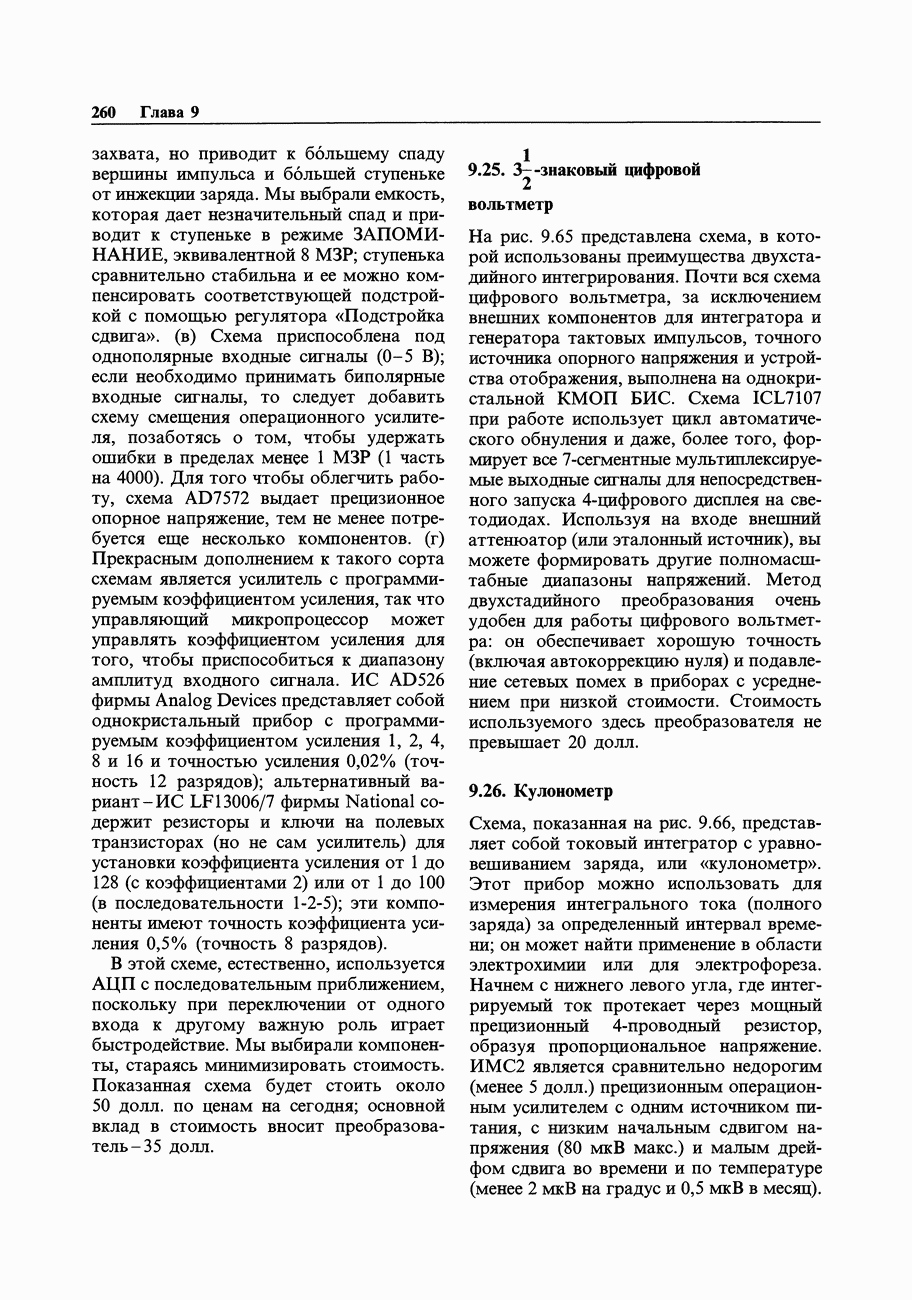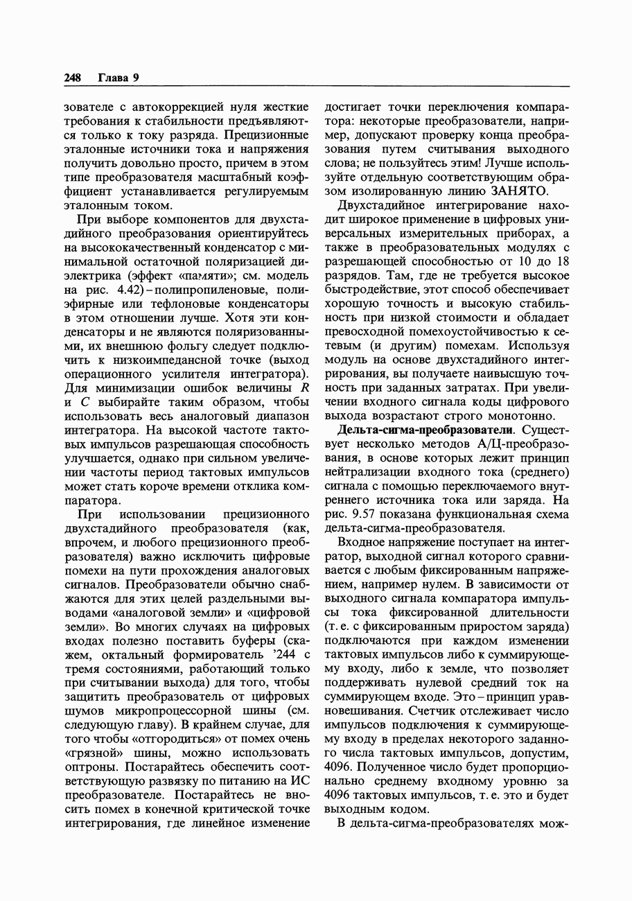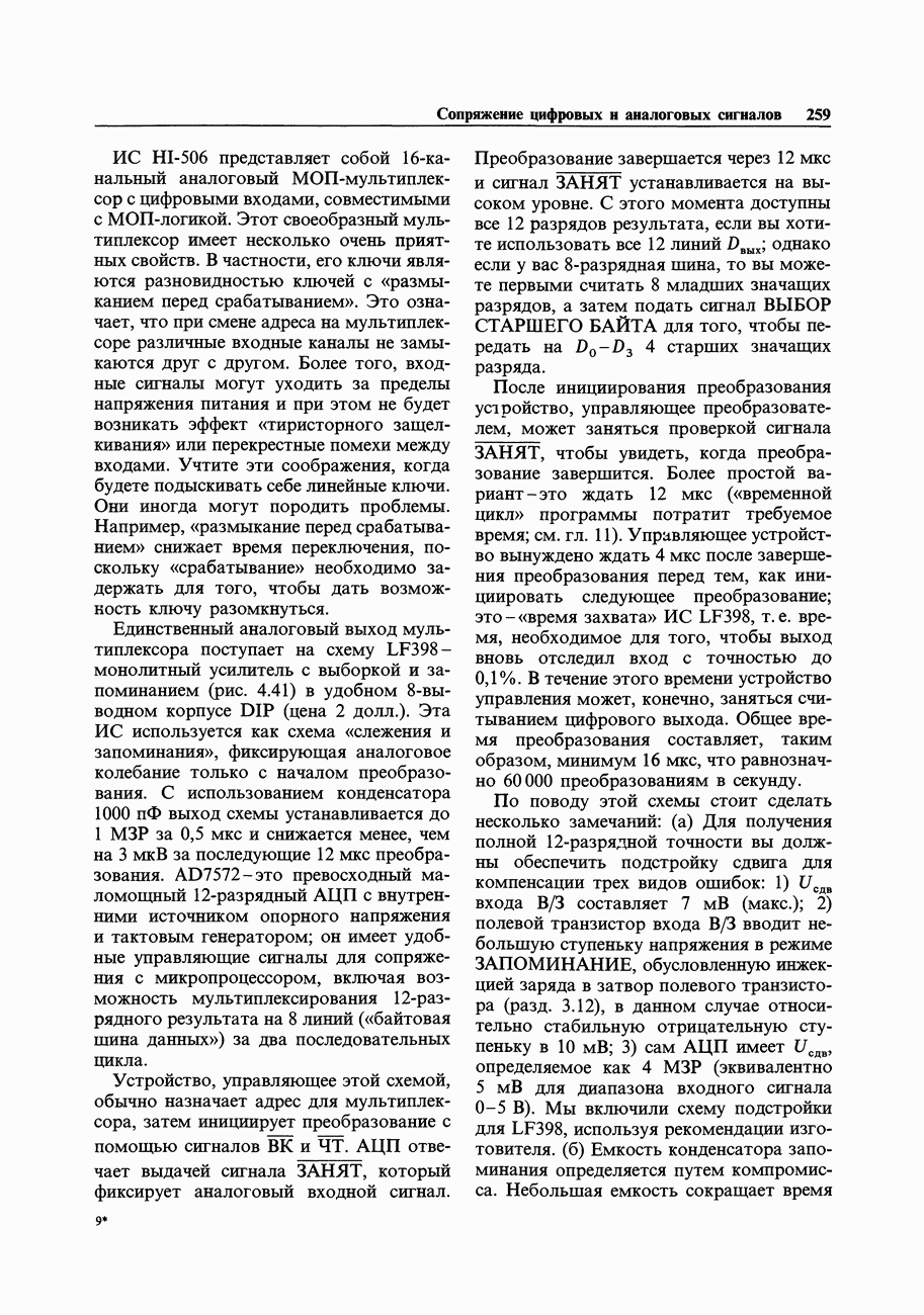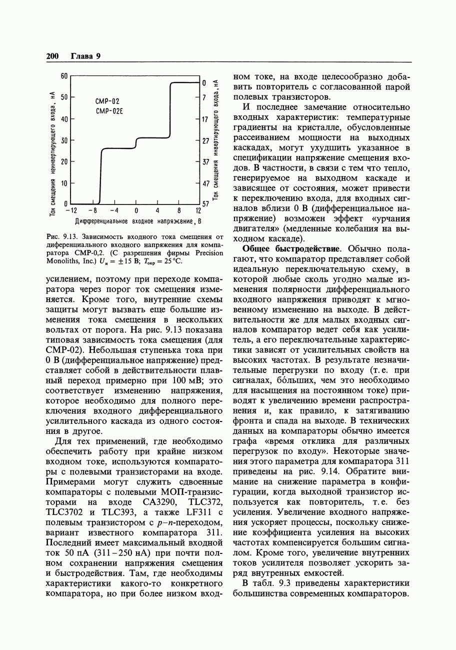 При этом время установления грубо можно оценить как Попробуем применить наш прогноз к реальности. Стоит отметить несколько моментов: (а) наша простая модель дает нам только нижнюю границу фактического значения времени установления в реальной схеме; всегда нужно проверить еще ограниченное скоростью нарастания время нарастания, которое может быть определяющим; (б) даже если скорость нарастания не создает проблем, время установления может быть много больше, чем в нашей идеализированной «однополюсной» модели; это зависит от схемы компенсации ОУ и запаса по фазе; (в) ОУ устанавливается тем быстрее, чем лучше применяемая схема частотной компенсации обеспечивает зависимость сдвига фазы от частоты в разомкнутой петле в виде прямой линии при логарифмическом масштабе (например, В табл. 7.3 приведен ряд быстродействующих ОУ для применений, требующих большого значения Погрешность коэффициента усиления.Существует еще одна погрешность, причиной которой является конечное значение коэффициента усиления без ОС, а именно: погрешность коэффициента усиления при замкнутой ОС из-за конечного петлевого усиления.