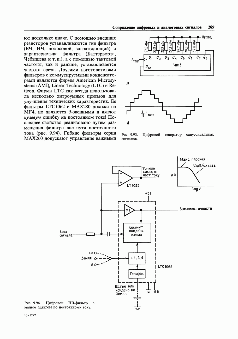 Рис. 7.13. а - по мере подхода входной погрешности к зоне Отсюда становится очевидным, что для сохранения точности даже на средних частотах необходимо иметь достаточно большой коэффициент усиления и высокое значение Приведенные графики мы построили, используя данные в паспорте кривые частотной зависимости коэффициента усиления без ОС. Даже в том случае, если в спецификации на применяемый вами ОУ дан указанный график, лучше всего идти в обратном направлении - от паспортных значений