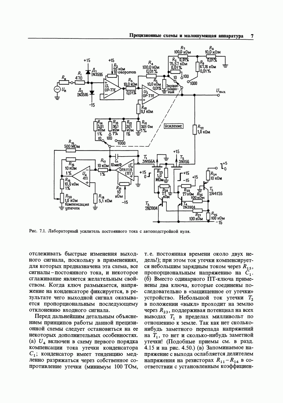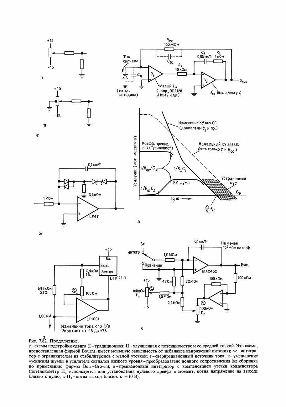 Рис. 7.9. Конечно, это возможно только в тех схемах, где коэффициент усиления при замкнутом контуре обратной связи больше единицы; в) уменьшить крутизну входного каскада г) изменить схему входного каскада. Третий способ (уменьшение