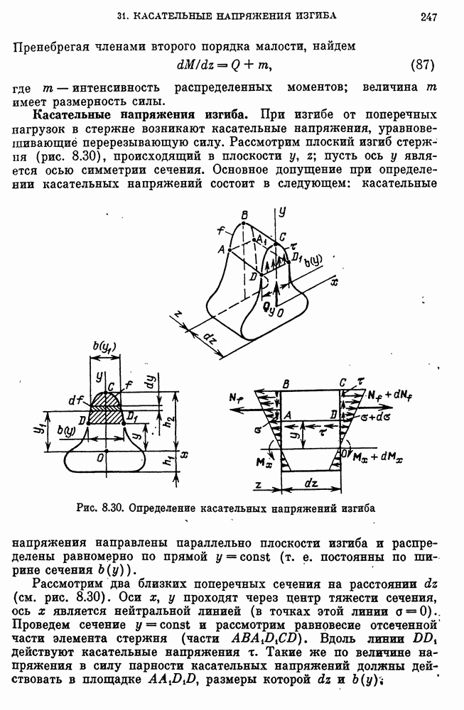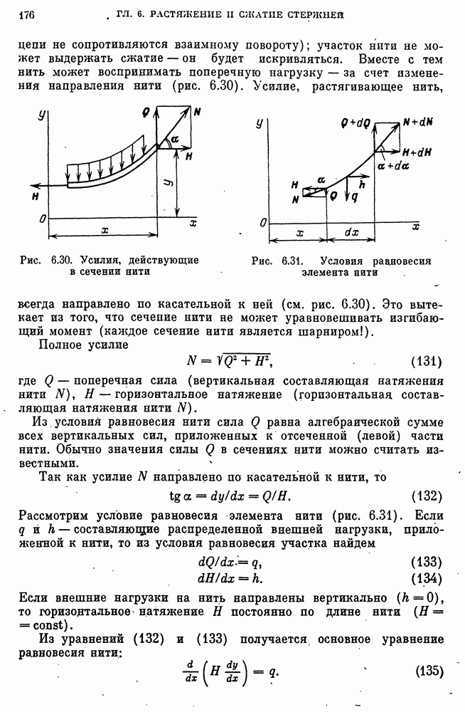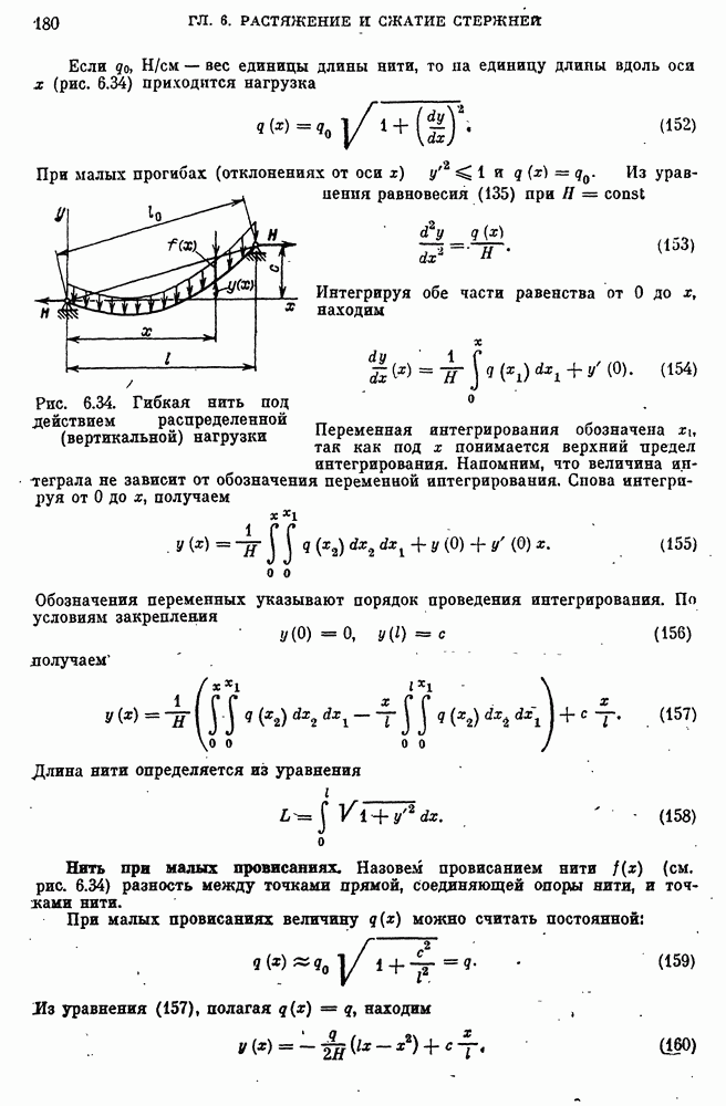 Рис. 6.34. Гибкая нить под действием распределенной (вертикальной) нагрузки
