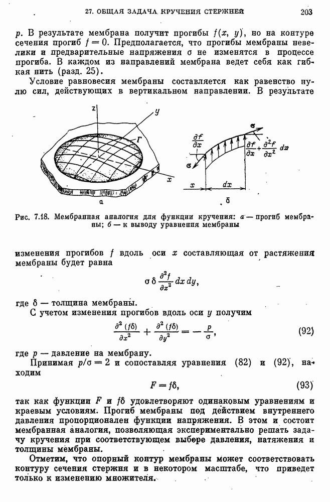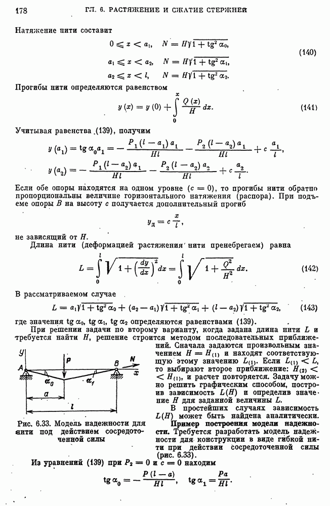 (см. рис. 6.34) разность между точками прямой, соединяющей опоры нити, и точками нити.
