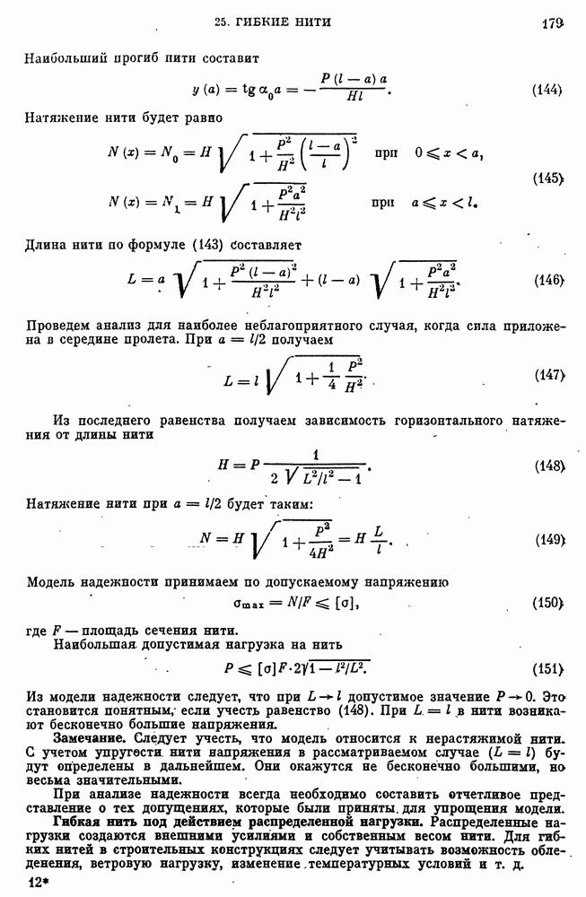 — допускаемая величина провисания в связи с габаритными условиями. Основными для расчета являются, уравнения (172) и (165).