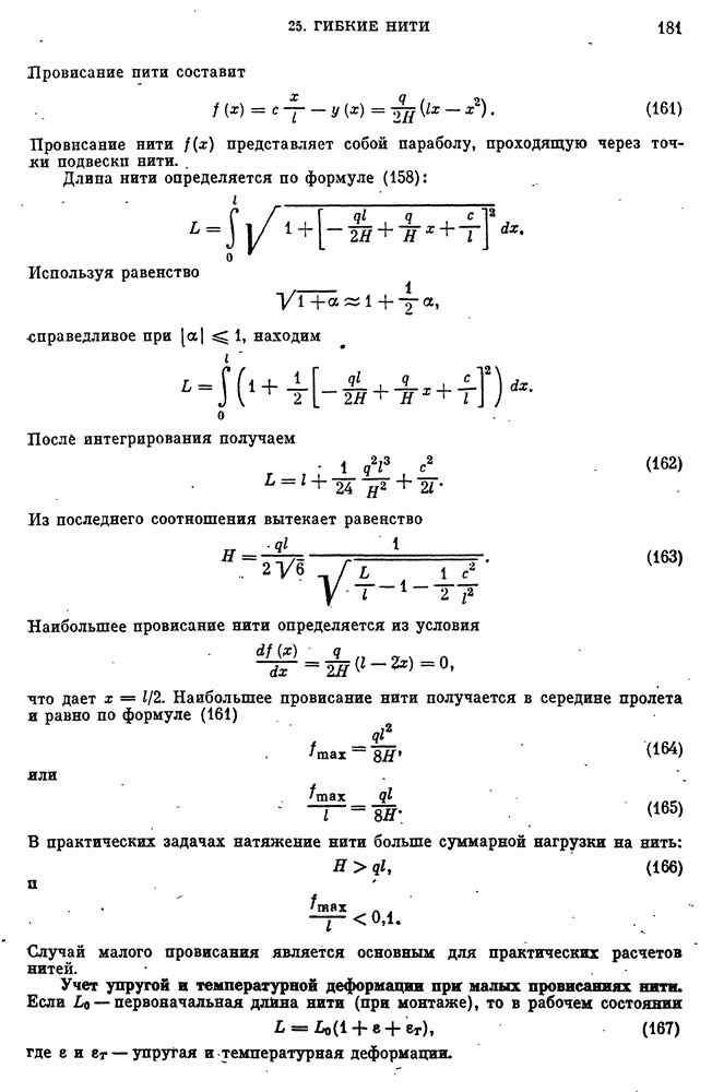 Случай малого провисания является основным для практических расчетов нитей.