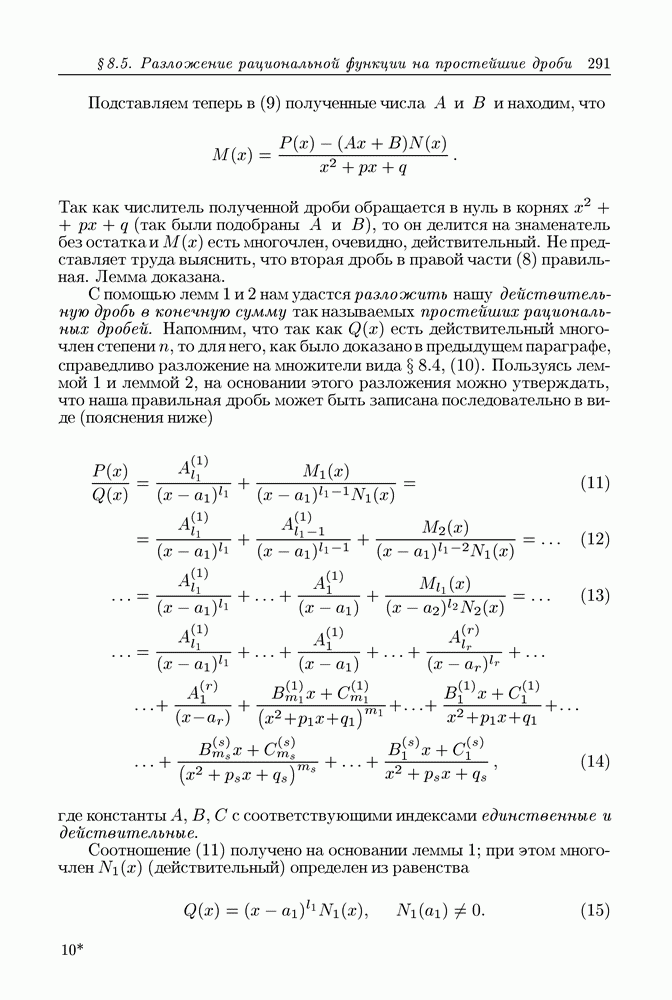 Рациональную функцию от (букв конечное число) будем обозначать символом Она является результатом применения к арифметических операций (сложения, вычитания, умножения и деления), взятых в конечном числе.