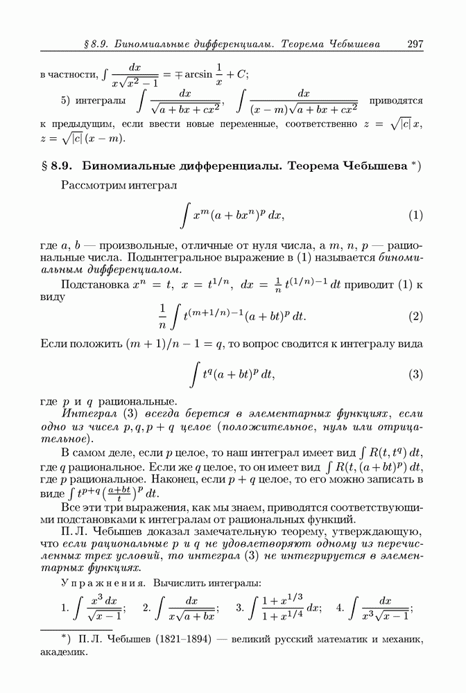 сводится к интегралу от рациональной функции. В самом деле, есть рациональная функция, а вместе с ней рациональна и ее производная Поэтому, обозначая через числители (целые числа) соответственно дробей приведенных к общему знаменателю получим, что интеграл (1) после подстановки (2) сводится к следующему: