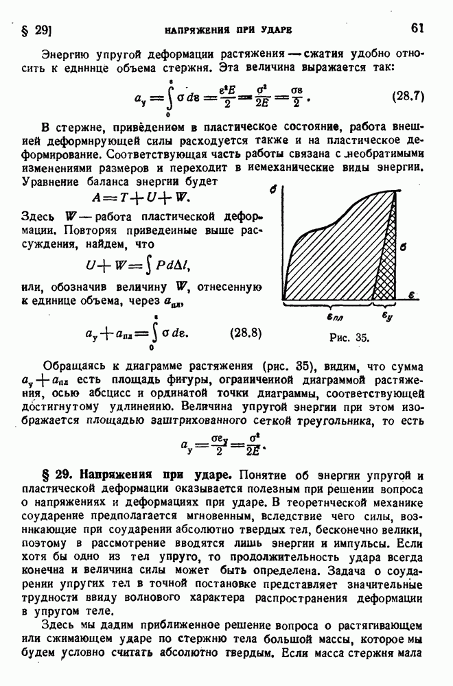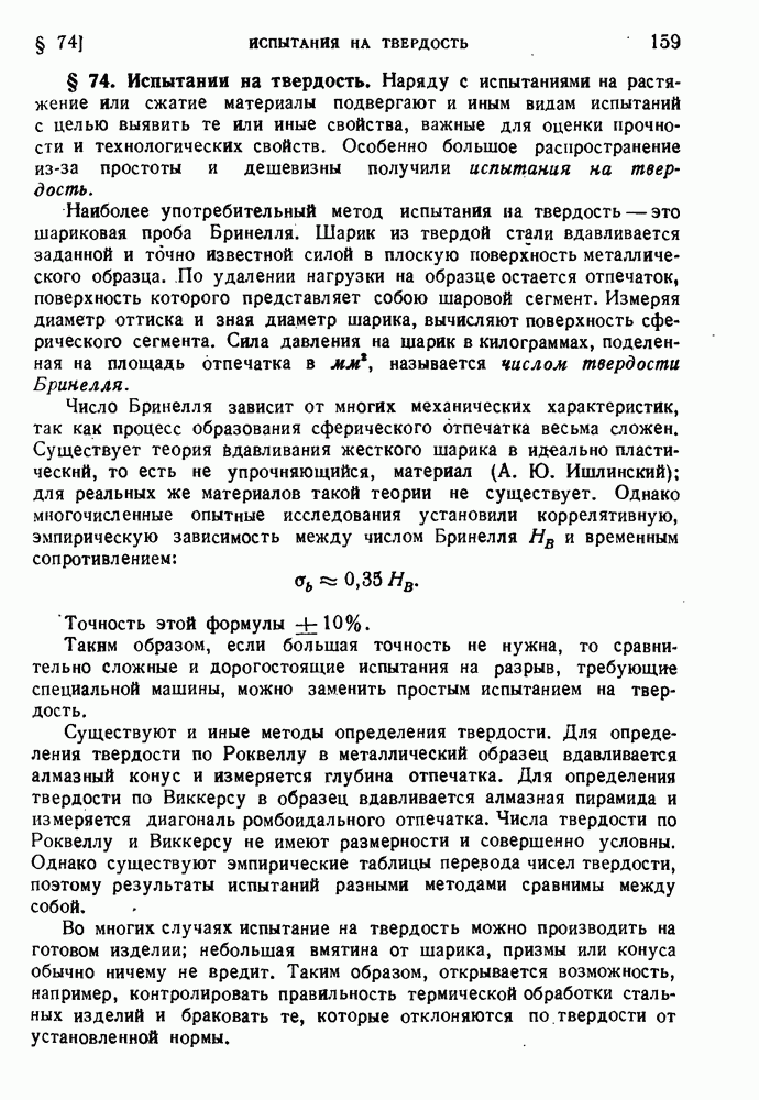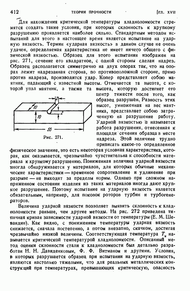 Наряду с характеристиками, физическое значение которых совершенно определенно, существуют и такие механические характеристики, которые неотделимы от данного частного вида испытаний и хотя характеризуют некоторые свойства материала, но характеризуют их скорее качественно, сравнительно. Как пример приведем такую величину, как: относительное удлинение образца при разрыве. Материал с большим относительным удлинением при разрыве называется вязким в противоположность хрупкому, который рвется при малом относительном удлинении. Кратковременная большая нагрузка, приложенная к детали из вязкого материала, вызовет некоторую пластическую деформацию, та же нагрузка поломает деталь из хрупкого материала. Действительно, сопротивление ударным нагрузкам определяется главным образом способностью материала поглощать энергию перед разрушением, а величина поглощенной энергии зависит не только от прочности, ной от вязкости материала. Поэтому вязкость — это положительное свойство материала, и величина относительного удлинения при разрыве является важным показателем качества его. В то же время, если определить относительное удлинение для одного и того же материала на образцах с разным отношением длины к поперечному размеру, результаты будут разными. Чтобы сравнивать степень пластичности разных материалов, нужно определить удлинение на геометрически подобных образцах.