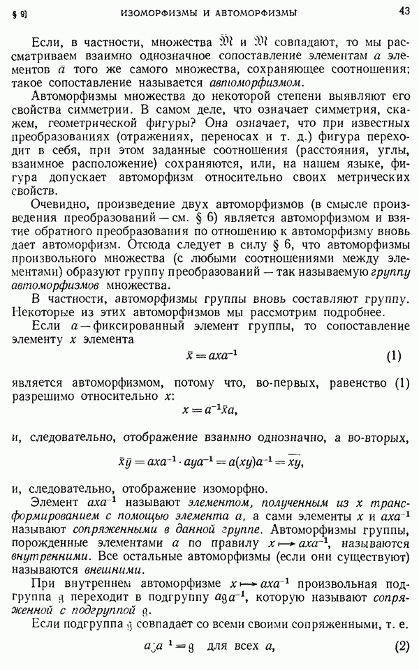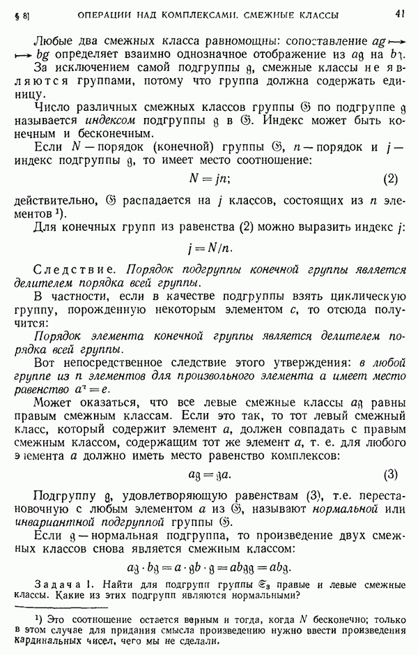 наоборот. Число различных элементов, сопряженных с элементом а, равно числу смежных классов, т. е. равно индексу группы