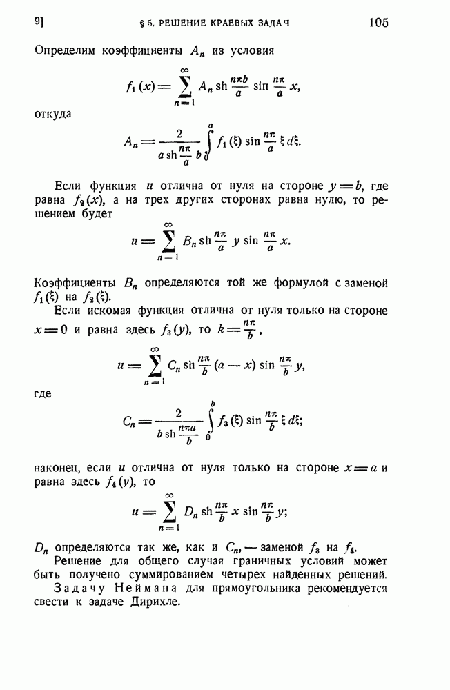 Обозначения см. на рис. 3. Решение второй краевой задачи для уравнения Лапласа: