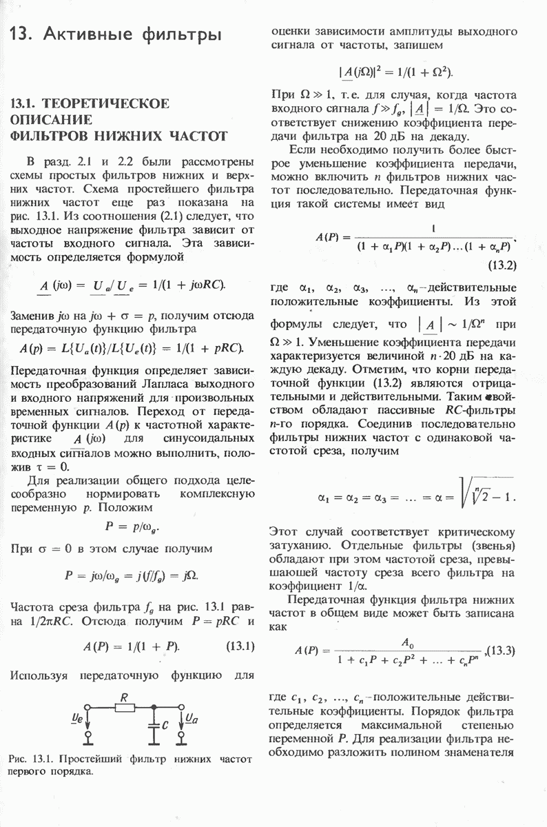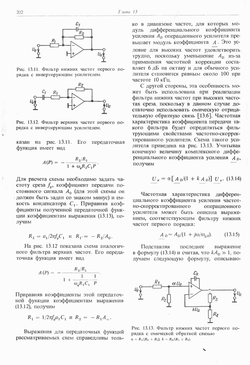 Передаточная функция активного фильтра нижних частот, изображенного на рис. 13.15, имеет вид