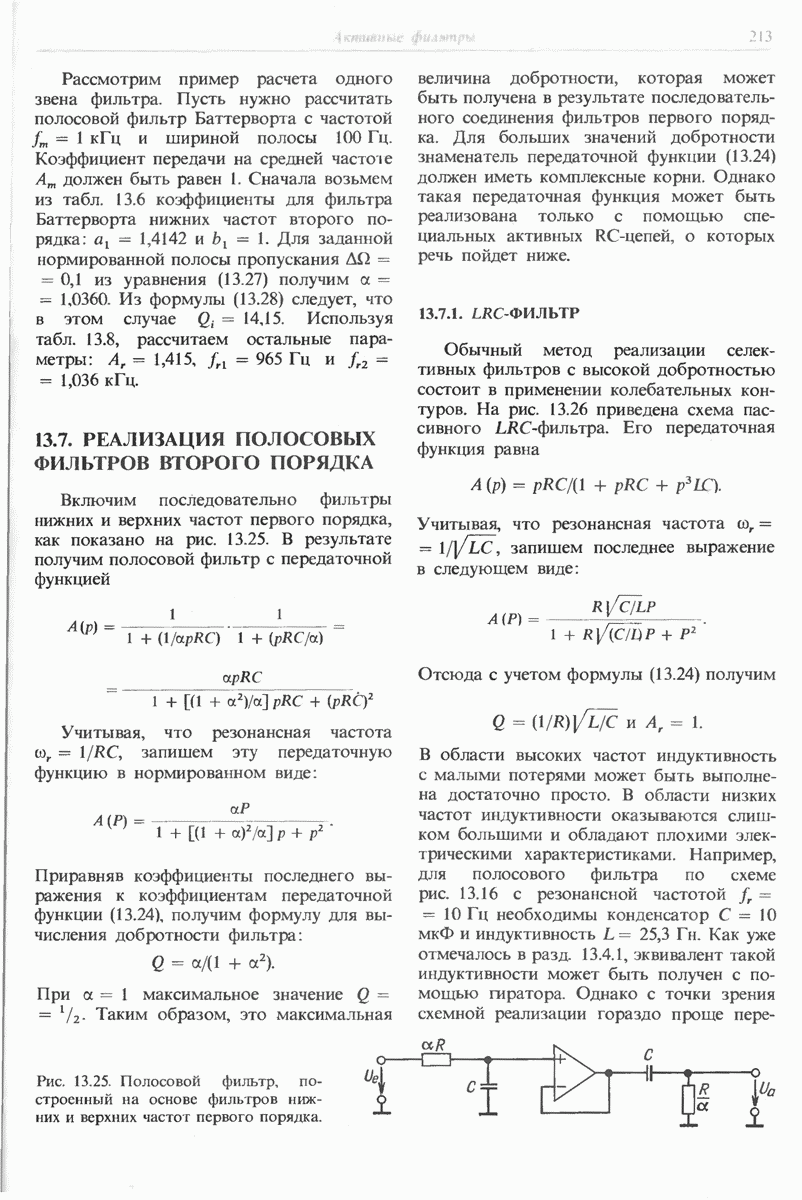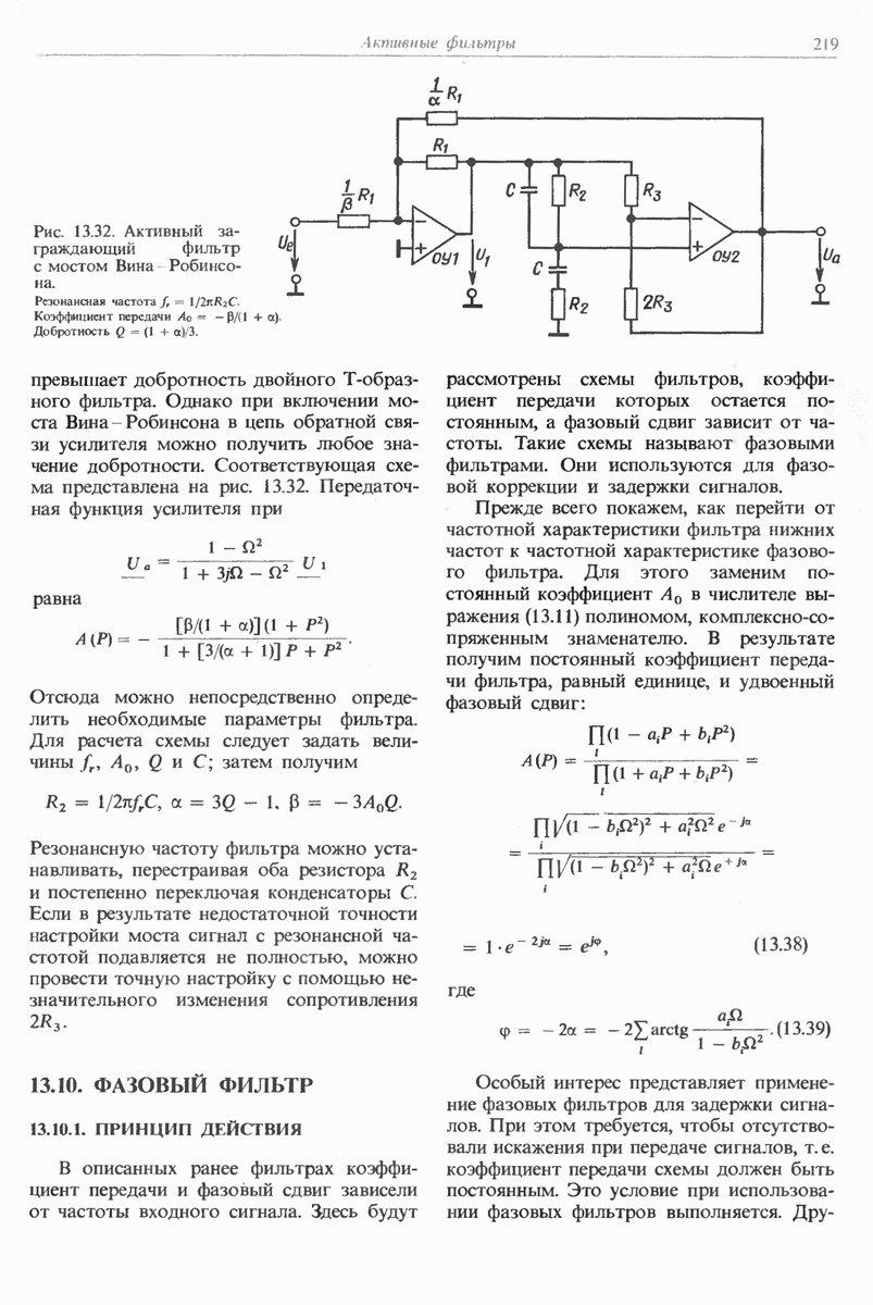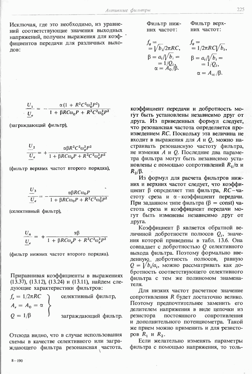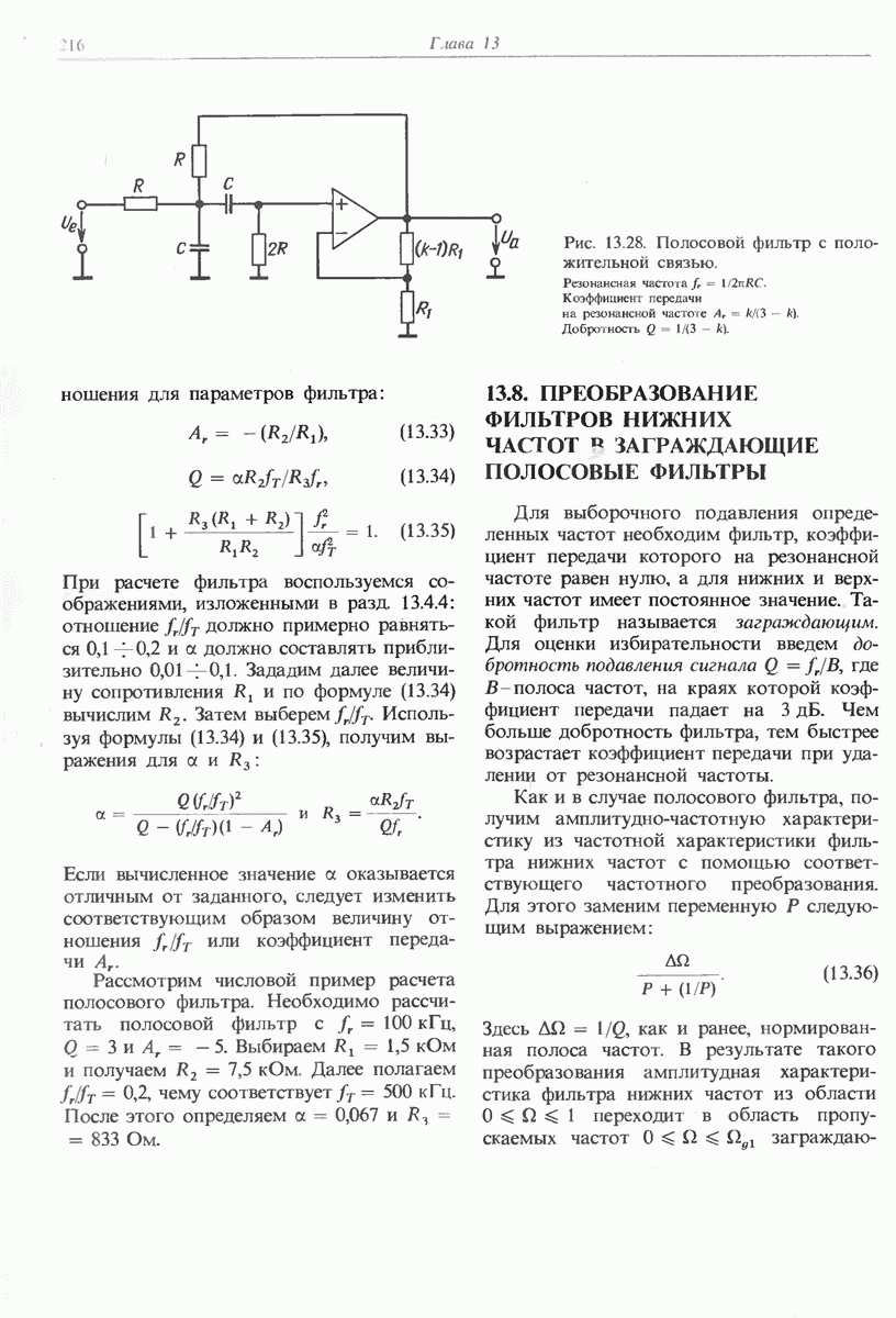 много большим величины, стоящей справа. Характеристики фильтра мало зависят от точности подбора номиналов его элементов, поэтому рассмотренная схема может быть рекомендована для реализации фильтров с высокой обротностью