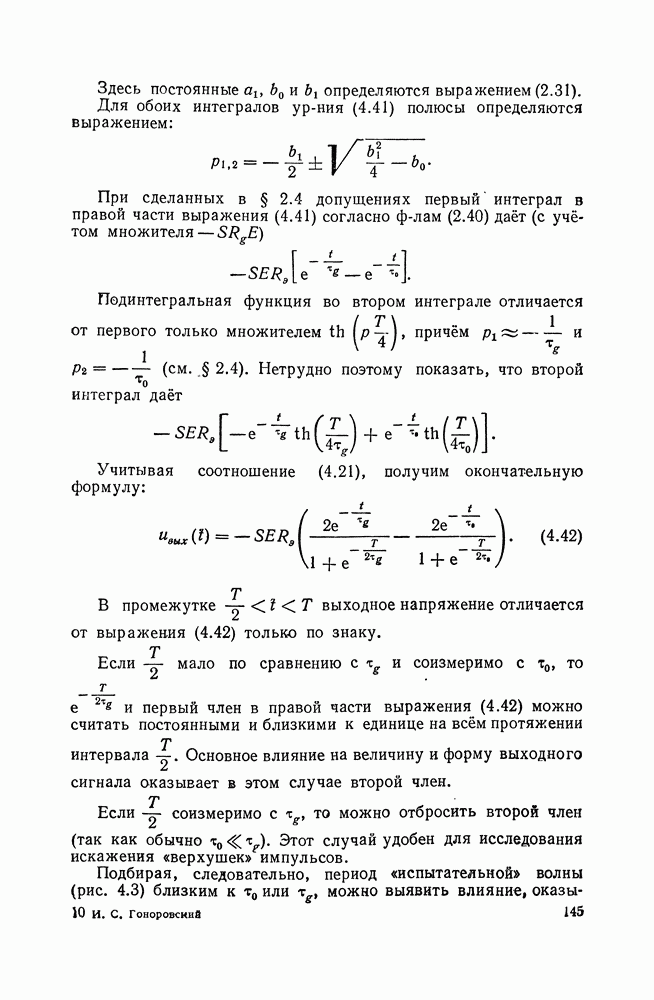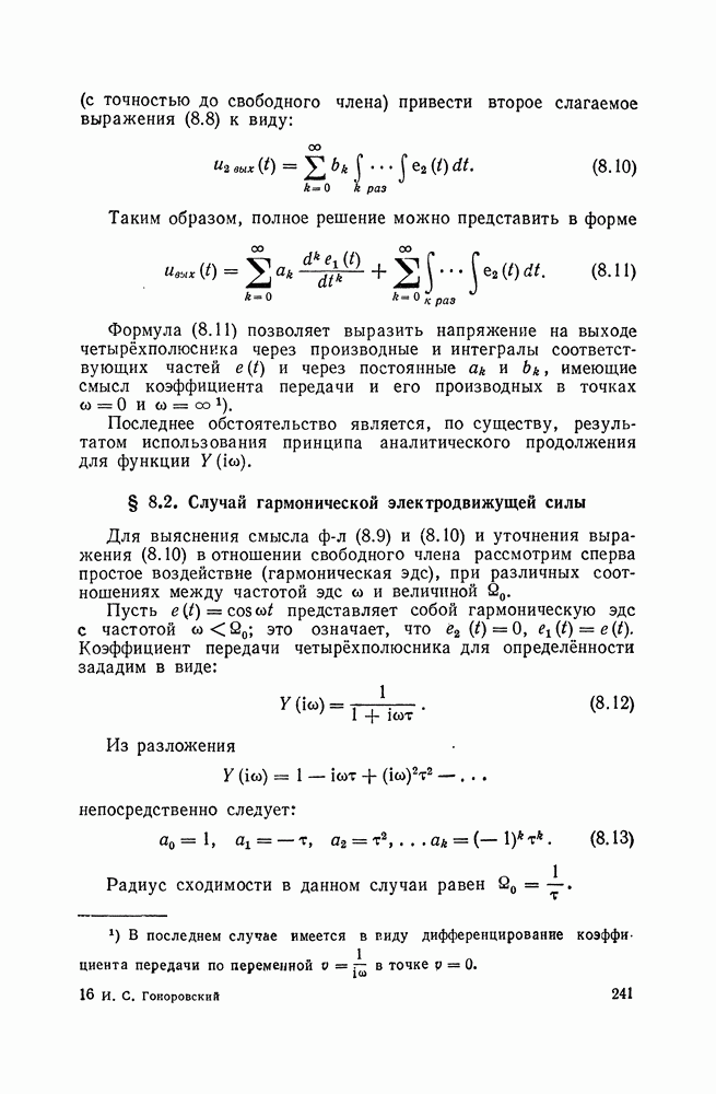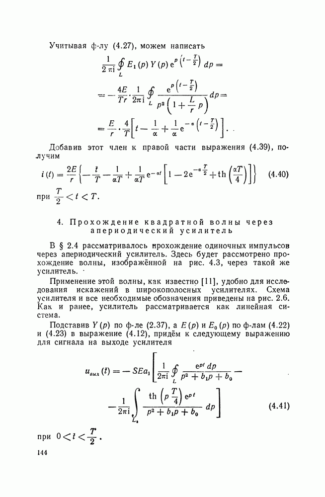 Напряжение на выходе четырёхполюсника согласно ф-лам (2.28) и (7.2) даётся выражением: