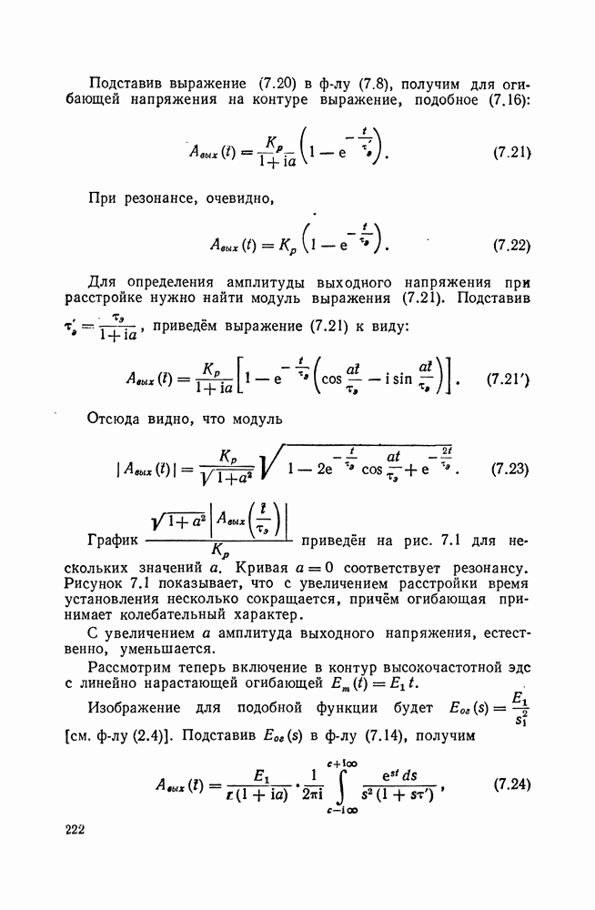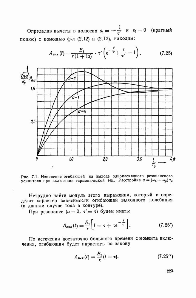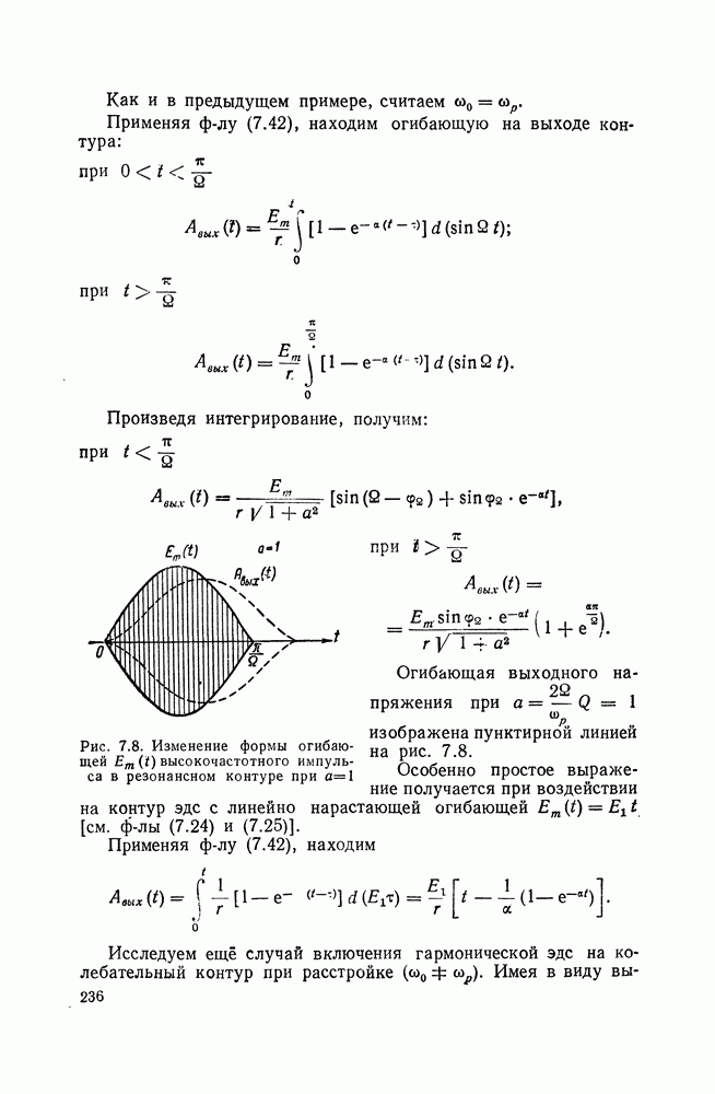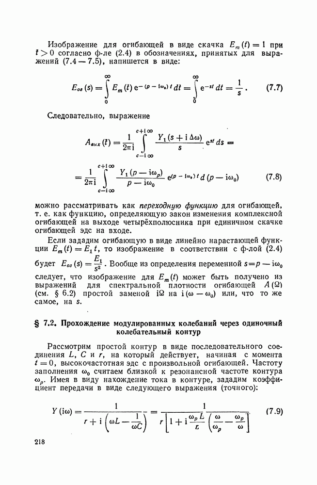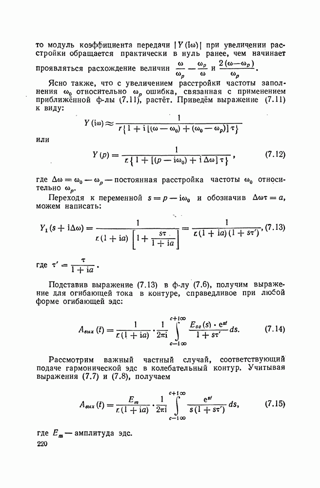 т. е. при совпадении частоты заполнения эдс с резонансной частотой цепи. Применение выражения (7.6) к некоторым распространённым в практике колебательным системам рассматривается в последующих параграфах данной главы. Сделаем предварительна несколько замечаний относительно огибающей