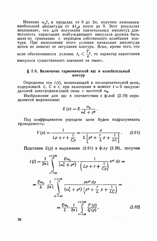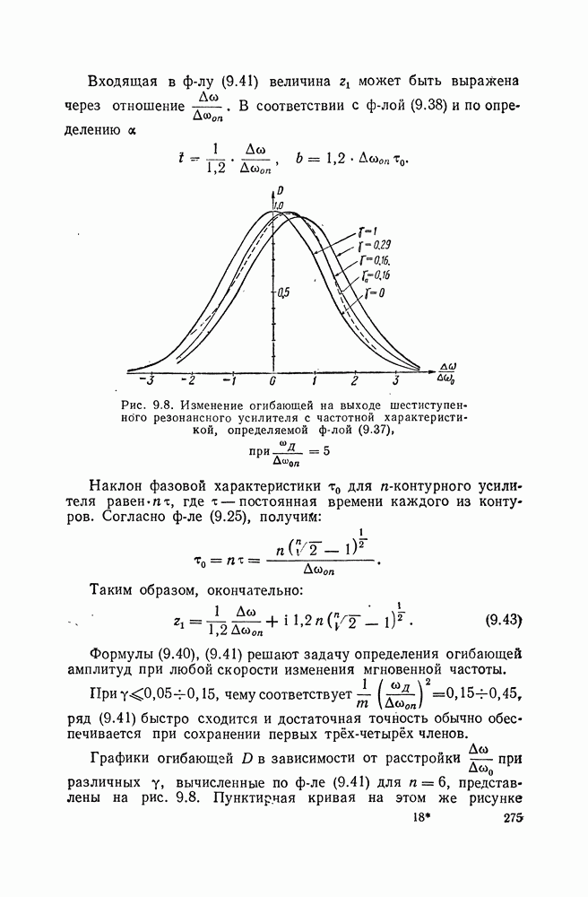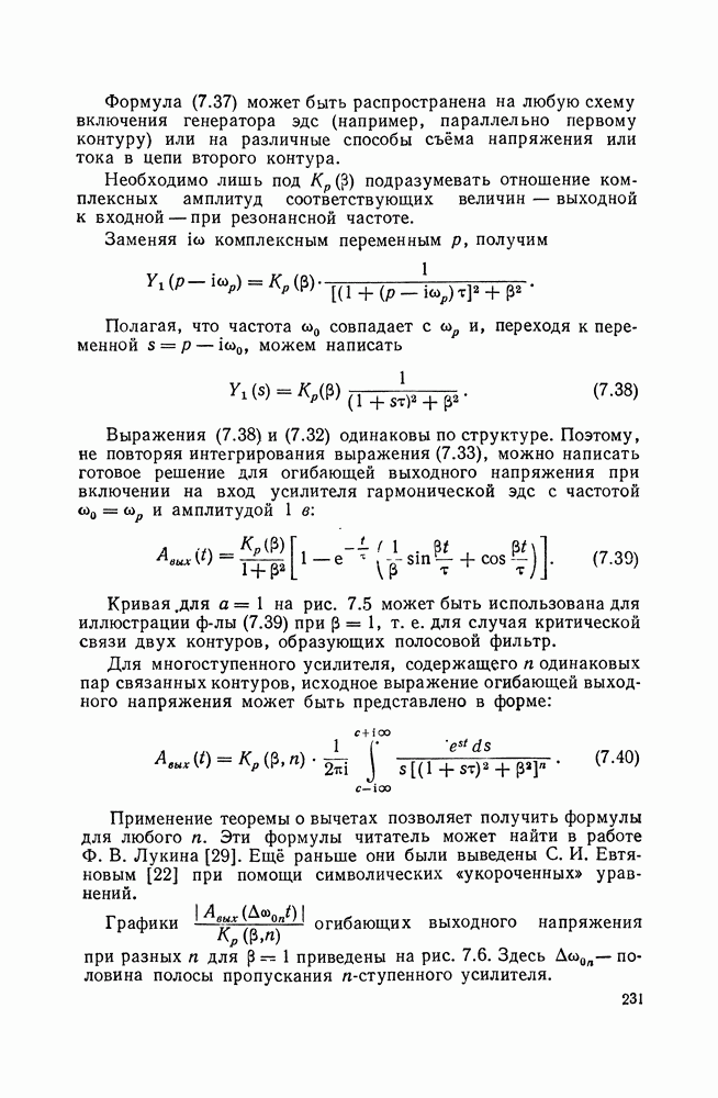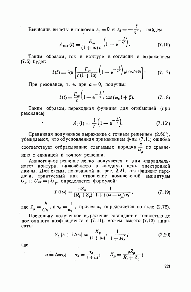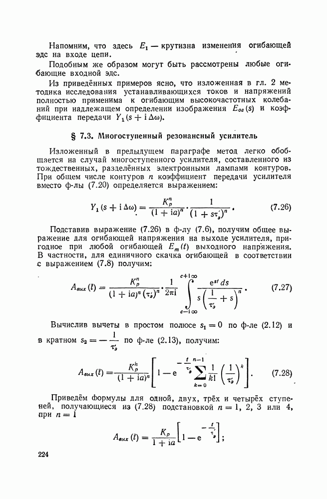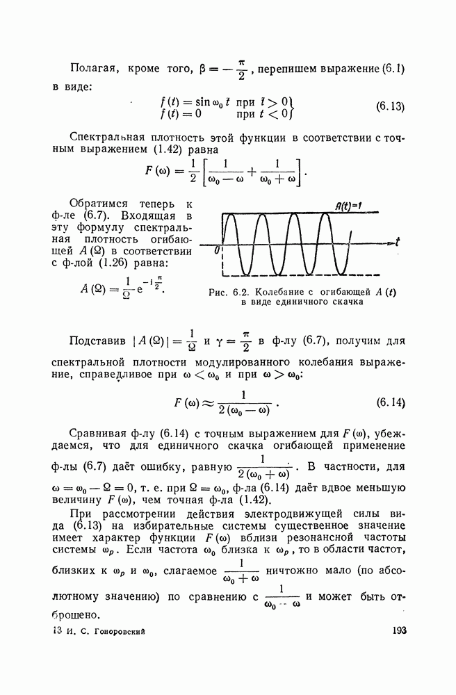 т. е. при совпадении частоты заполнения эдс с резонансной частотой цепи. Применение выражения (7.6) к некоторым распространённым в практике колебательным системам рассматривается в последующих параграфах данной главы. Сделаем предварительна несколько замечаний относительно огибающей