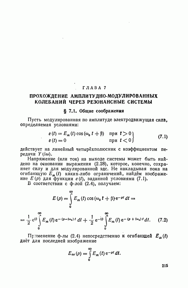 ГЛАВА 7. ПРОХОЖДЕНИЕ АМПЛИТУДНО-МОДУЛИРОВАННЫХ КОЛЕБАНИЙ ЧЕРЕЗ РЕЗОНАНСНЫЕ СИСТЕМЫ
