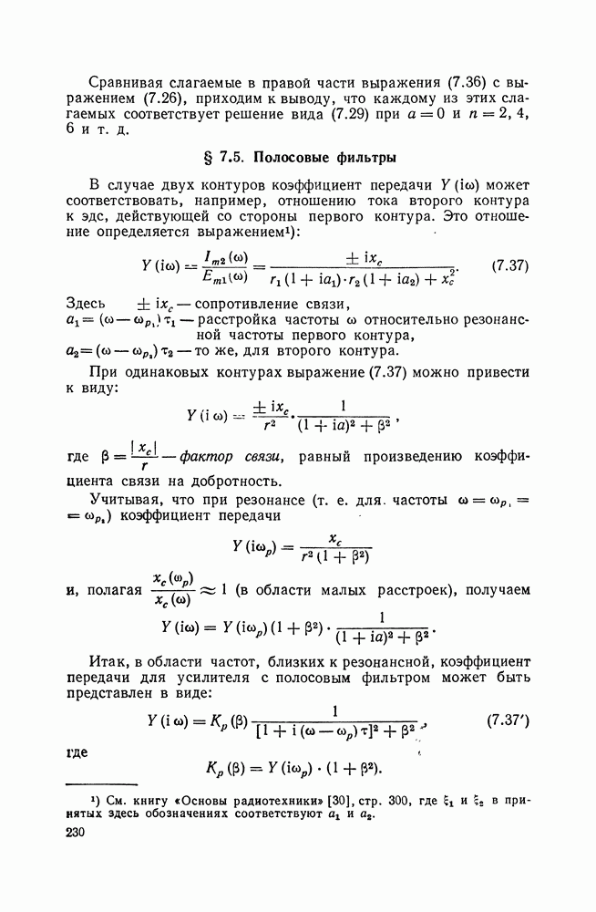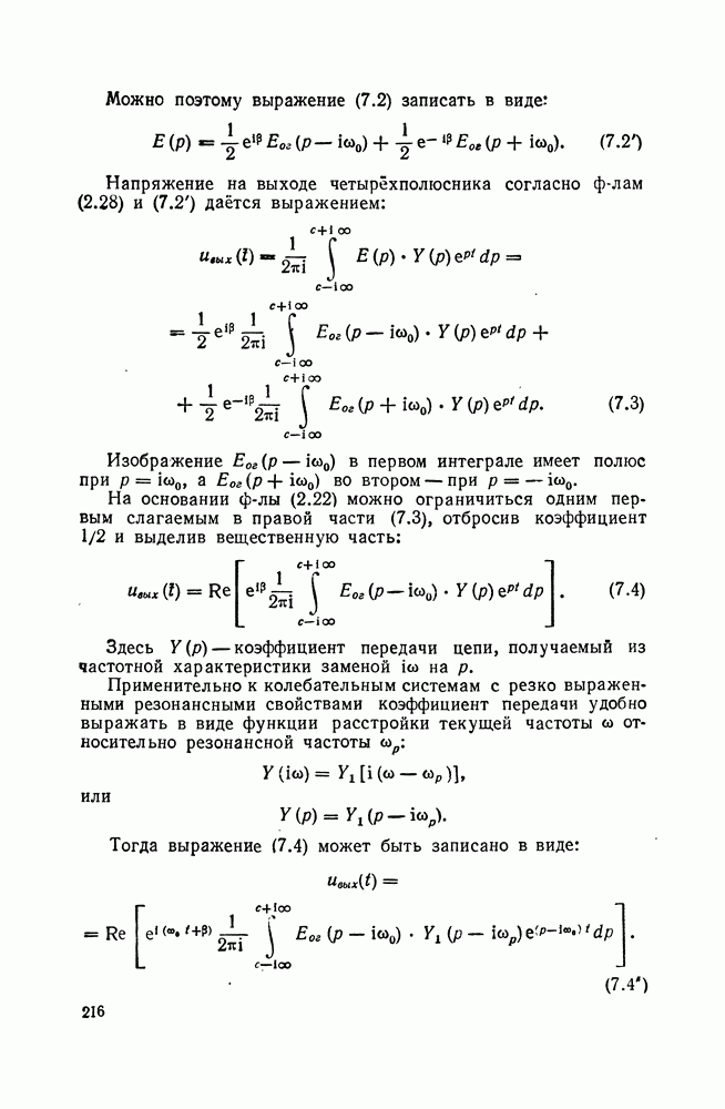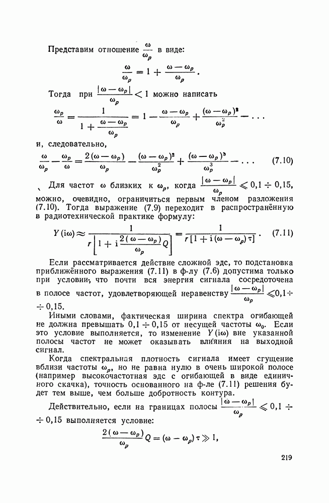 требует обычно очень громоздких преобразований. Целесообразно использовать упрощения, вытекающие из того факта, что в реальных избирательных системах коэффициент передачи существенно больше нуля только в относительно узкой области частот вблизи резонансной частоты системы.