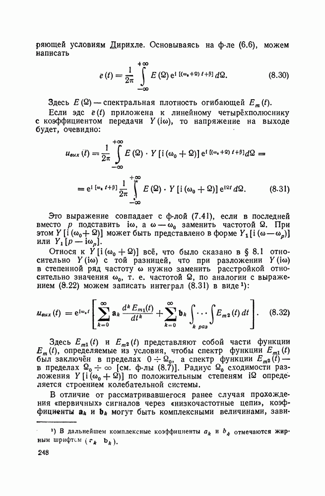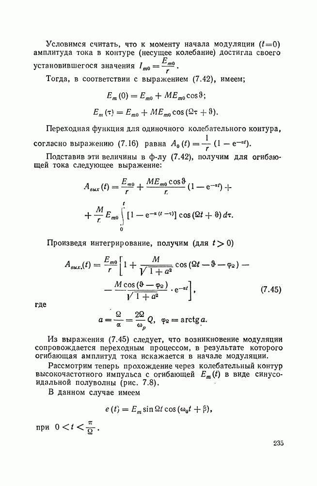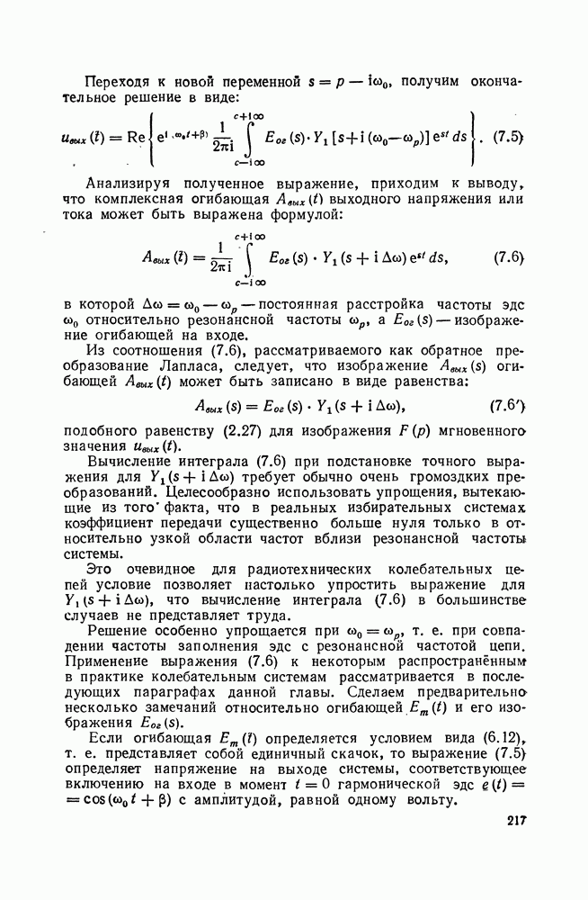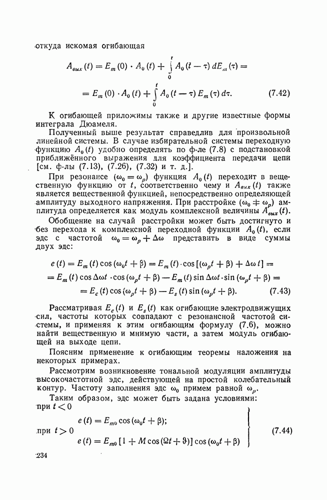 Напряжение (или ток) на выходе системы может быть найдено на основании выражения (2.28), которое, конечно, сохраняет силу и для модулированной эдс. Не накладывая пока на огибающую