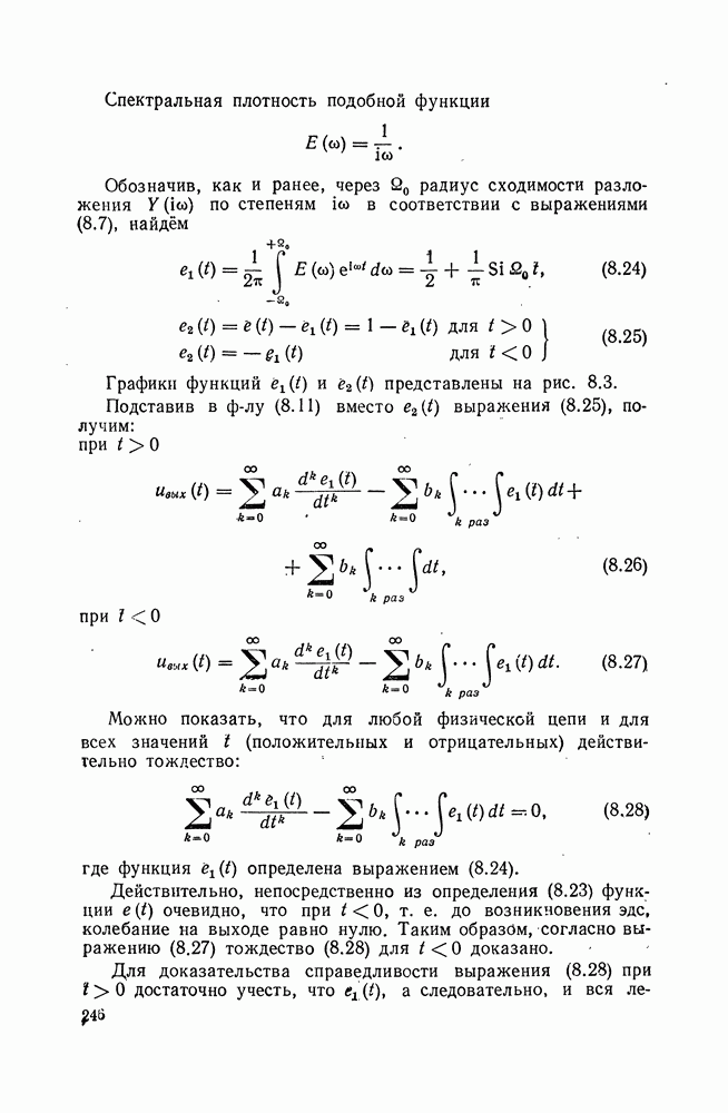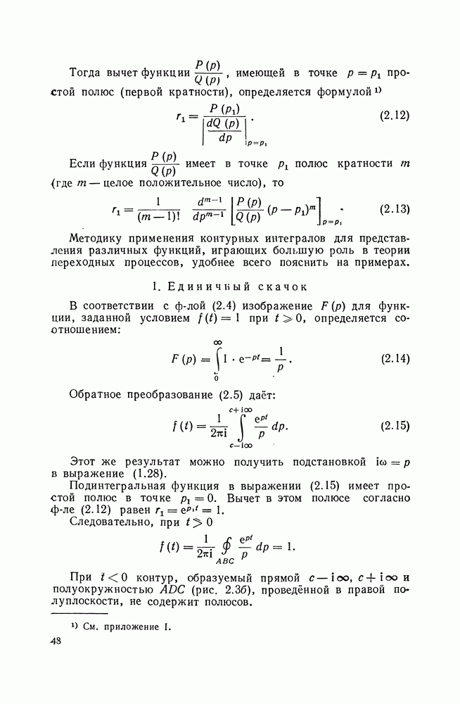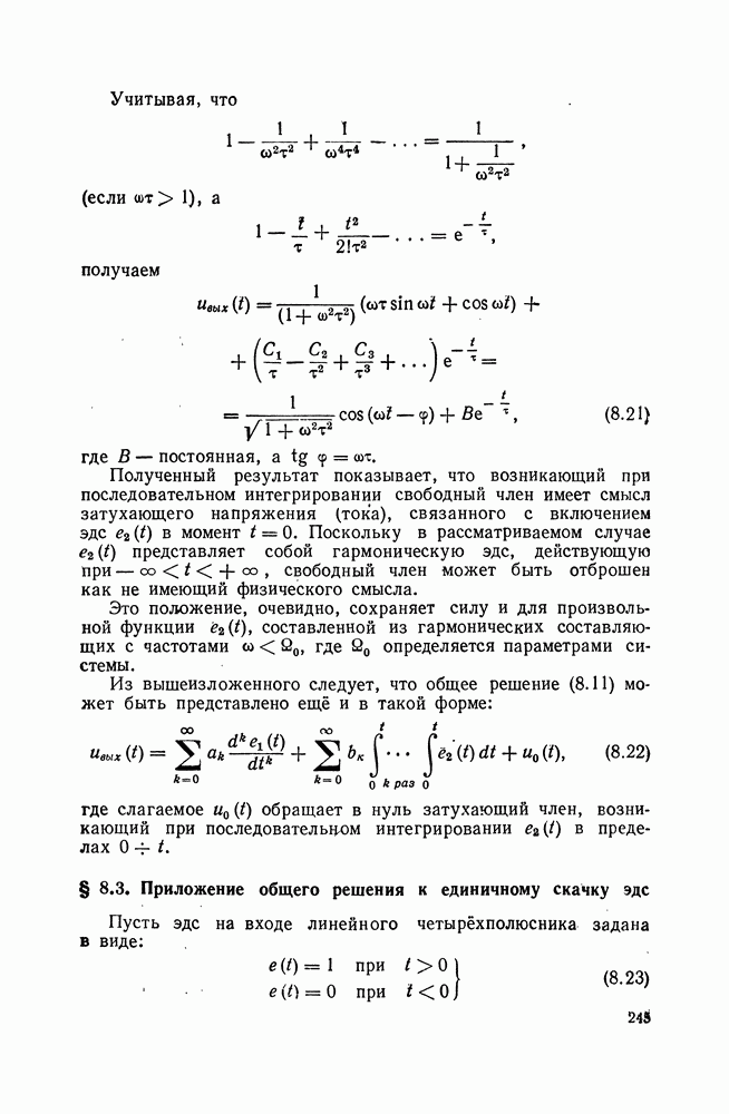 определяется условием вида (6.12), т. е. представляет собой единичный скачок, то выражение (7.5) определяет напряжение на выходе системы, соответствующее включению на входе в момент