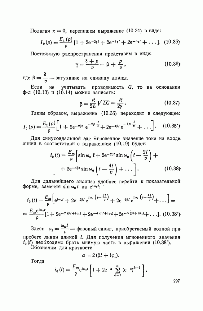 На основании ф-лы (2.22) можно ограничиться одним первым слагаемым в правой части (7.3), отбросив коэффициент 1/2 и выделив вещественную часть: