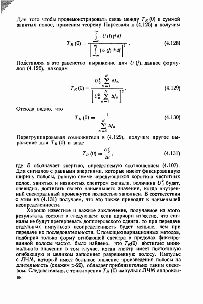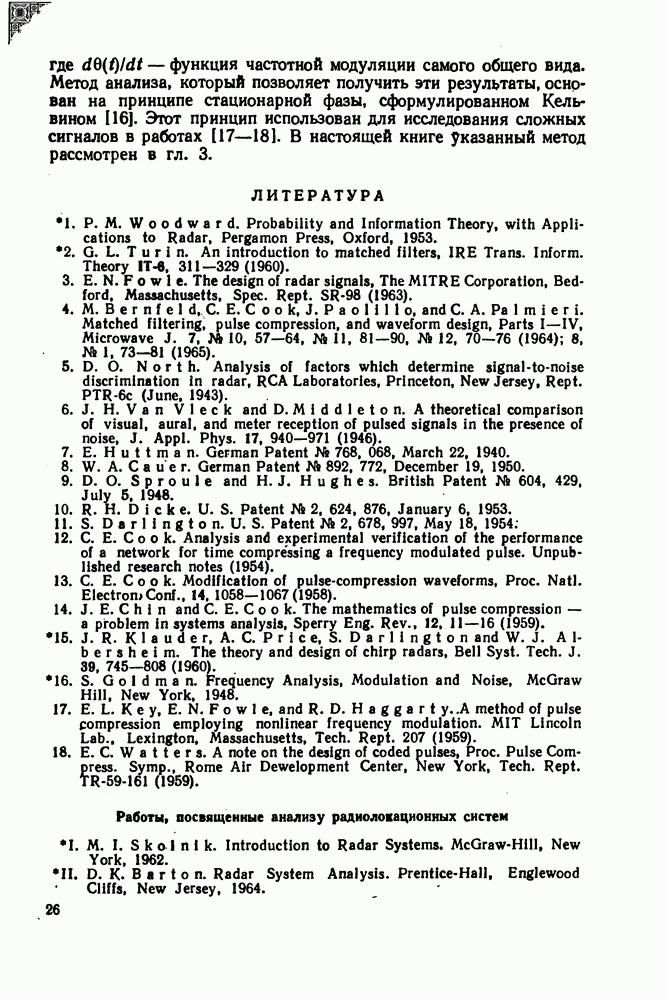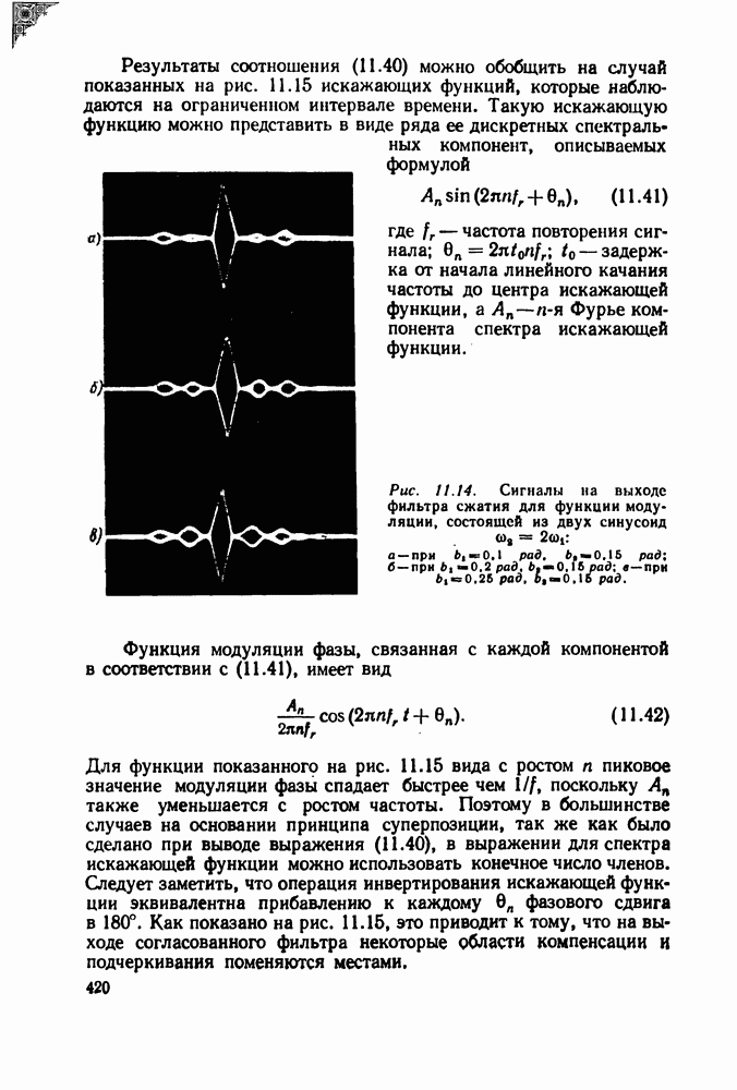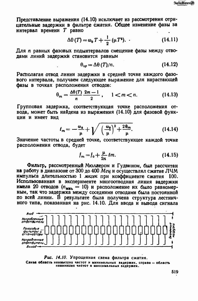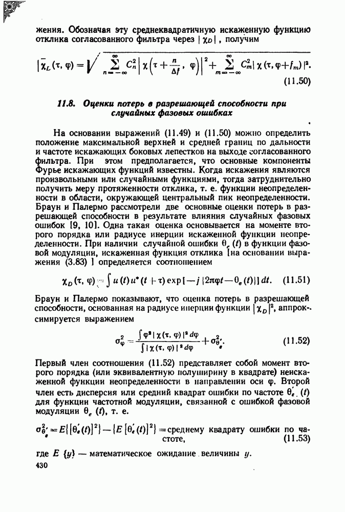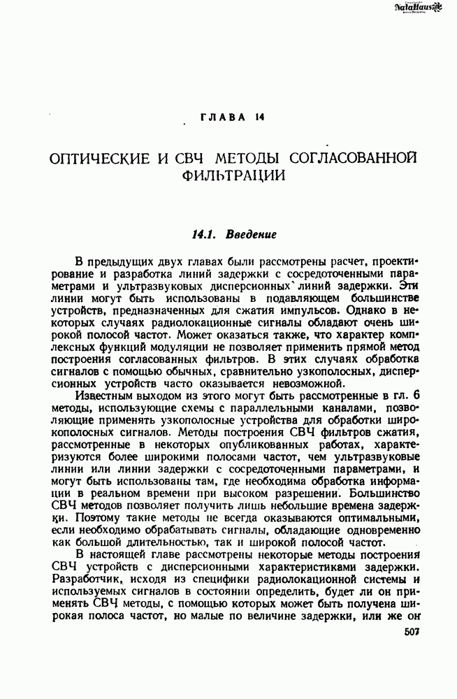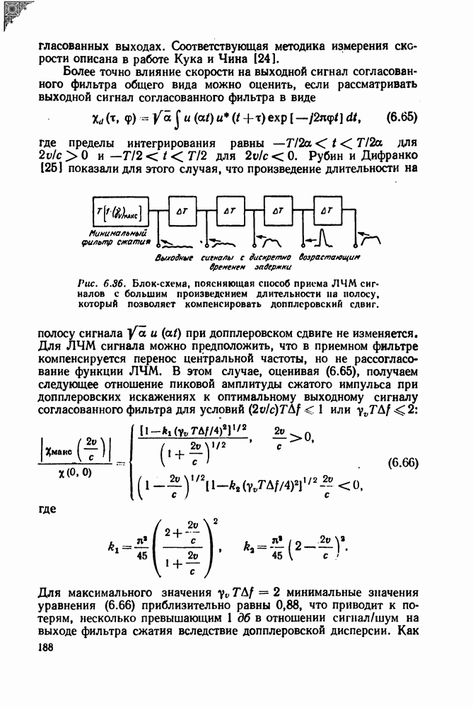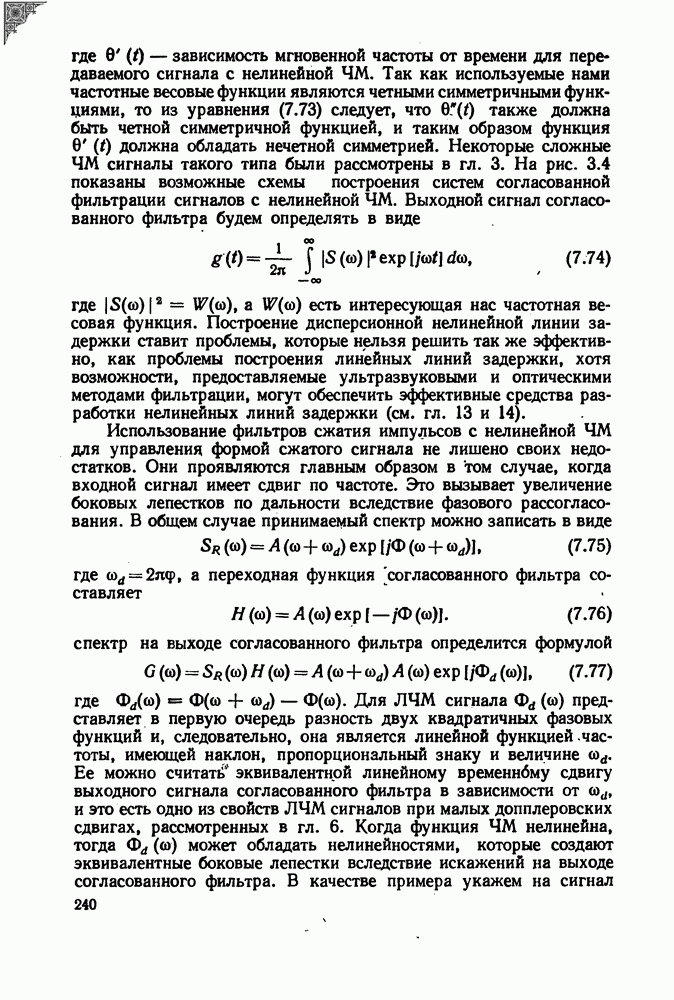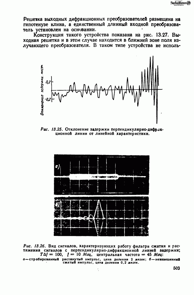Рис. 14.33. Схема устройства оптической обработки ЛЧМ сигналов, исполь зующего дифракционные свойства решетки с линейной ЧМ. Фотодетектор превращает интенсивность падающего на него света в выходное напряжение. Точка схождения светового потока первого порядка скользит по щели в течение интервала времени, определяемого соотношением ЛИТЕРАТУРА(см. скан) (см. скан) (см. скан) ДОПОЛНИТЕЛЬНАЯ ЛИТЕРАТУРА(см. скан) (см. скан) (см. скан)