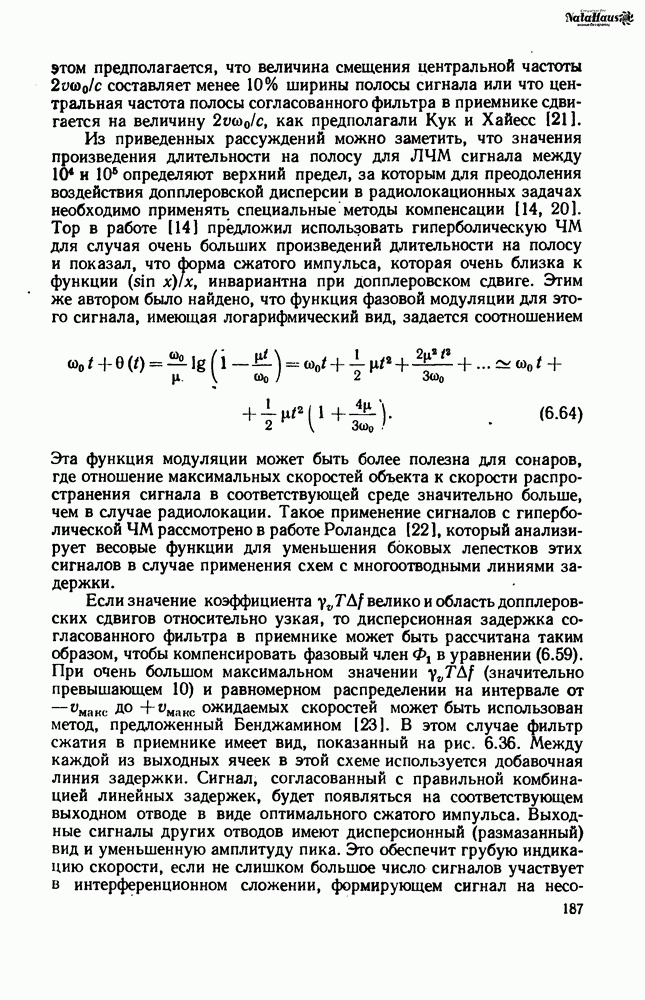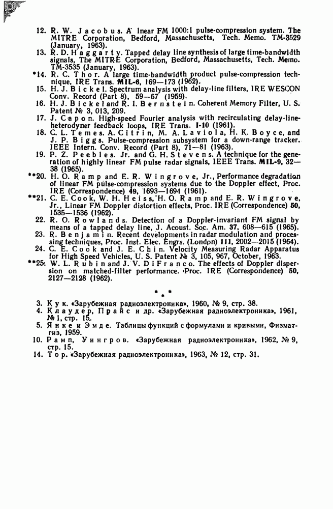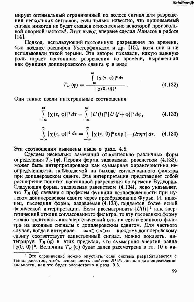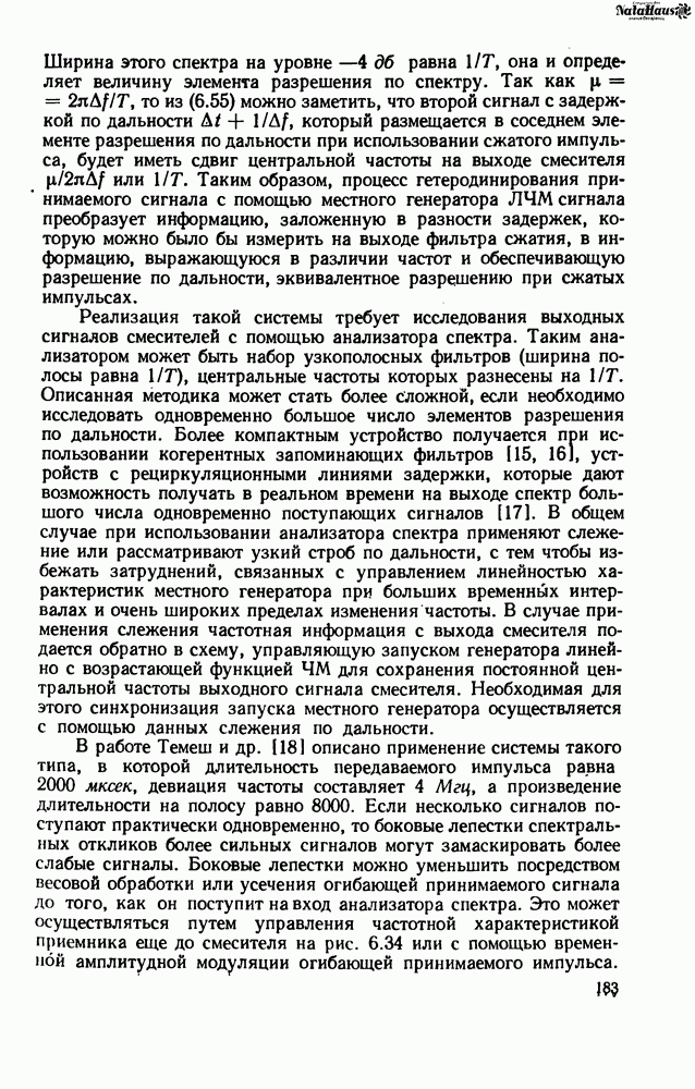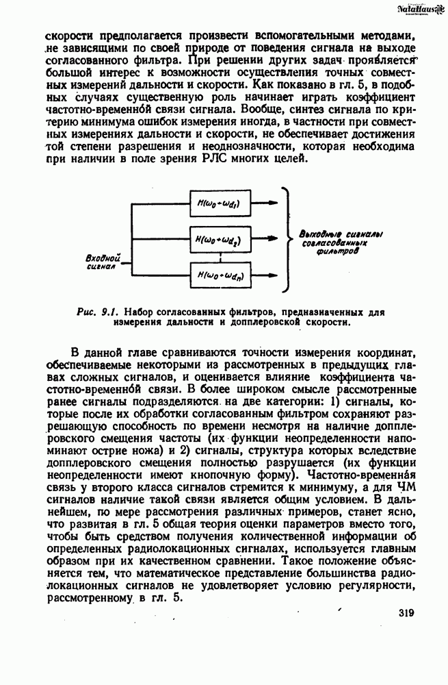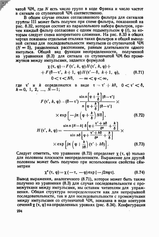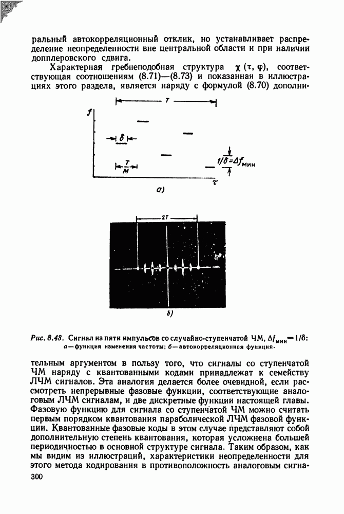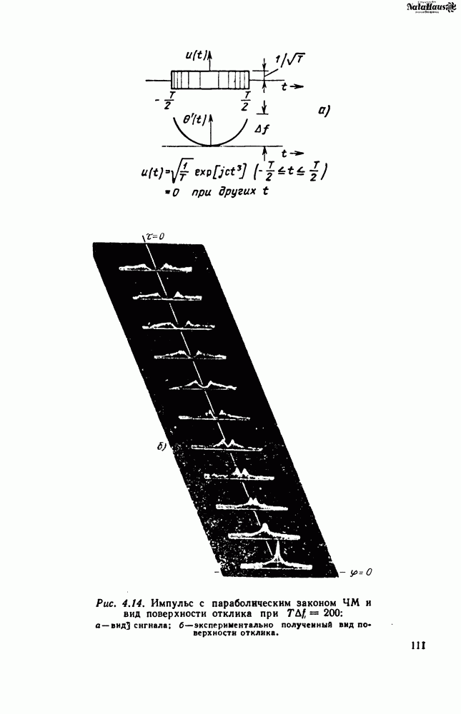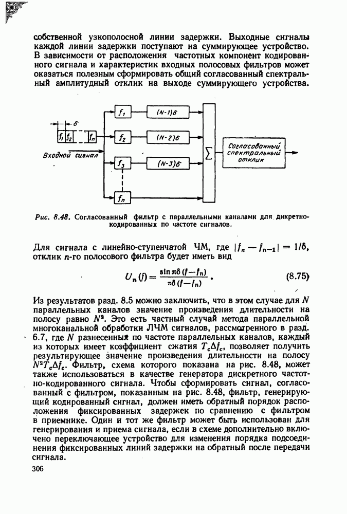 Рис. 14.33. Схема устройства оптической обработки ЛЧМ сигналов, исполь зующего дифракционные свойства решетки с линейной ЧМ. Фотодетектор превращает интенсивность падающего на него света в выходное напряжение. Точка схождения светового потока первого порядка скользит по щели в течение интервала времени, определяемого соотношением ЛИТЕРАТУРА(см. скан) (см. скан) (см. скан) ДОПОЛНИТЕЛЬНАЯ ЛИТЕРАТУРА(см. скан) (см. скан) (см. скан)