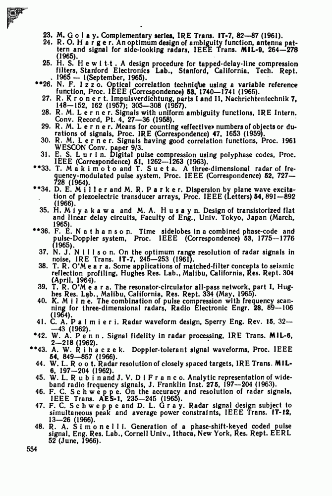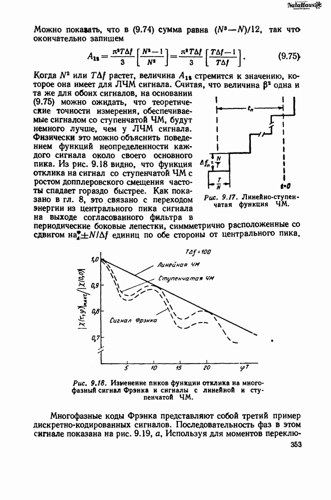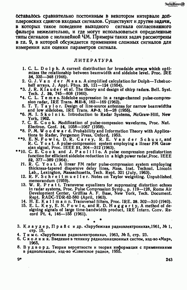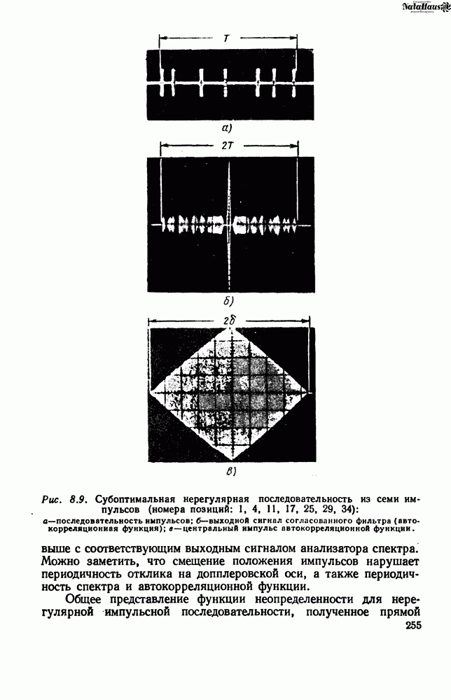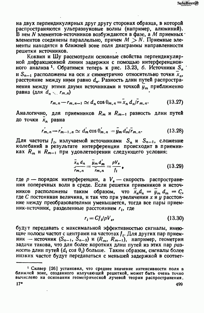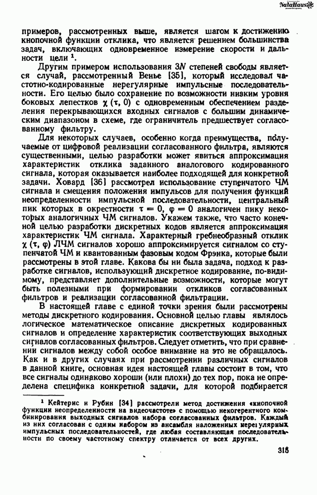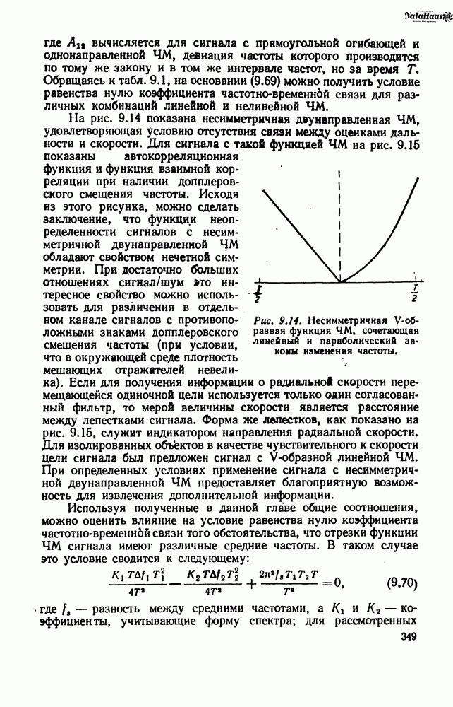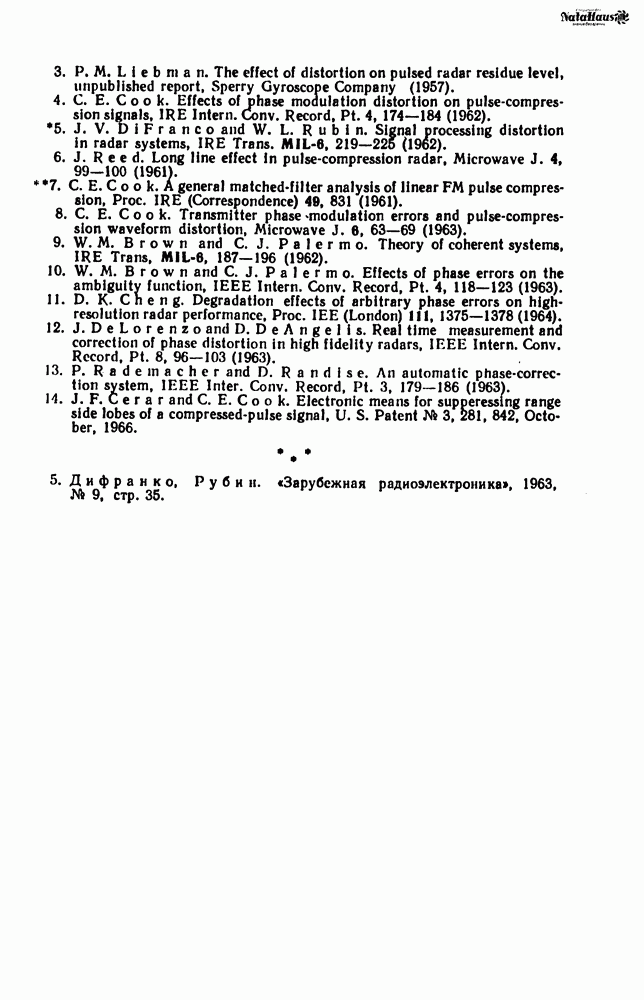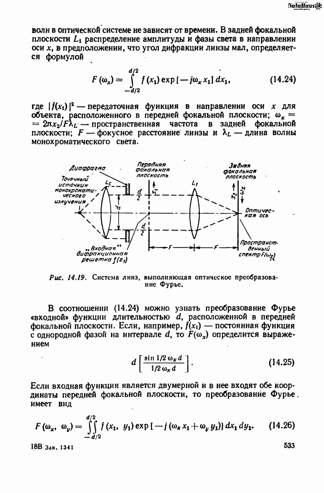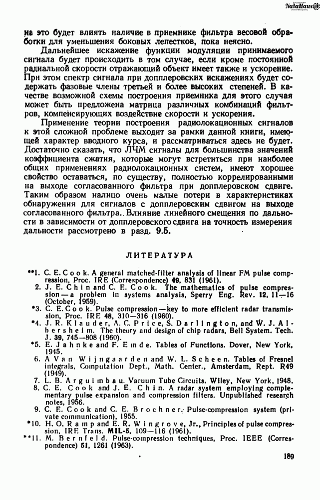 Рис. 14.33. Схема устройства оптической обработки ЛЧМ сигналов, исполь зующего дифракционные свойства решетки с линейной ЧМ. Фотодетектор превращает интенсивность падающего на него света в выходное напряжение. Точка схождения светового потока первого порядка скользит по щели в течение интервала времени, определяемого соотношением ЛИТЕРАТУРА(см. скан) (см. скан) (см. скан) ДОПОЛНИТЕЛЬНАЯ ЛИТЕРАТУРА(см. скан) (см. скан) (см. скан)