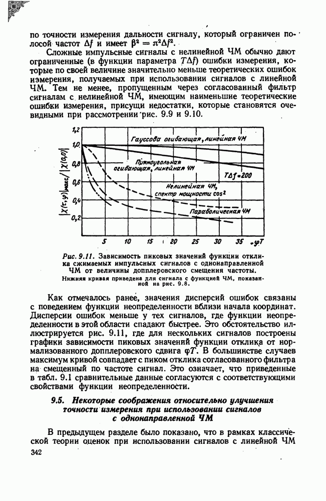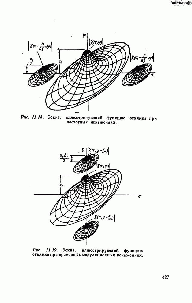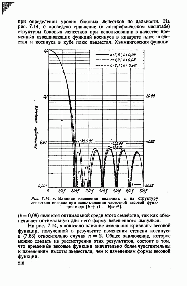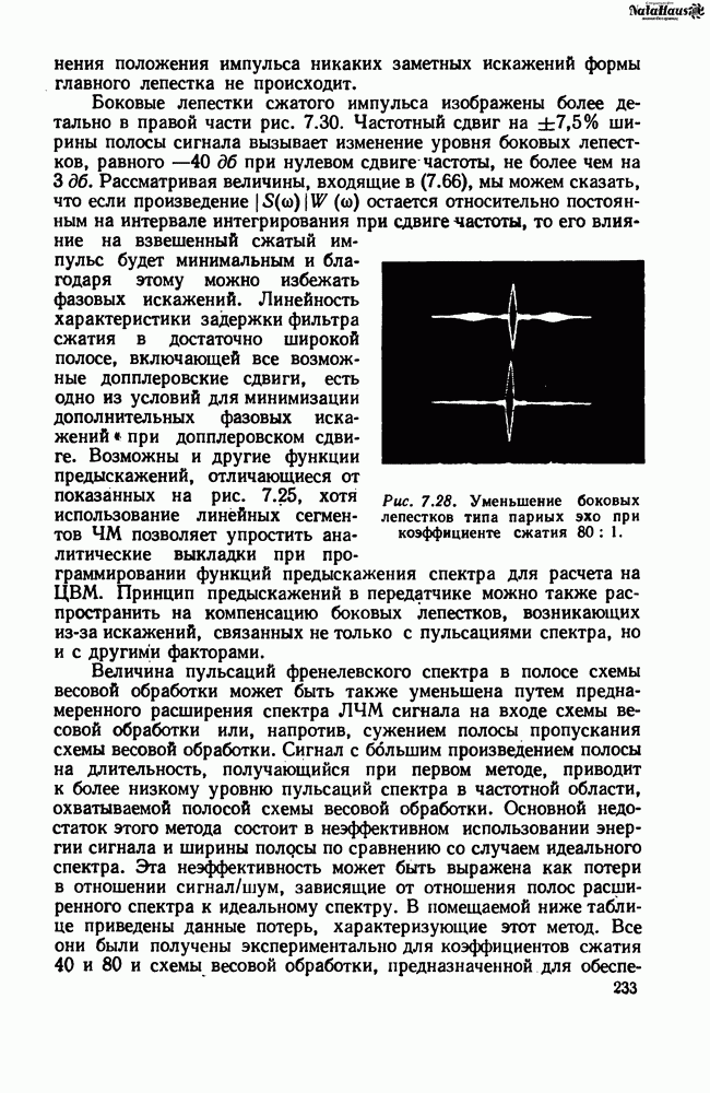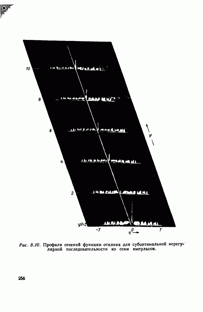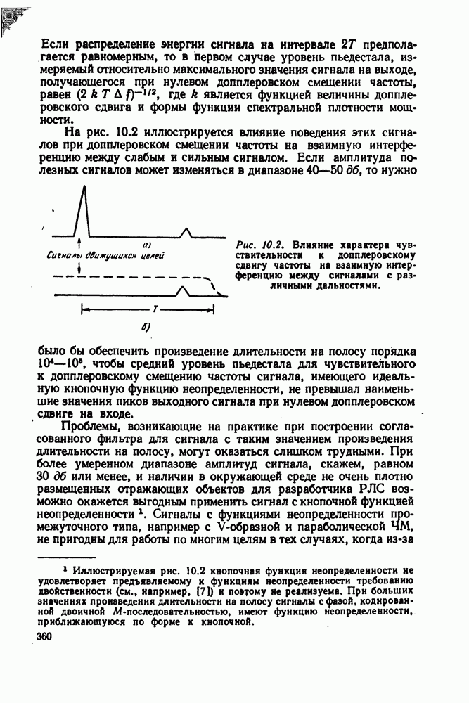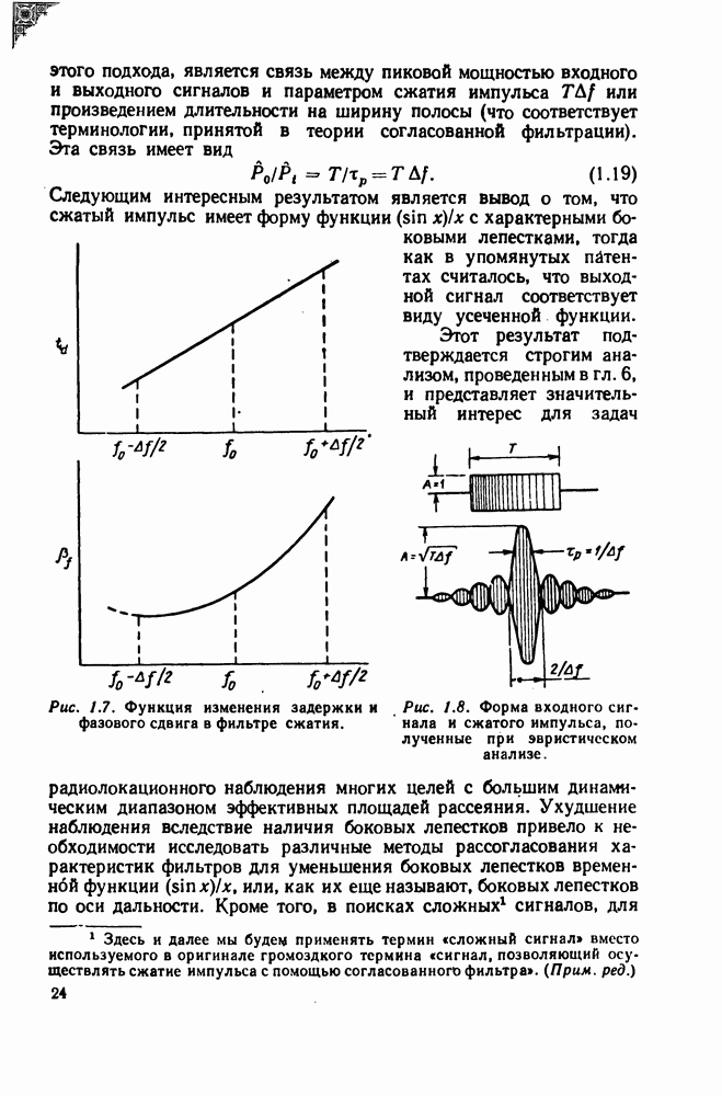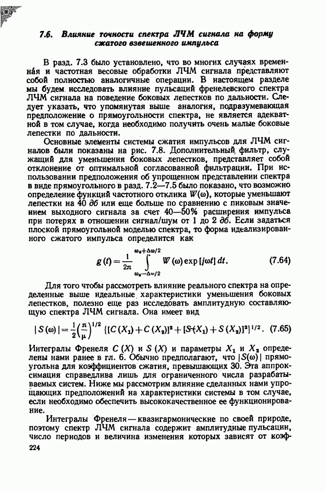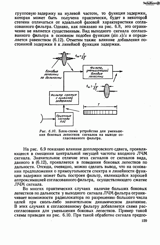 (кликните для просмотра скана) использование приема рассогласования частоты опорного сигнала с целью достижения большего разделения интересующего нас первого порядка дифракции от других компонент светового потока, если интерференция между ними превышает допустимую. Это приводит к улучшению динамического диапазона сигналов на выходе устройства обработки практически в пределах от 40 до 60 дб. В частном случае использования ЛЧМ сигнала можно применять ультразвуковой модулятор света в качестве фильтра сжатия при значительно более простой схеме его построения, при которой отпадает необходимость использовать опорную решетчатую функцию.
