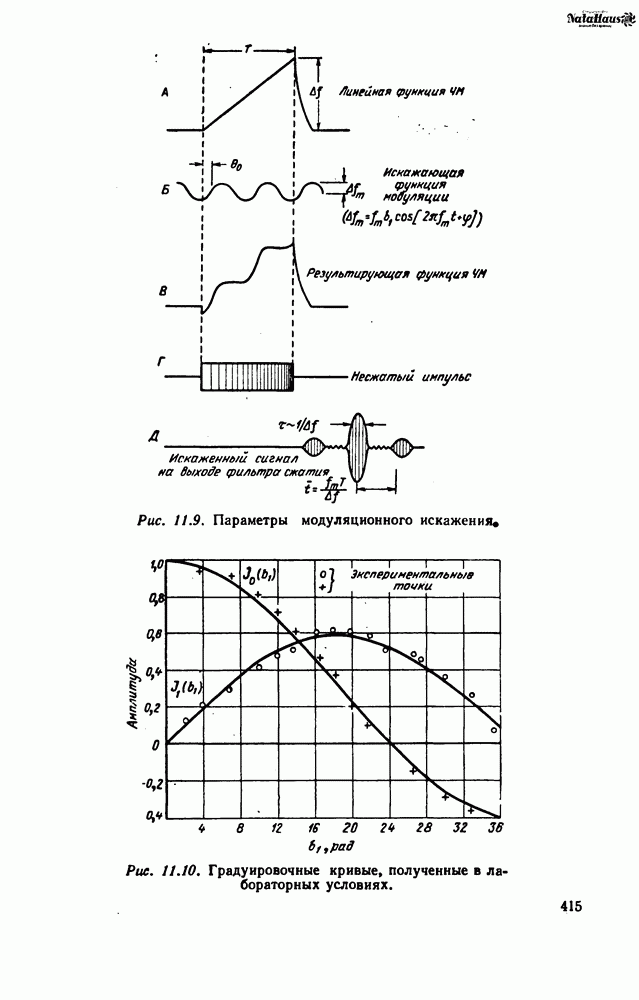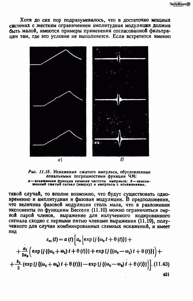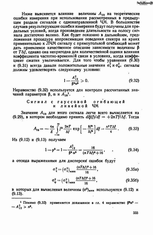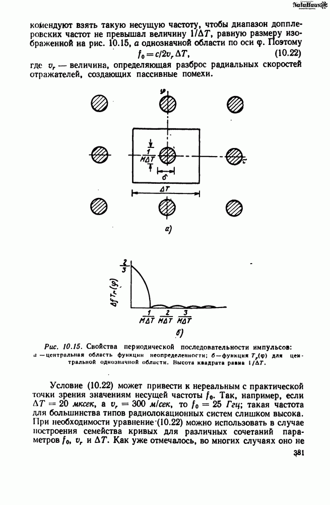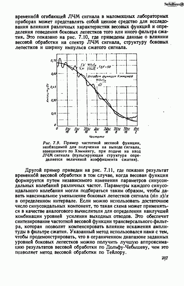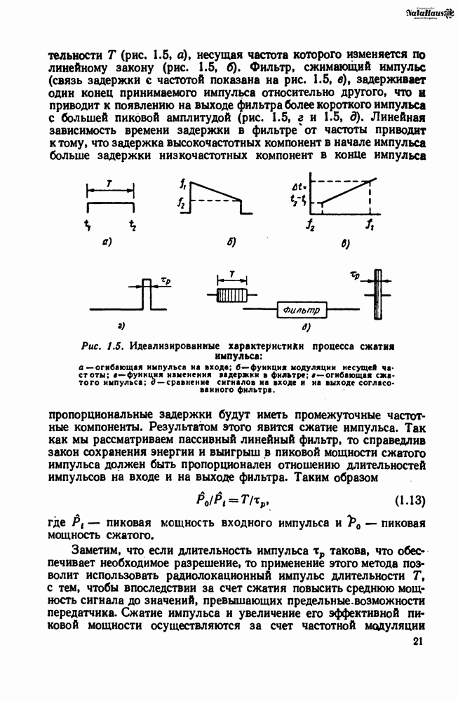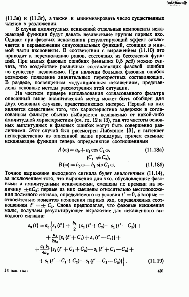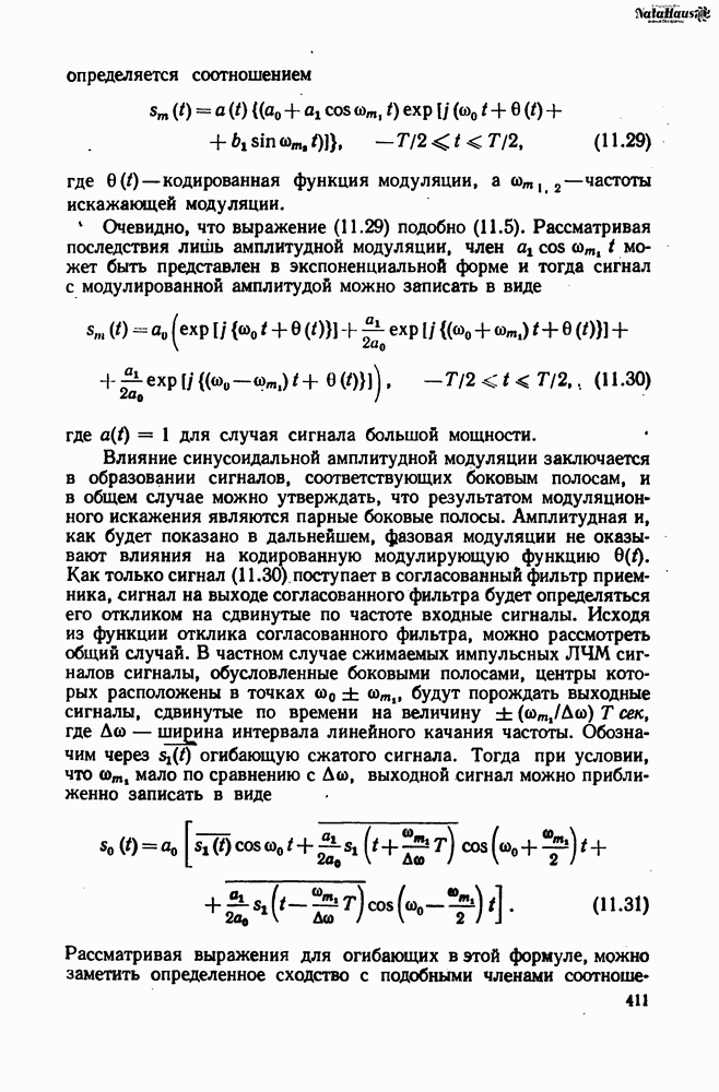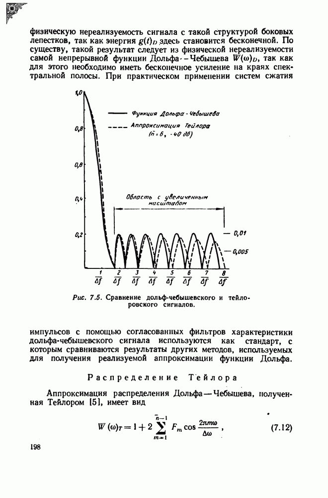 (кликните для просмотра скана) использование приема рассогласования частоты опорного сигнала с целью достижения большего разделения интересующего нас первого порядка дифракции от других компонент светового потока, если интерференция между ними превышает допустимую. Это приводит к улучшению динамического диапазона сигналов на выходе устройства обработки практически в пределах от 40 до 60 дб. В частном случае использования ЛЧМ сигнала можно применять ультразвуковой модулятор света в качестве фильтра сжатия при значительно более простой схеме его построения, при которой отпадает необходимость использовать опорную решетчатую функцию.