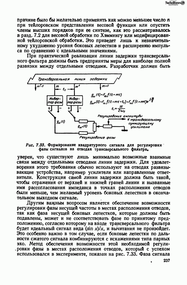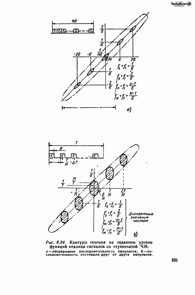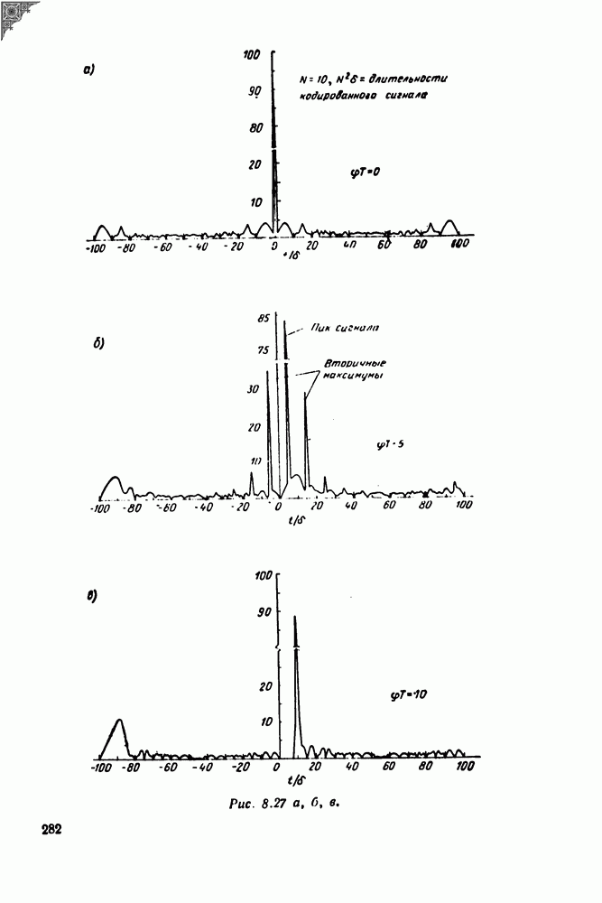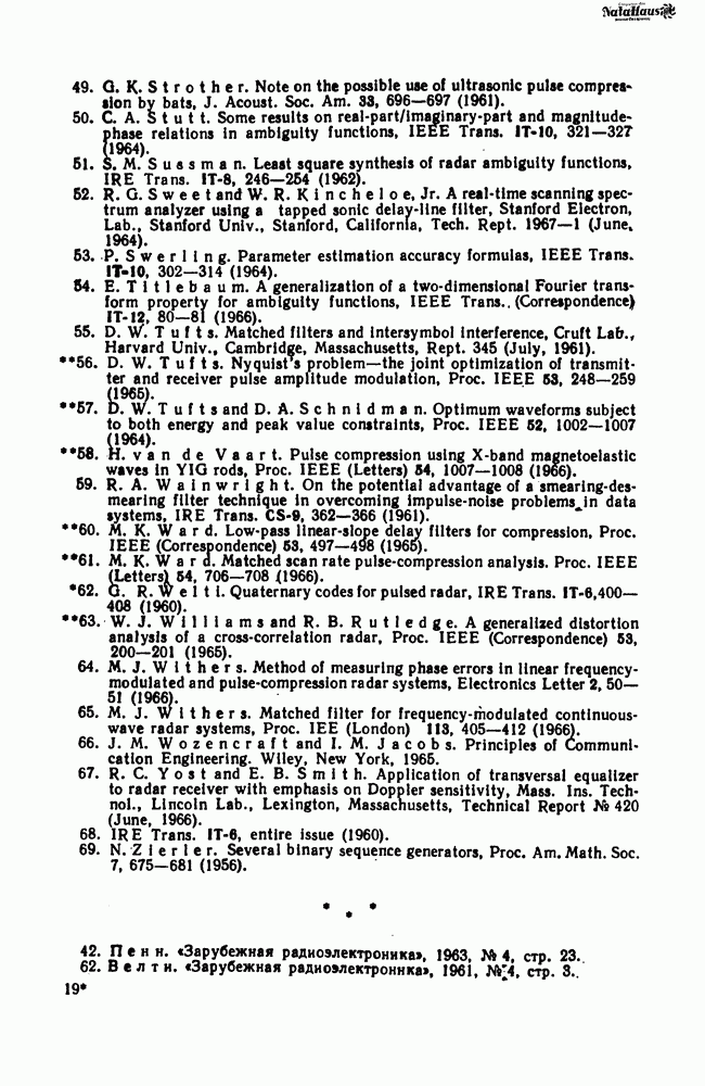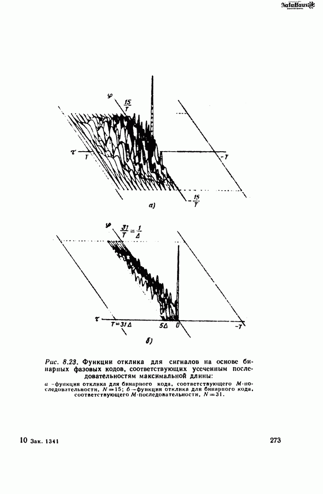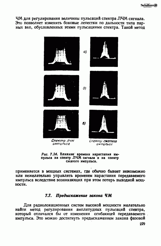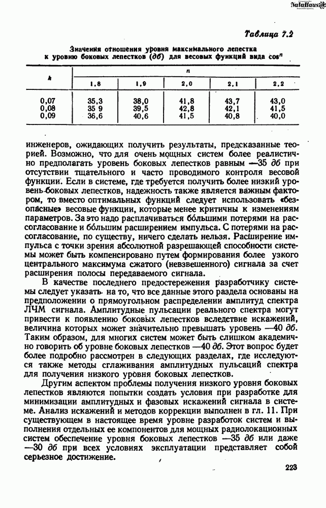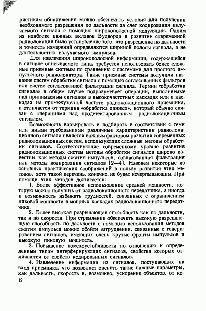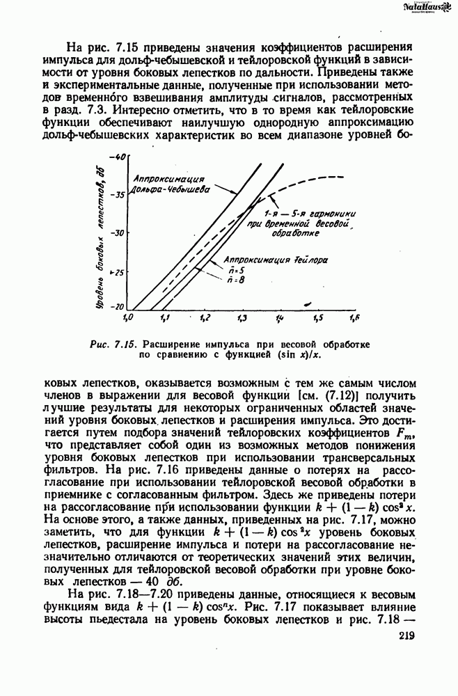 (кликните для просмотра скана) использование приема рассогласования частоты опорного сигнала с целью достижения большего разделения интересующего нас первого порядка дифракции от других компонент светового потока, если интерференция между ними превышает допустимую. Это приводит к улучшению динамического диапазона сигналов на выходе устройства обработки практически в пределах от 40 до 60 дб. В частном случае использования ЛЧМ сигнала можно применять ультразвуковой модулятор света в качестве фильтра сжатия при значительно более простой схеме его построения, при которой отпадает необходимость использовать опорную решетчатую функцию.