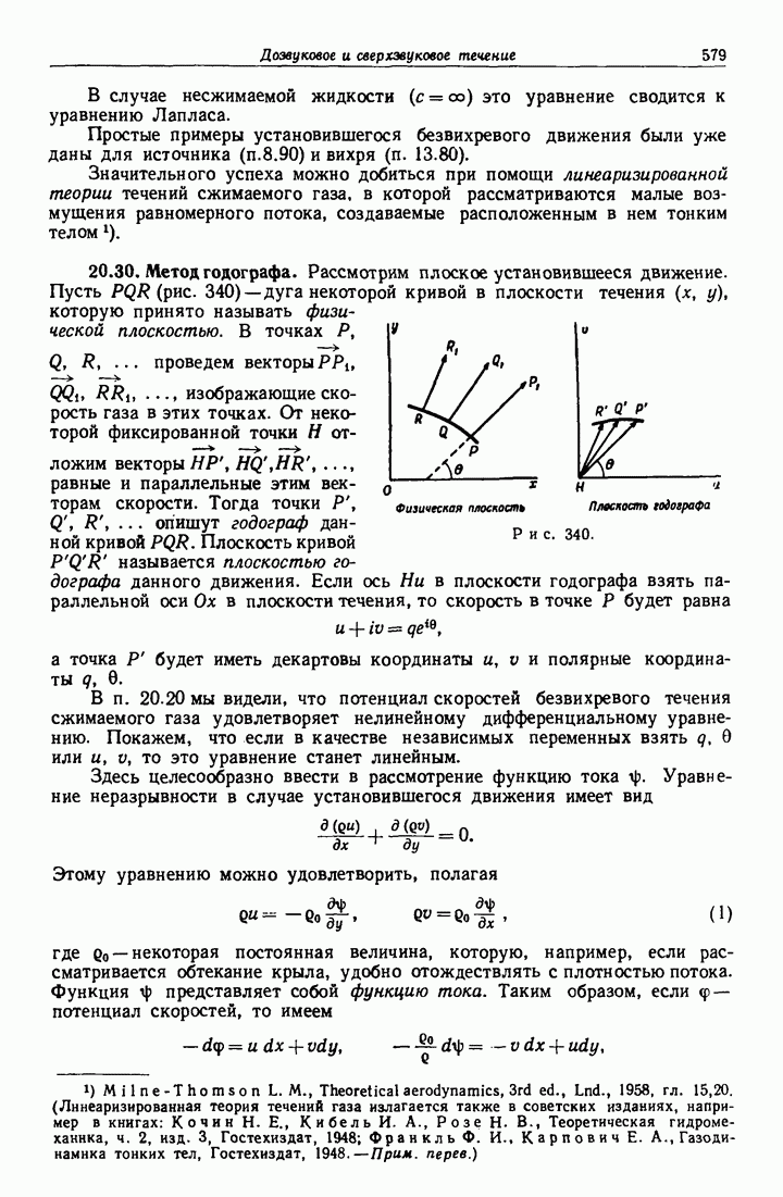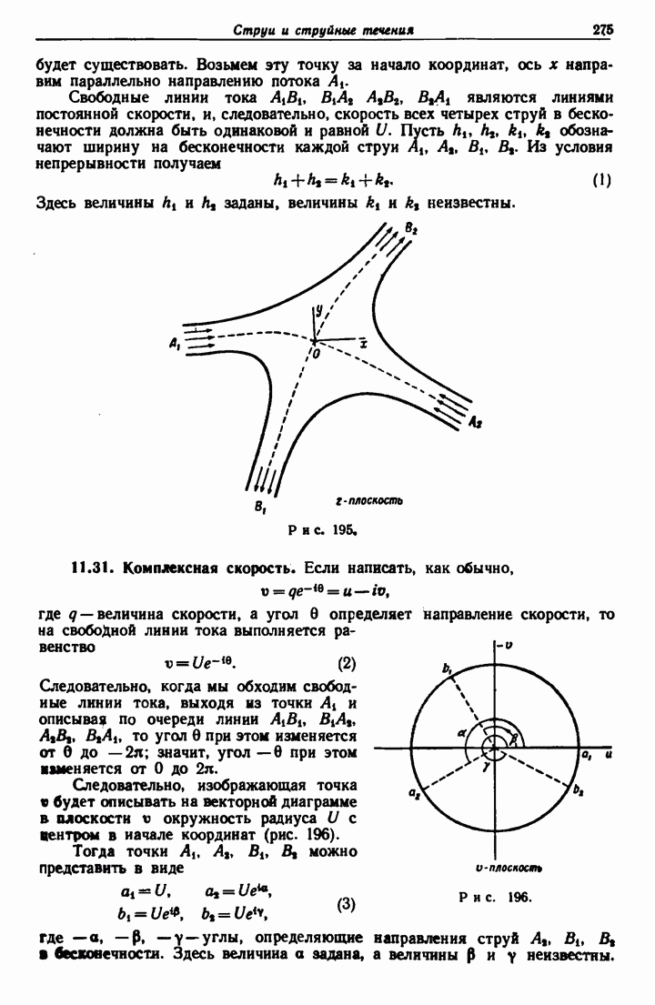 называется плоскостью годографа данного движения. Если ось Ни в плоскости годографа взять параллельной оси Ох в плоскости течения, то скорость в точке