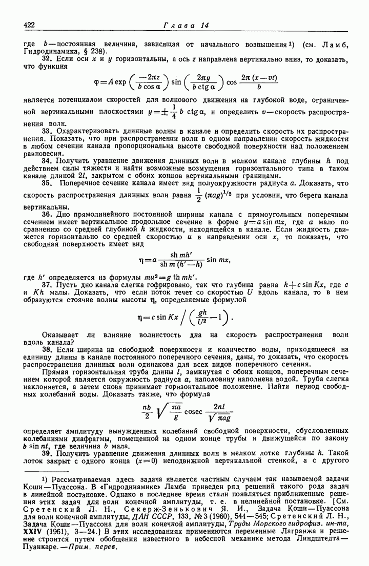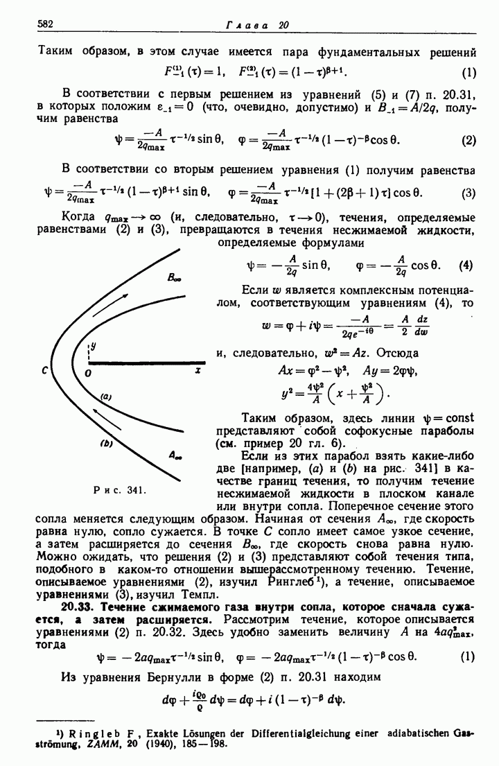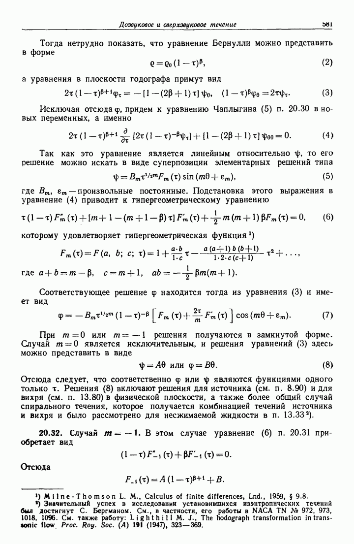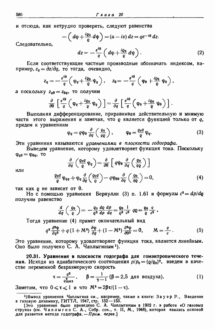 Это уравнение, которому удовлетворяет функция тока, является линейным. Оно было получено С. А. Чаплыгиным.