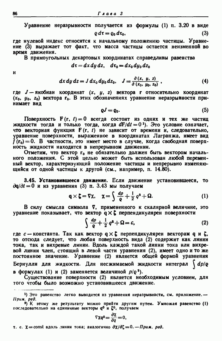 Уравнение неразрывности в случае установившегося движения имеет вид