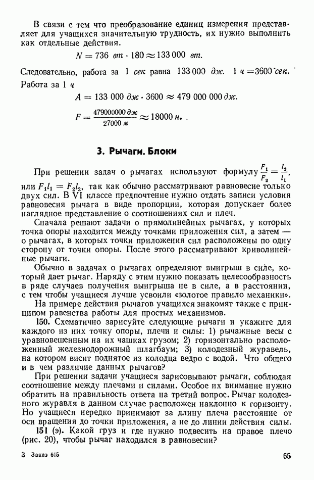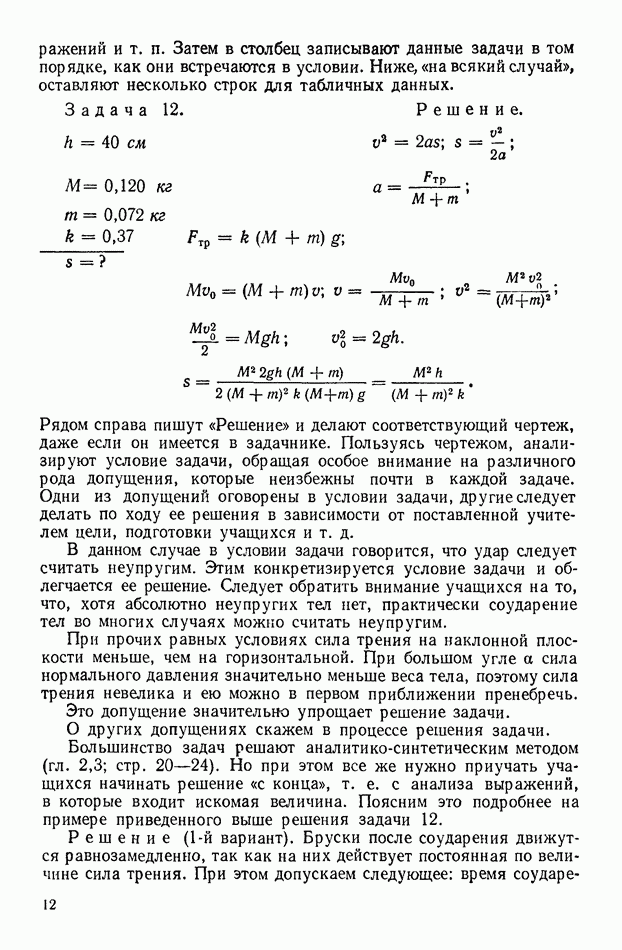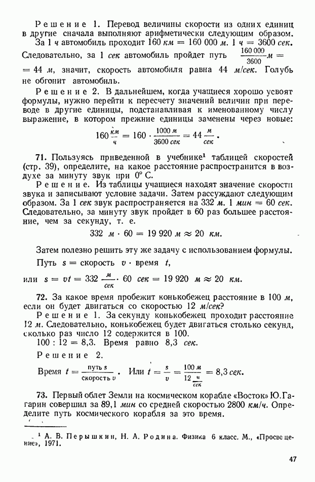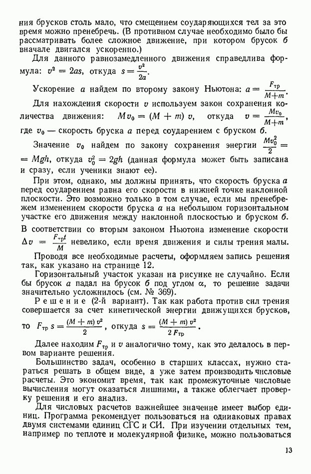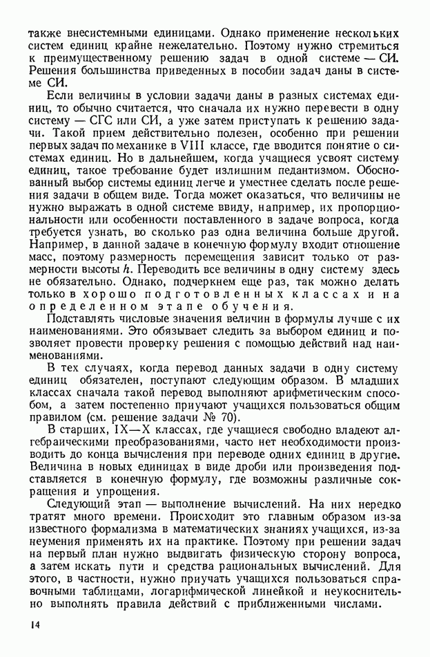 В первых задачах данные следует давать в одной системе единиц СИ, чтобы сосредоточить внимание на главном — физическом смысле задачи. Далее задачи можно несколько усложнить, чтобы учащимся пришлось самим выбирать единицы измерения.