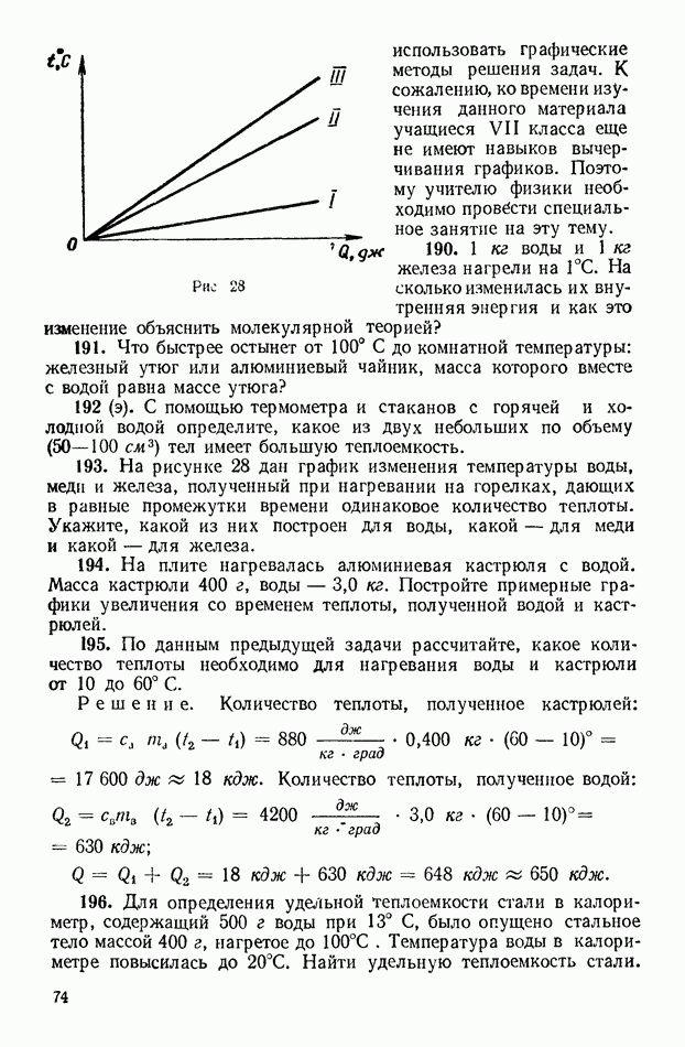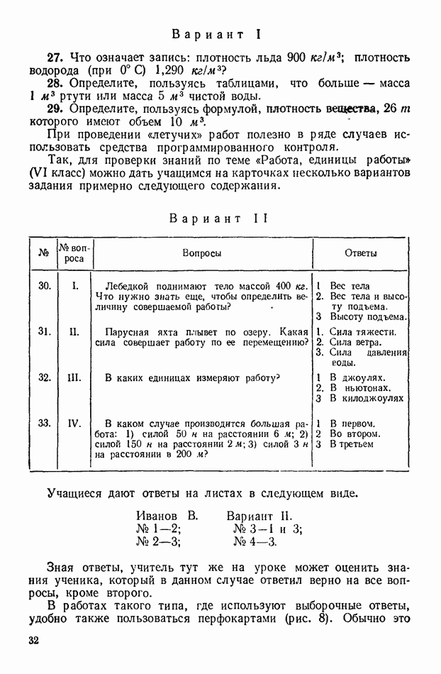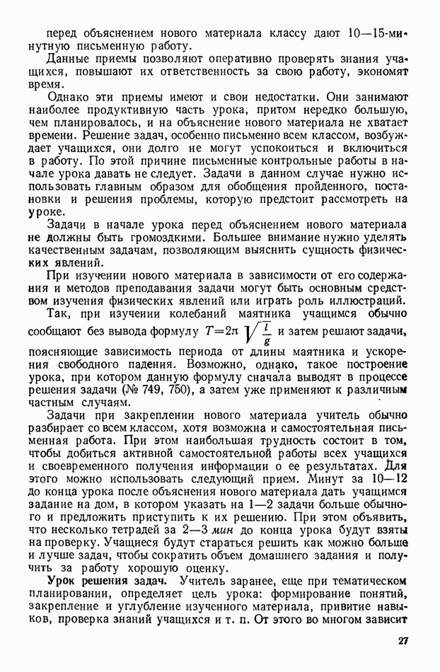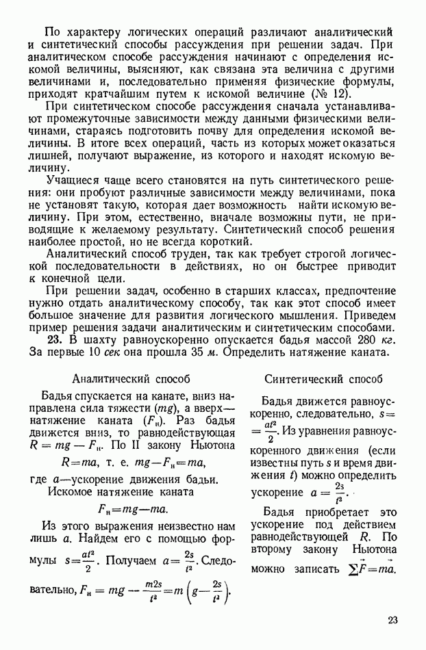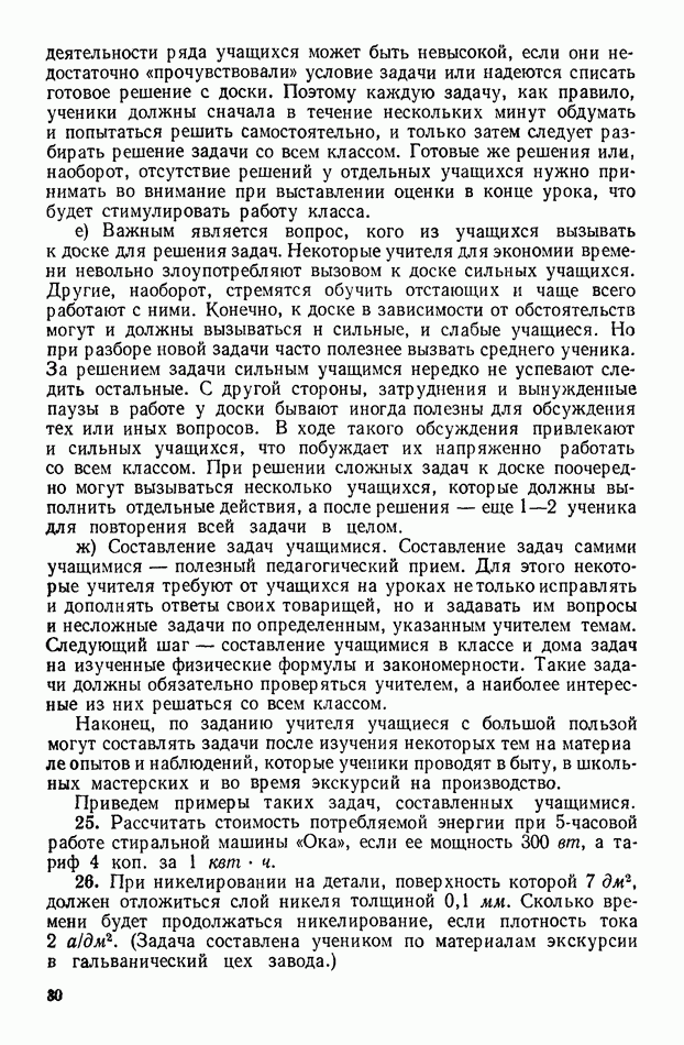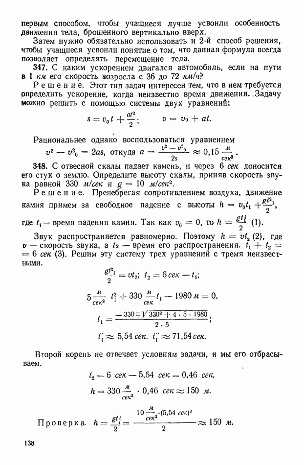 В первых задачах данные следует давать в одной системе единиц СИ, чтобы сосредоточить внимание на главном — физическом смысле задачи. Далее задачи можно несколько усложнить, чтобы учащимся пришлось самим выбирать единицы измерения.