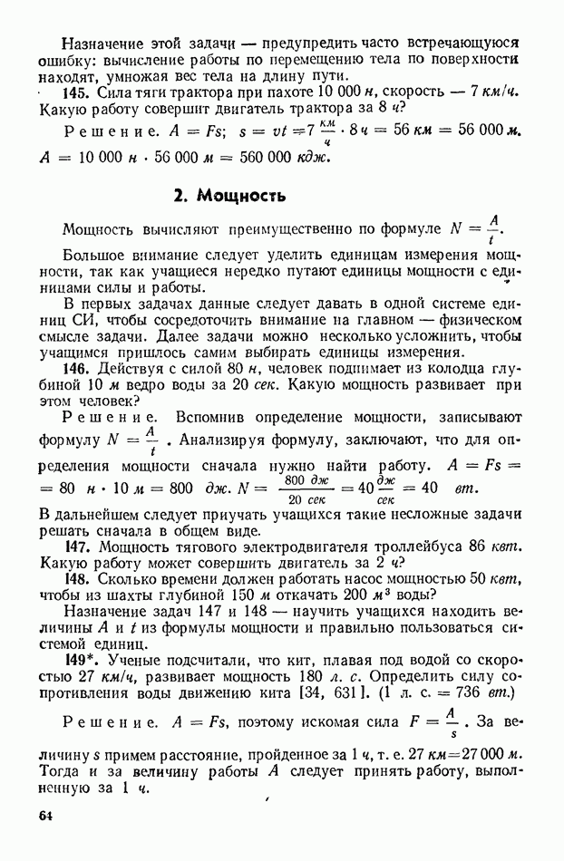 Большое внимание следует уделить единицам измерения мощности, так как учащиеся нередко путают единицы мощности с единицами силы и работы.