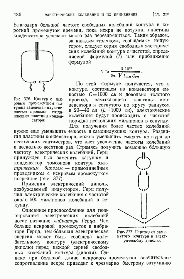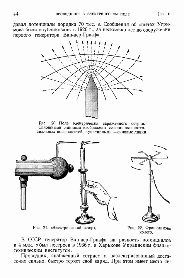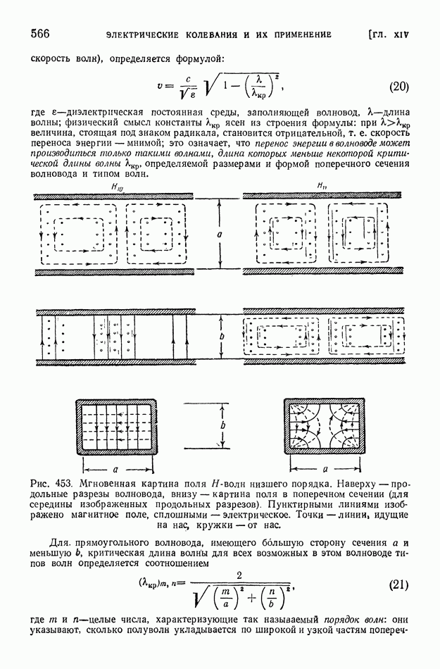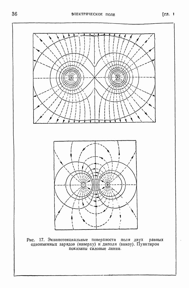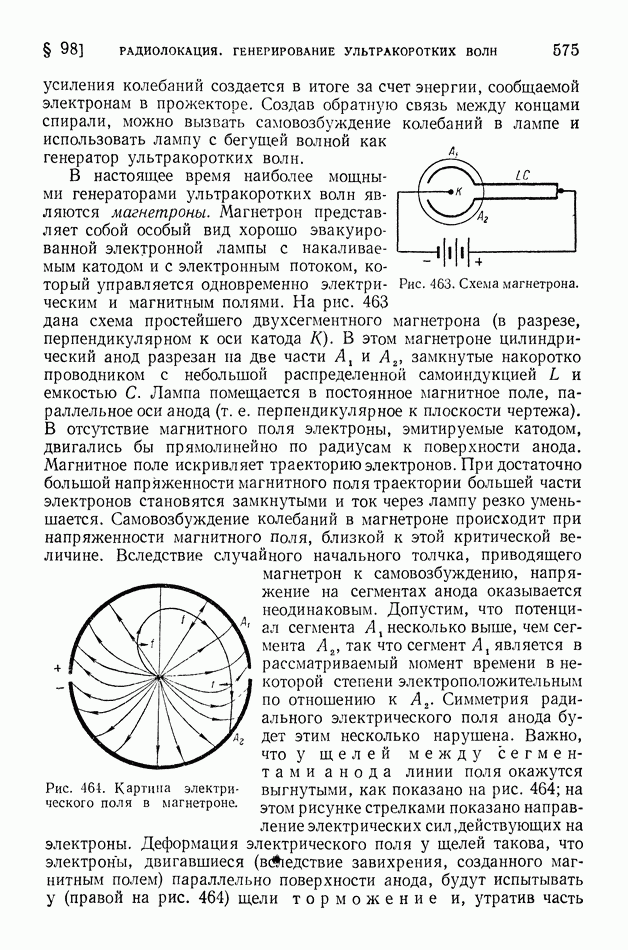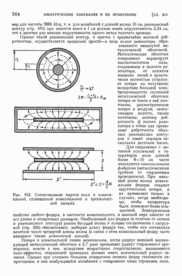 Рис. 397. Электрическое поле (в вертикальном разрезе) излучения вертикальной антенны,