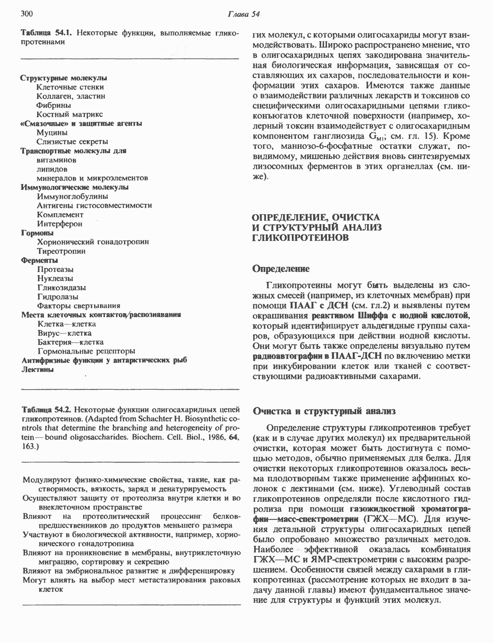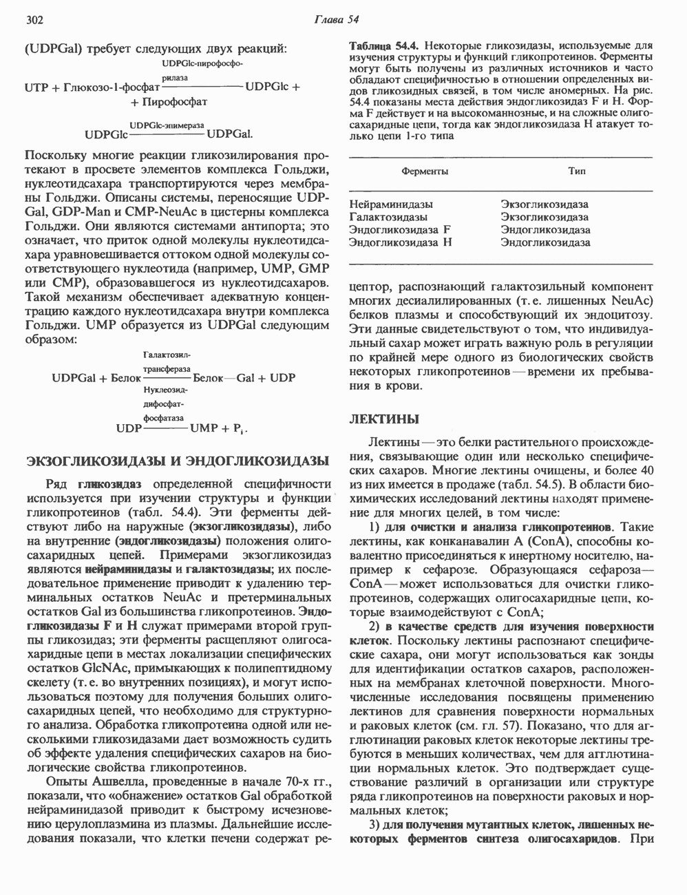 Лектины — это белки растительного происхождения, связывающие один или несколько специфических сахаров. Многие лектины очищены, и более 40 из них имеется в продаже (табл. 54.5). В области биохимических исследований лектины находят применение для многих целей, в том числе: