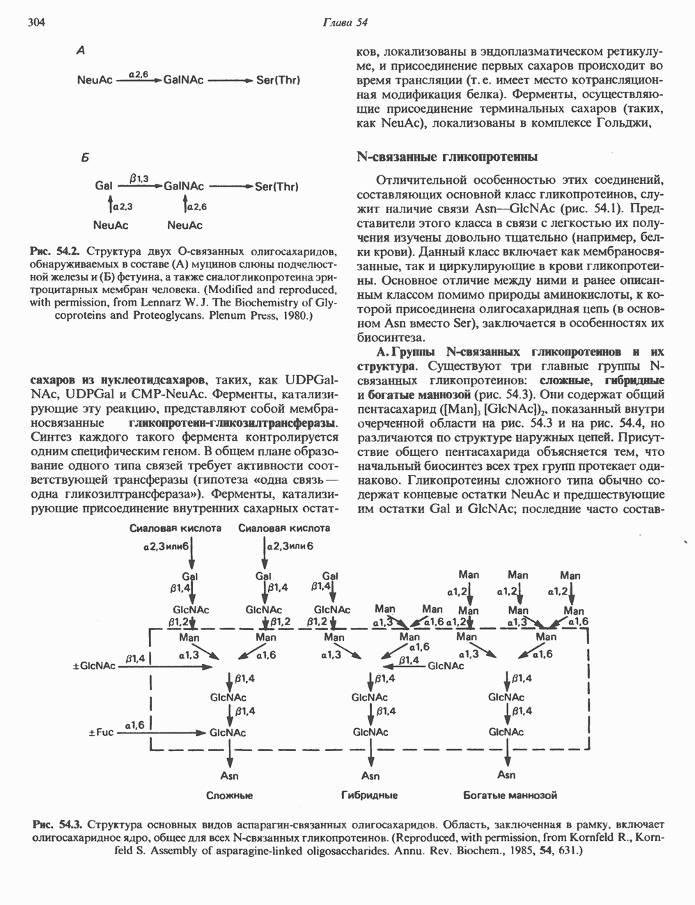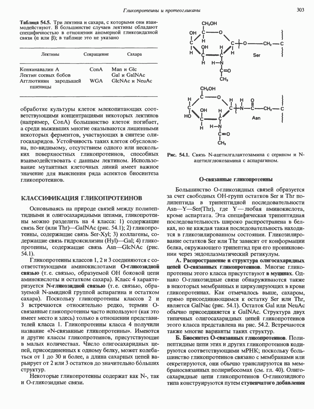 Таблица 54.5. Три лектина и сахара, с которыми они взаимодействуют. В большинстве случаев лектины обладают специфичностью в отношении аномерной гликозидазной связи (а или