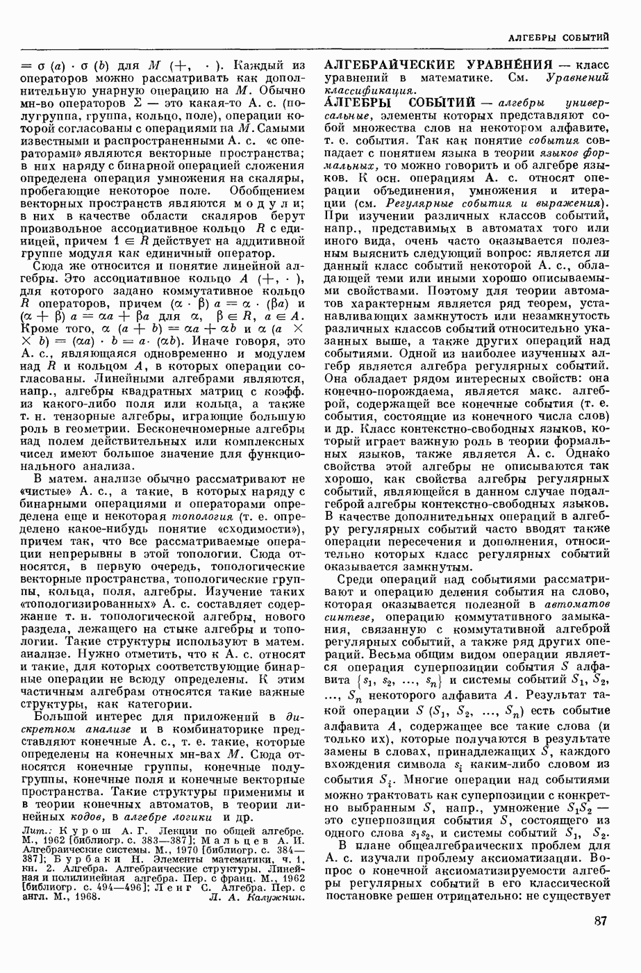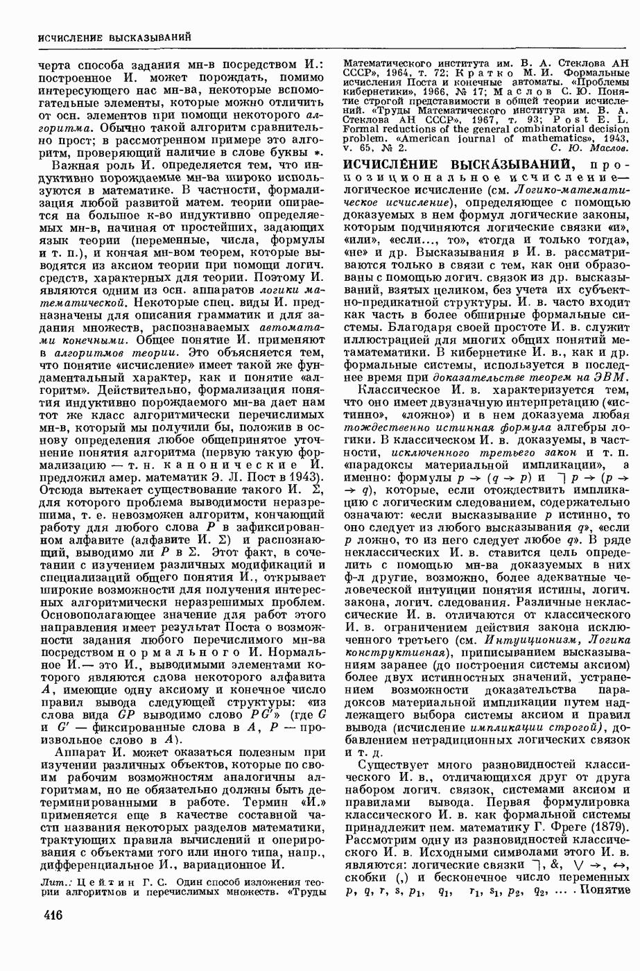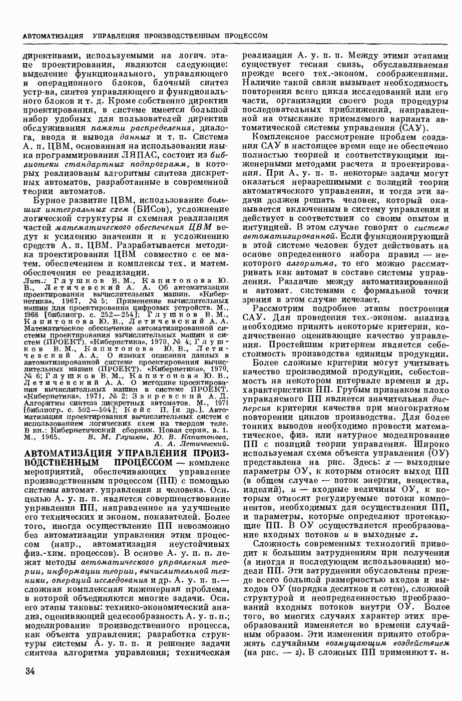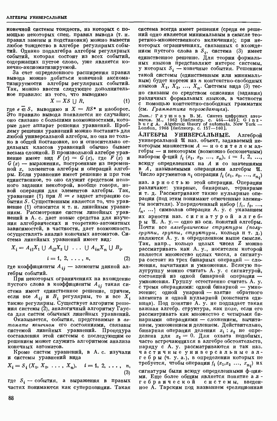 Лит. Глушков В. М. Теория автоматов и формальные преобразования микропрограмм. «Кибернетика», 1965, № 5. А, А. Летичевспий.