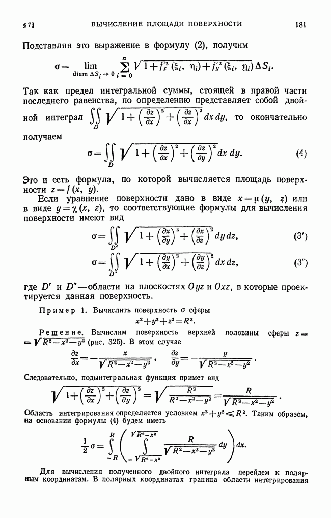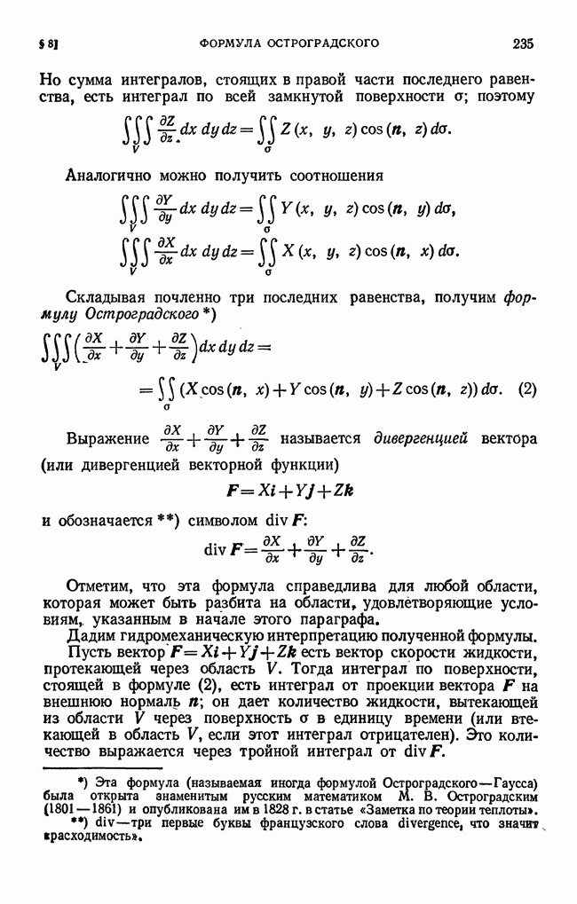 разобьет область D на три или большее число областей, то получим соотношение, аналогичное соотношению (1), в правой части которого будет стоять соответствующее число слагаемых.
