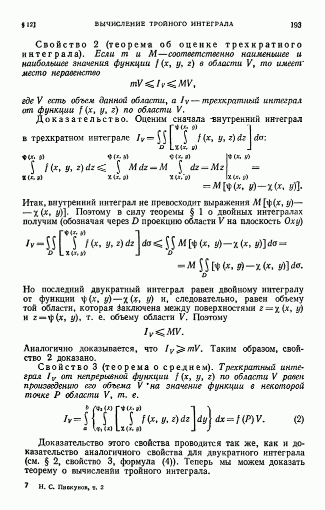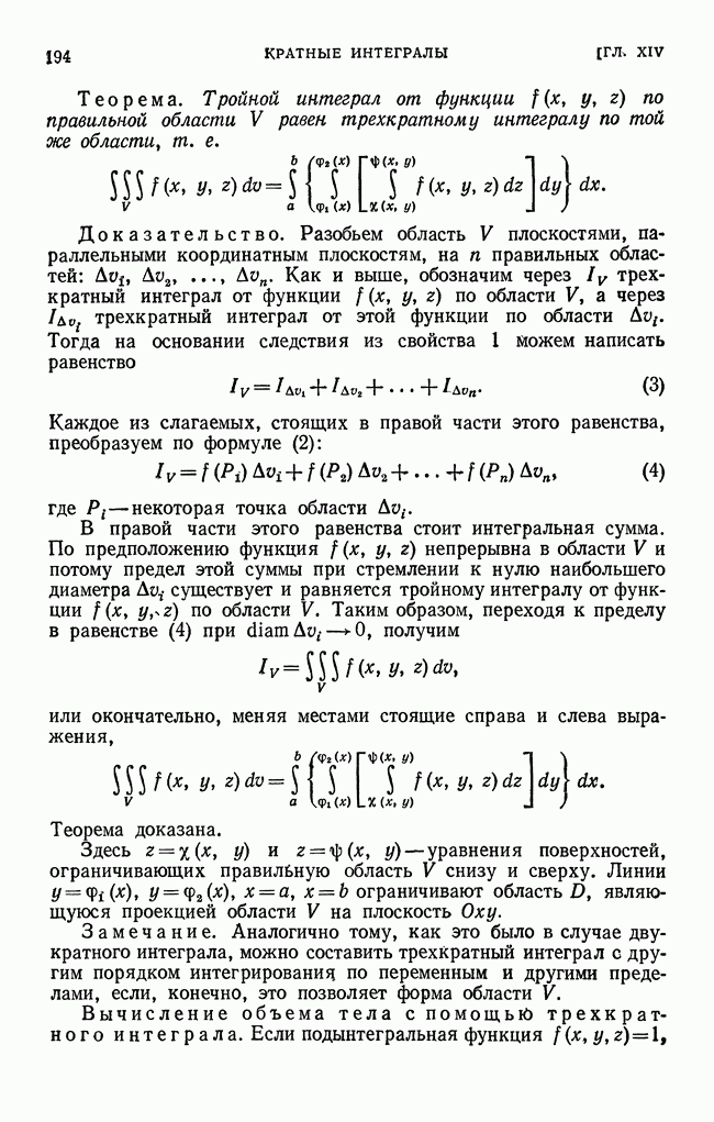 Аналогичная запись для двукратного интеграла имела бы место и в том случае, если бы функция