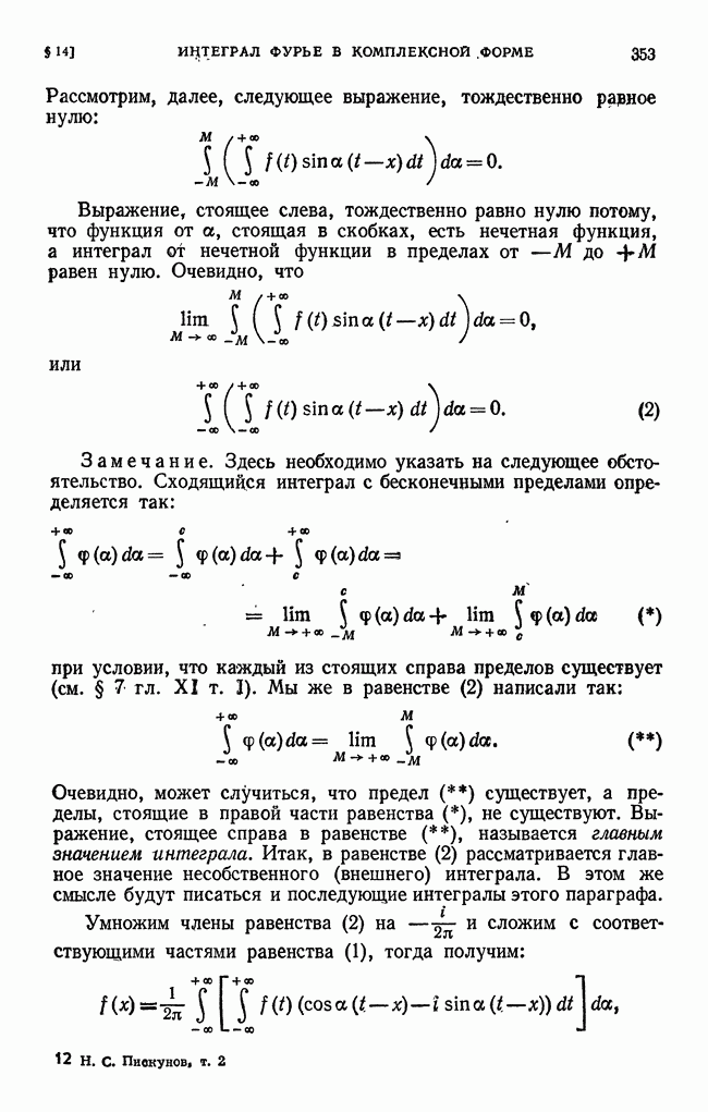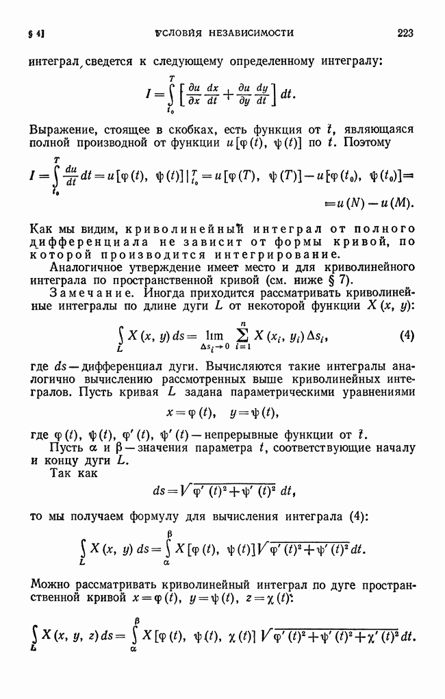 Первое из этих равенств написано на основании известного свойства определенного интеграла, а второе — в силу того, что на участке