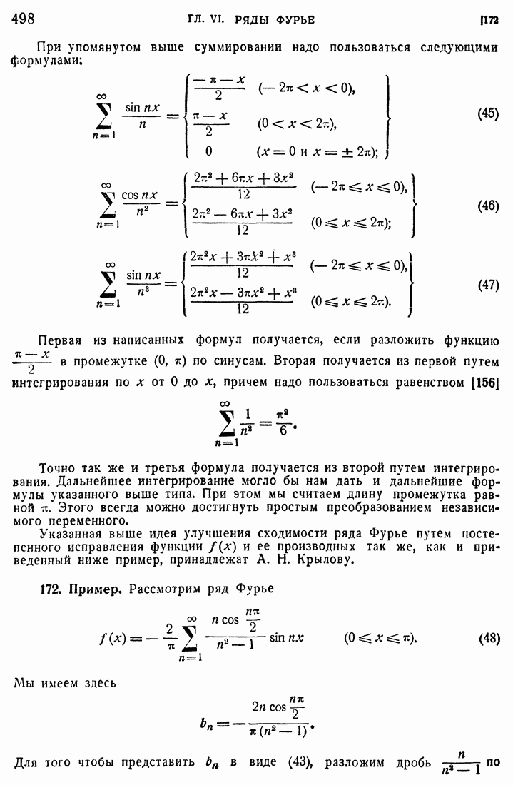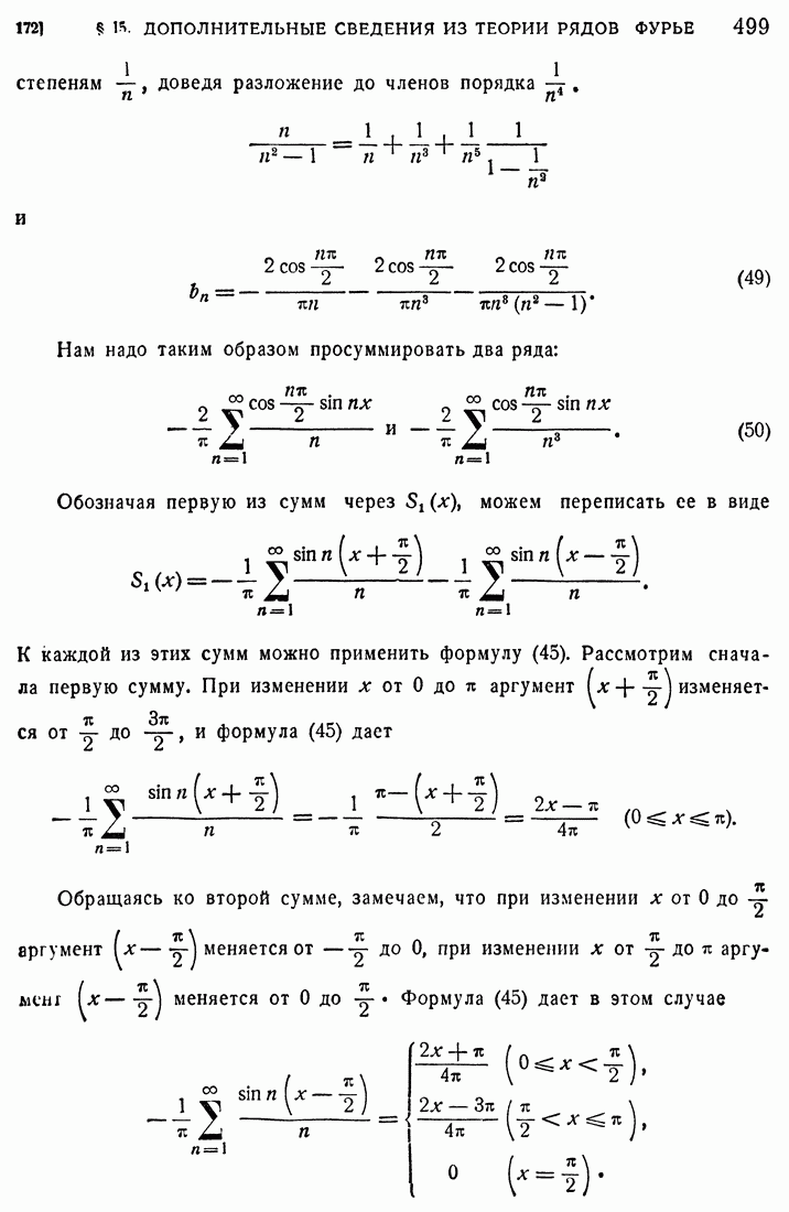 Вторую из сумм (50) мы могли бы вычислить, пользуясь формулой (47), но можно поступать и иначе. Обозначим эту сумму через